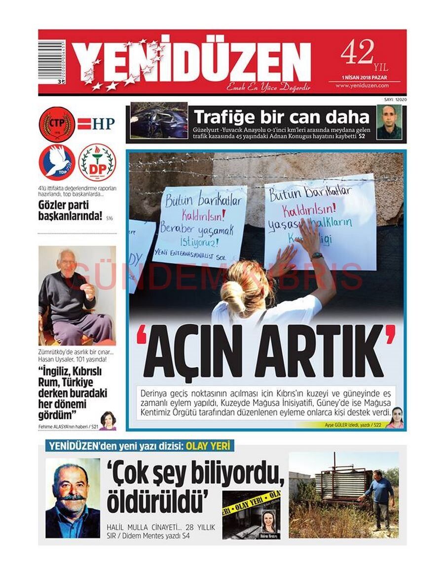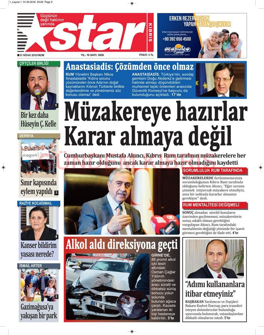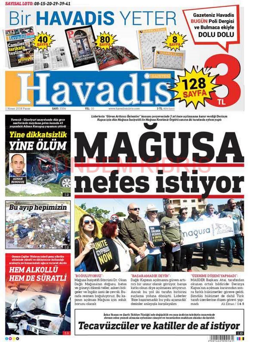 KKTC Gazete Manşetleri 1 Nisan 2018
