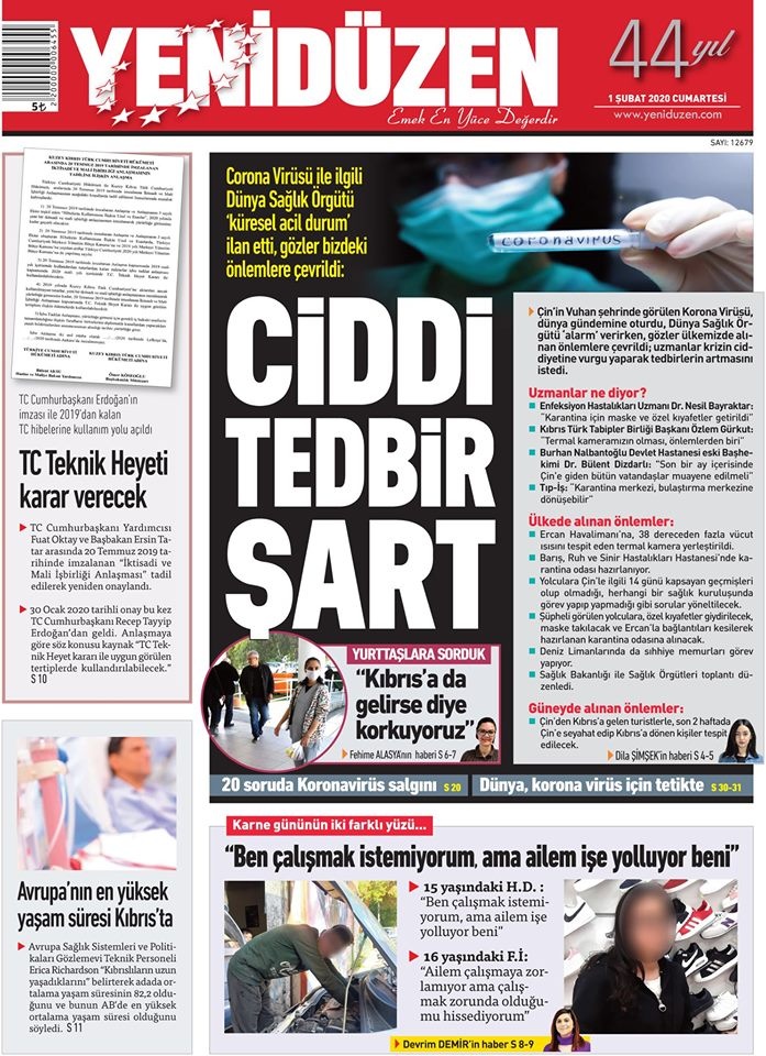 KKTC Gazete Manşetleri 1 Şubat 2020