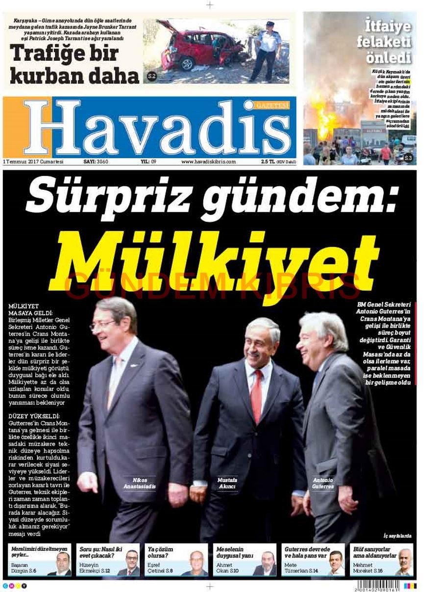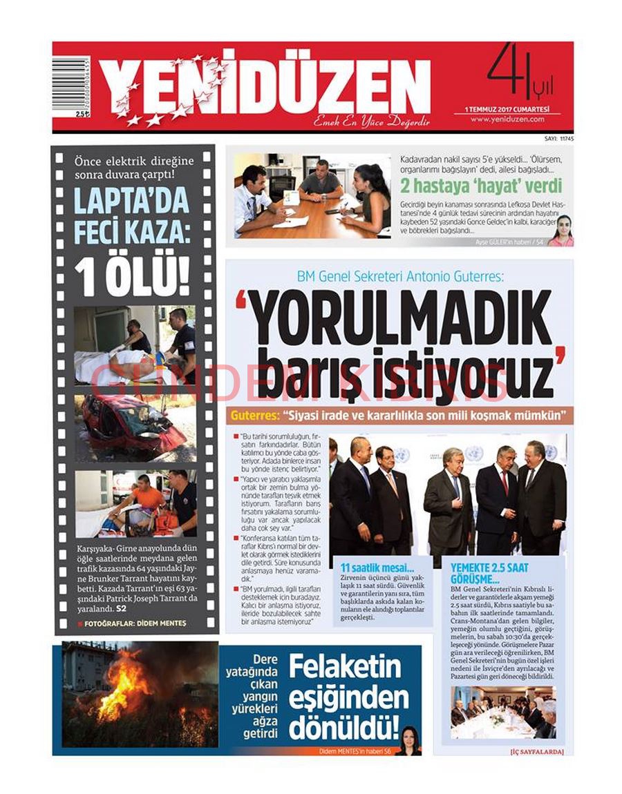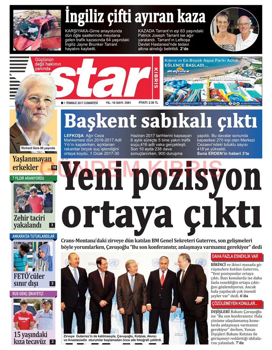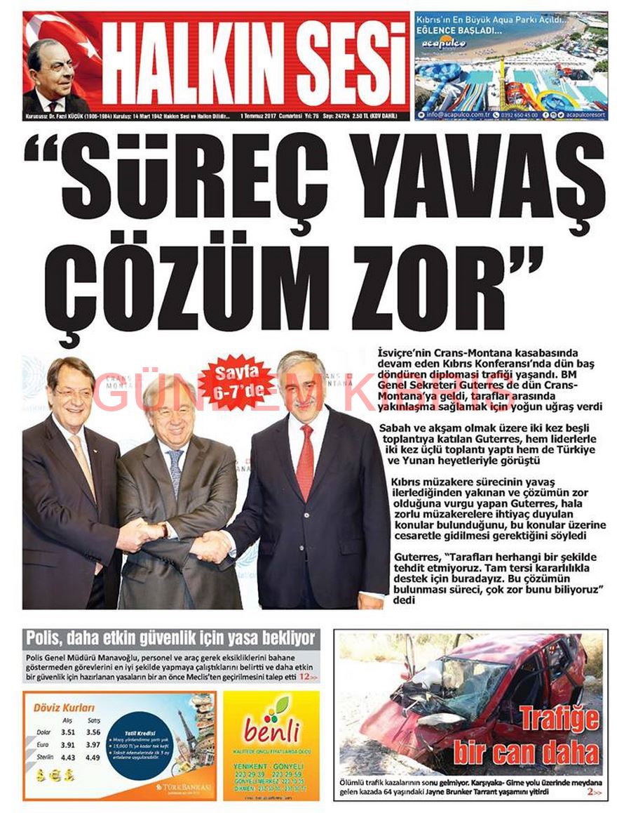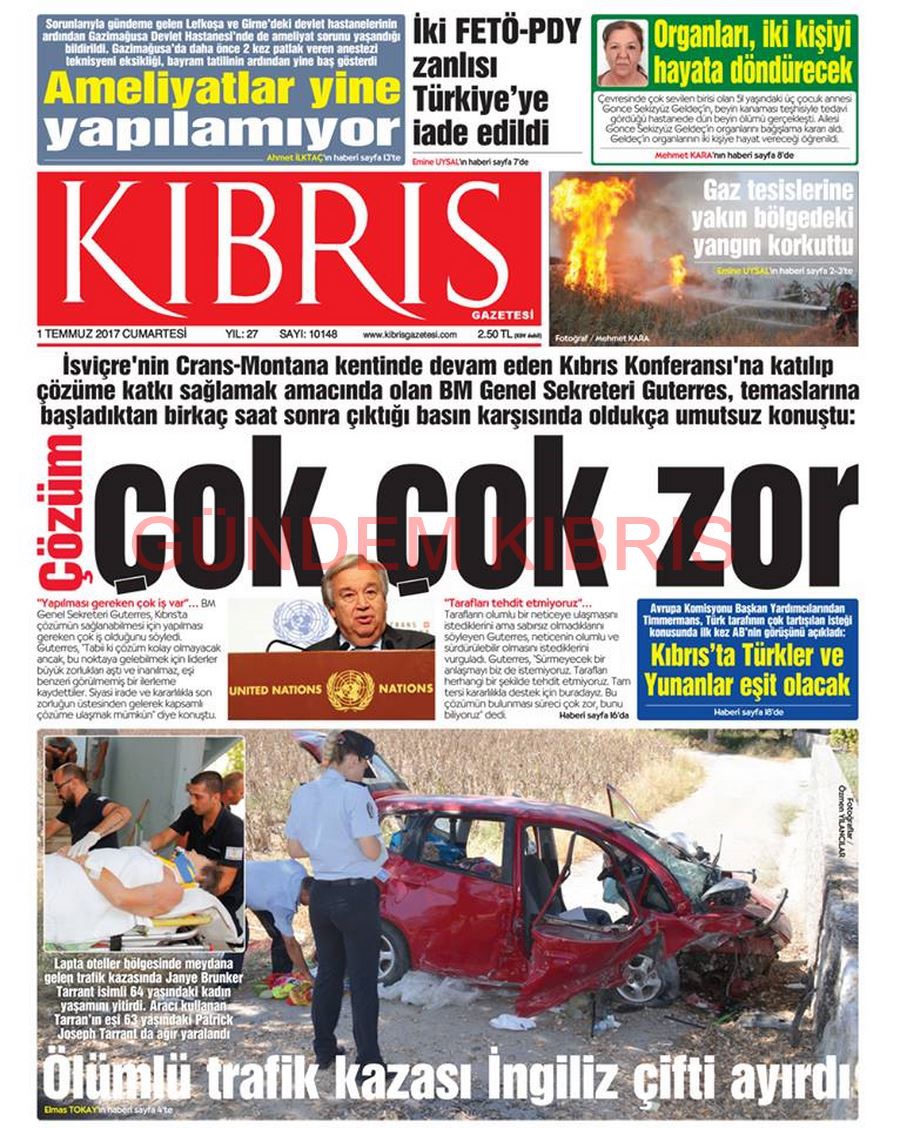 KKTC Gazete Manşetleri 1 Temmuz 2017