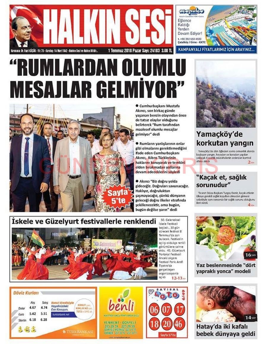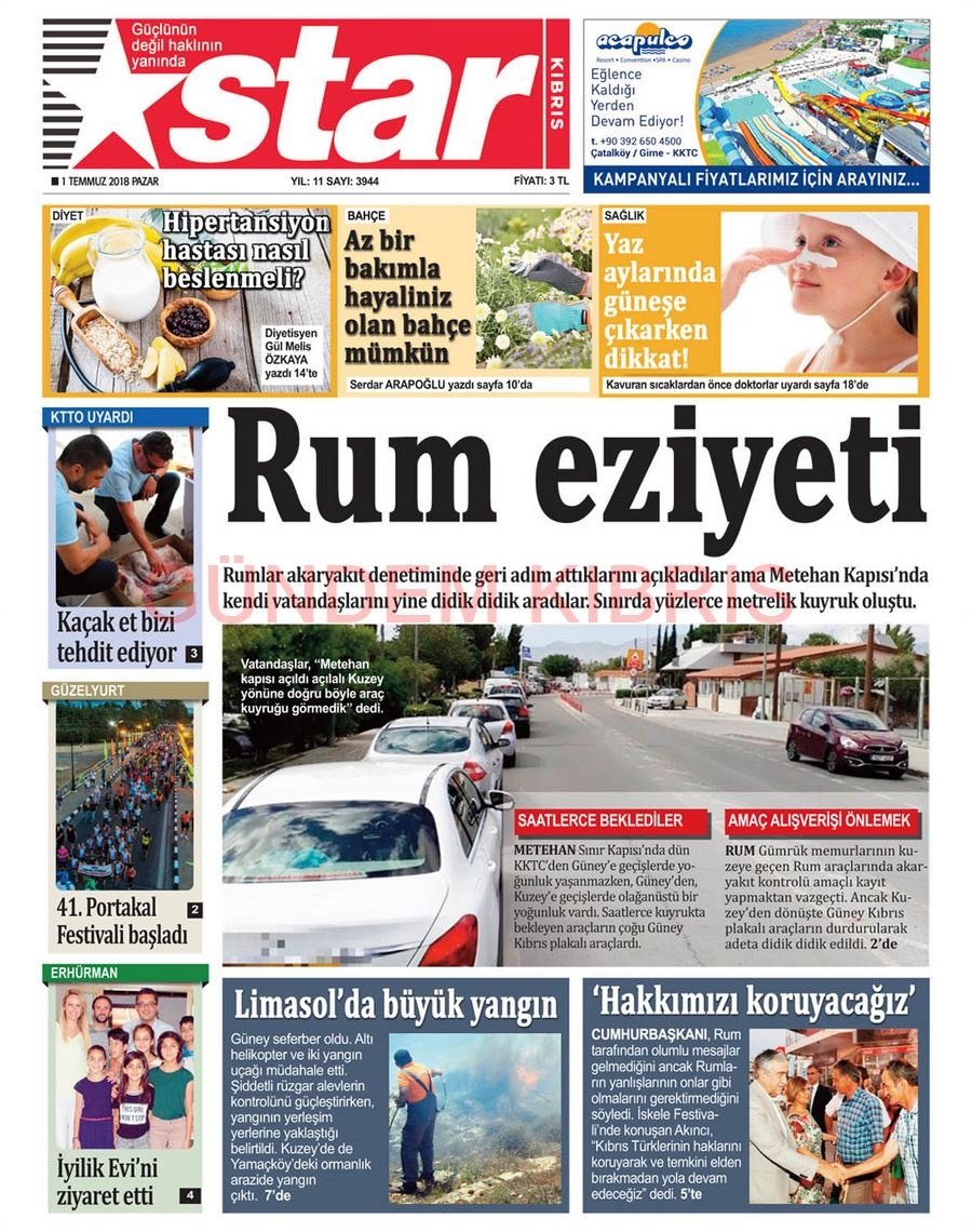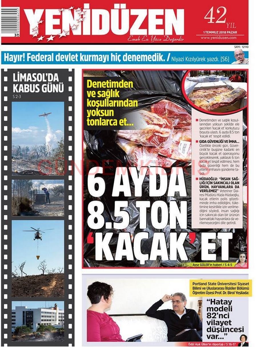 KKTC Gazete Manşetleri 1 Temmuz 2018