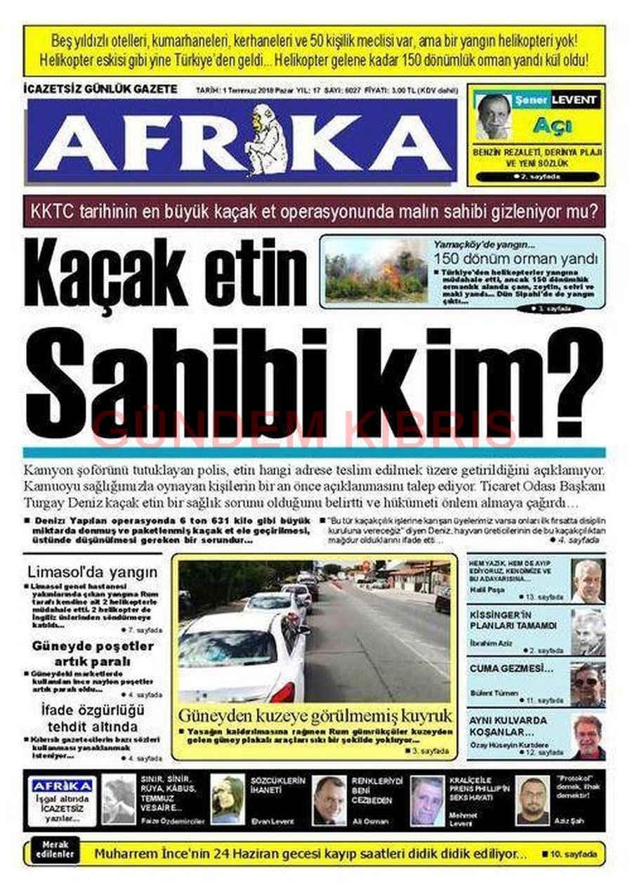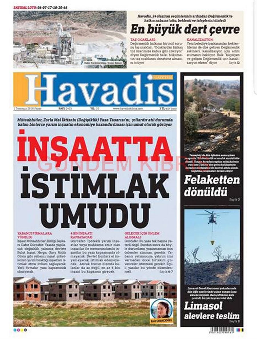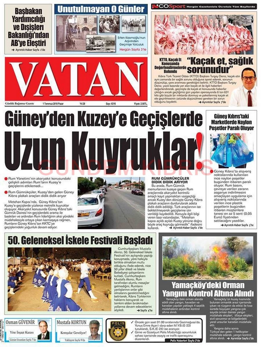 KKTC Gazete Manşetleri 1 Temmuz 2018