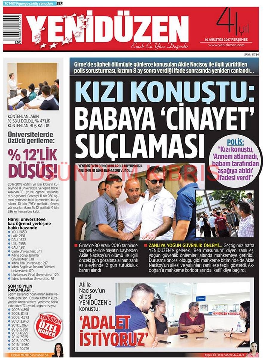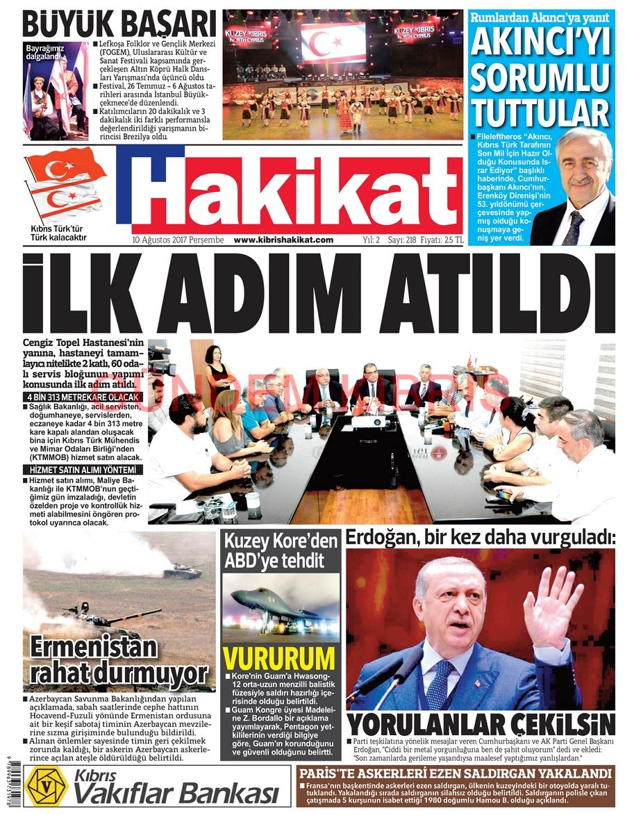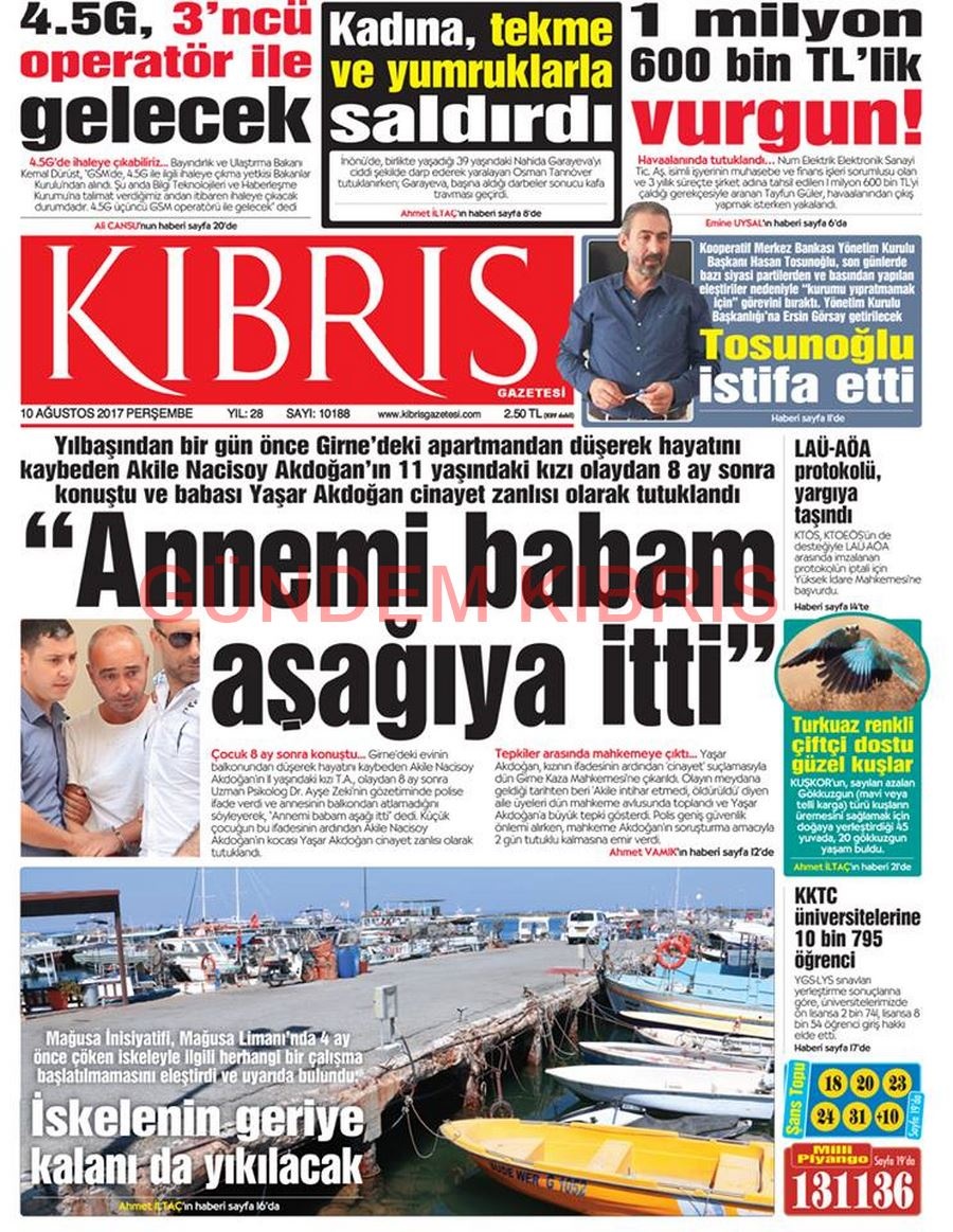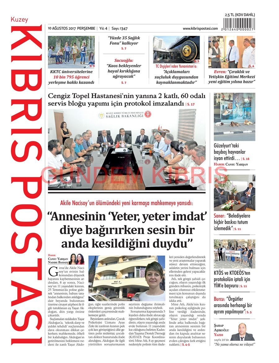 KKTC Gazete Manşetleri 10 Ağustos 2017