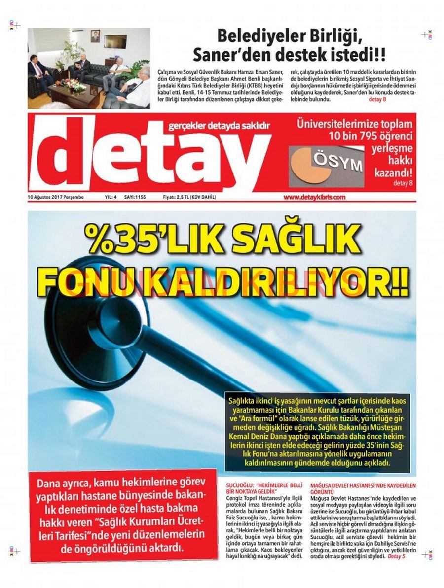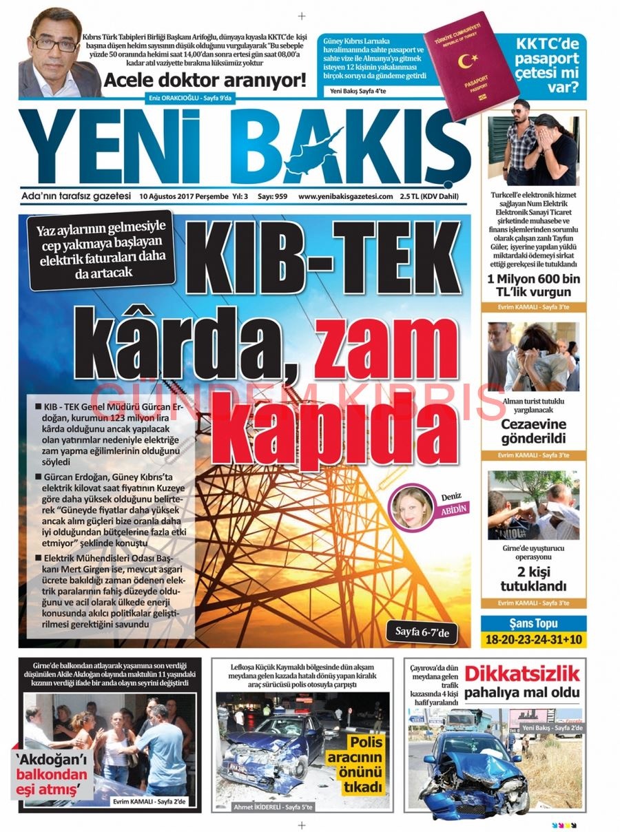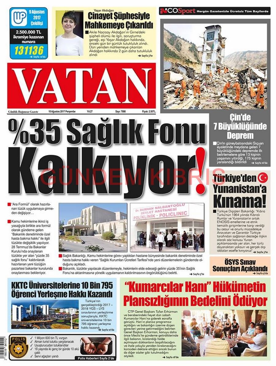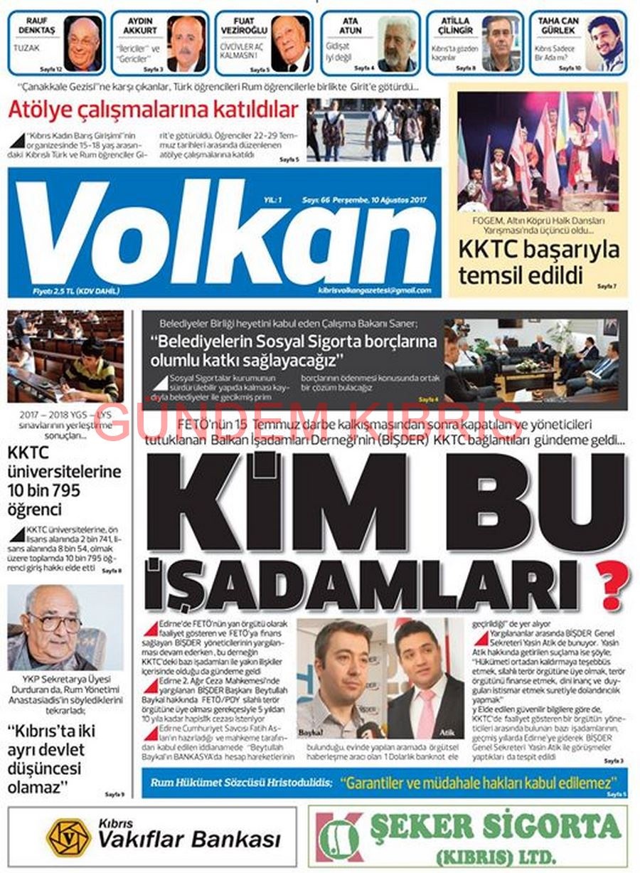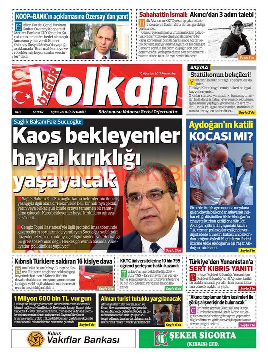 KKTC Gazete Manşetleri 10 Ağustos 2017