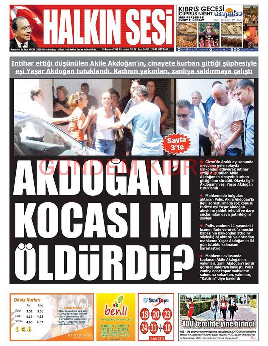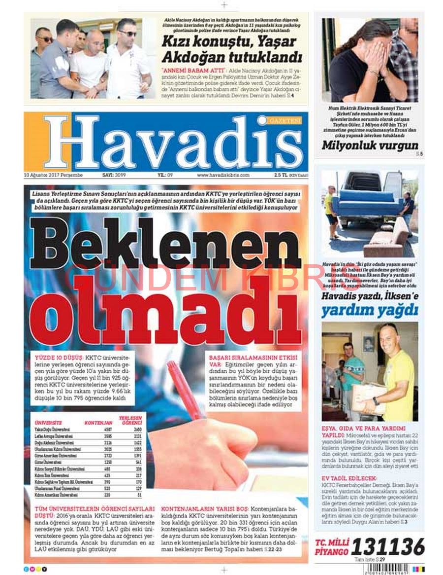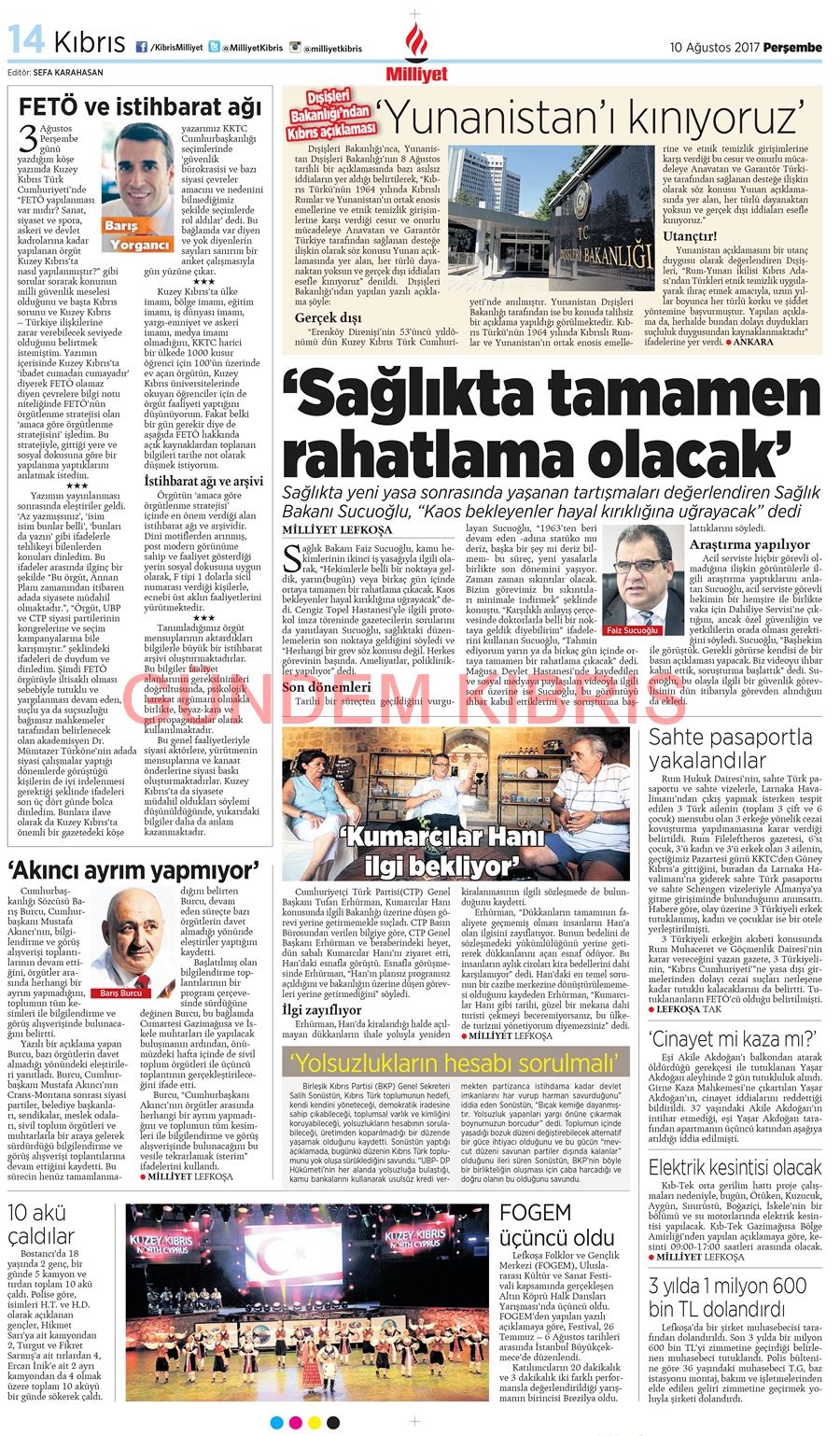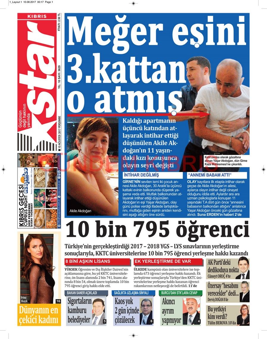 KKTC Gazete Manşetleri 10 Ağustos 2017