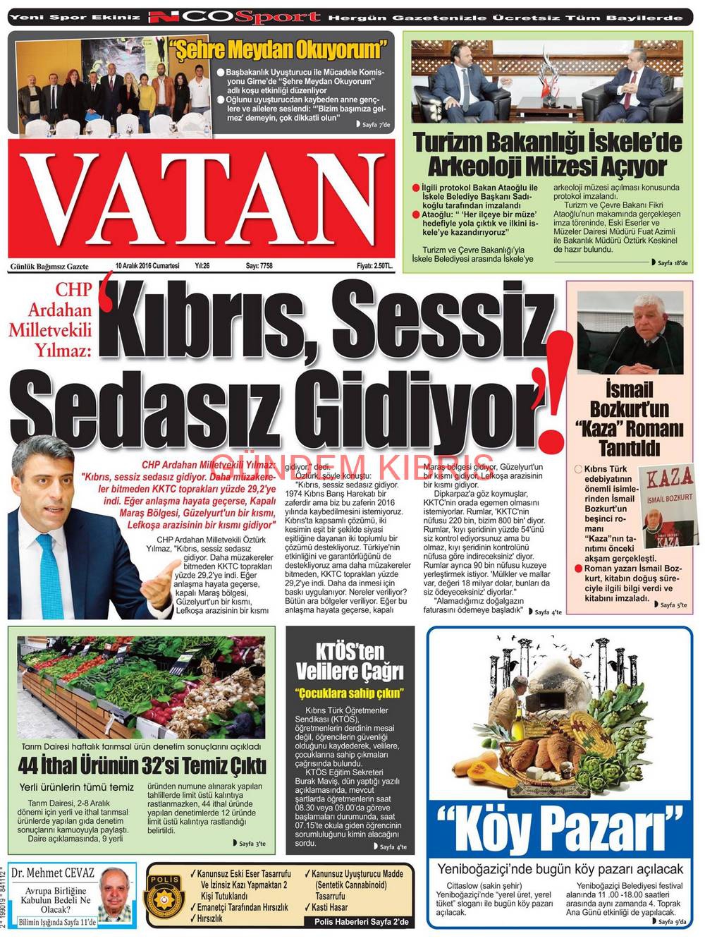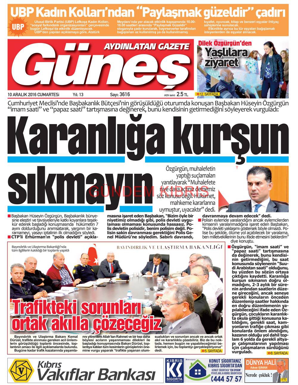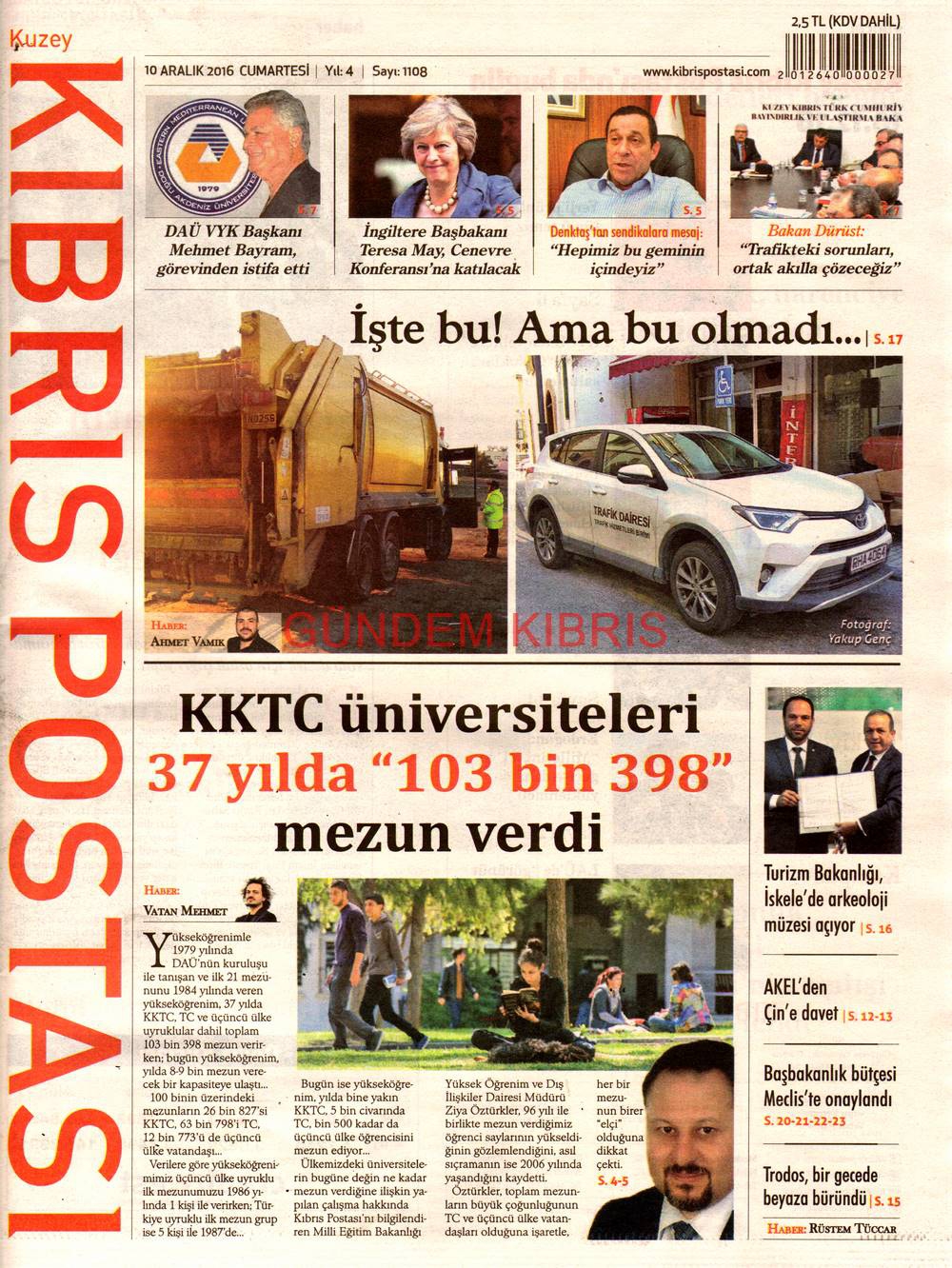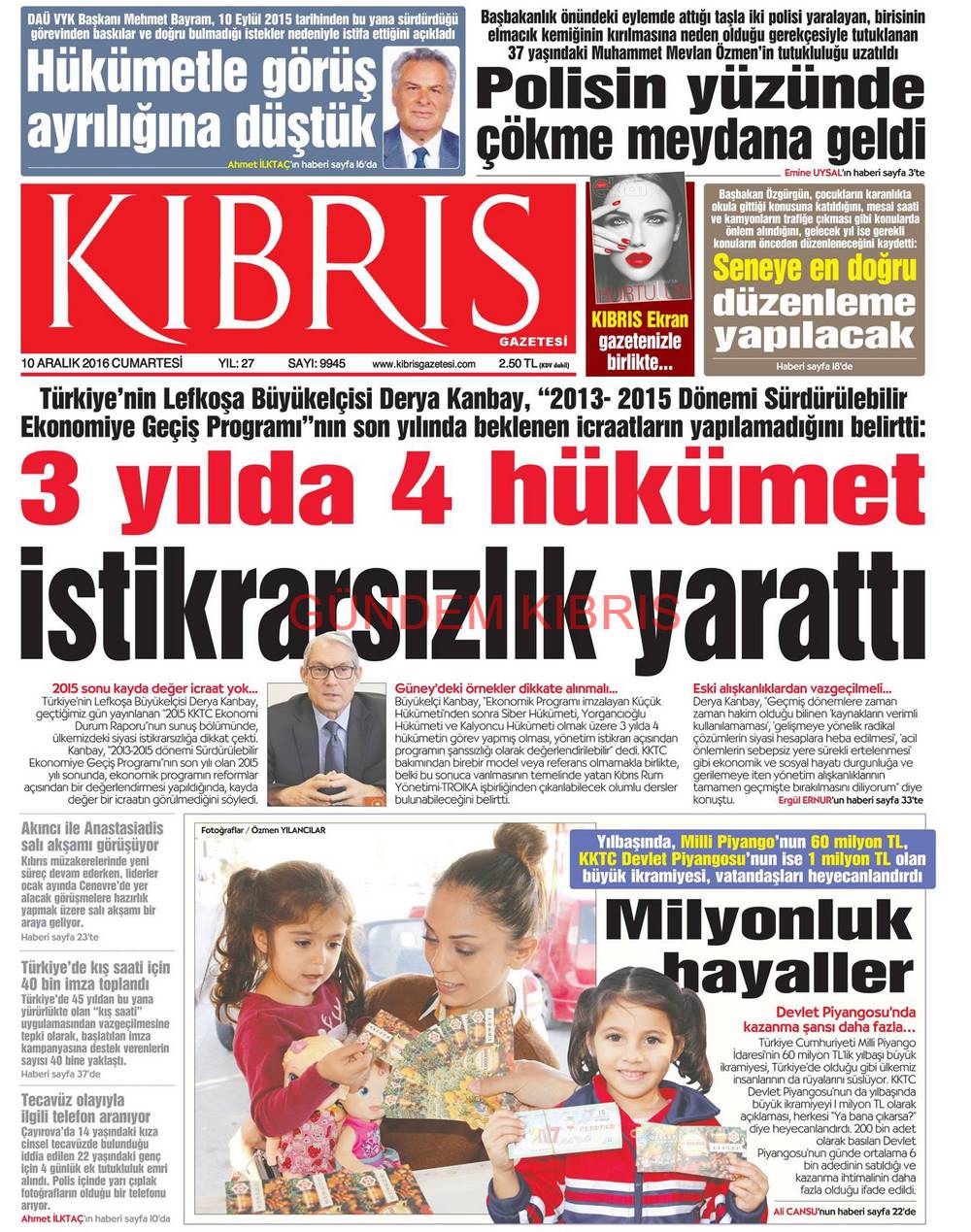 KKTC Gazete Manşetleri 10 Aralık 2016