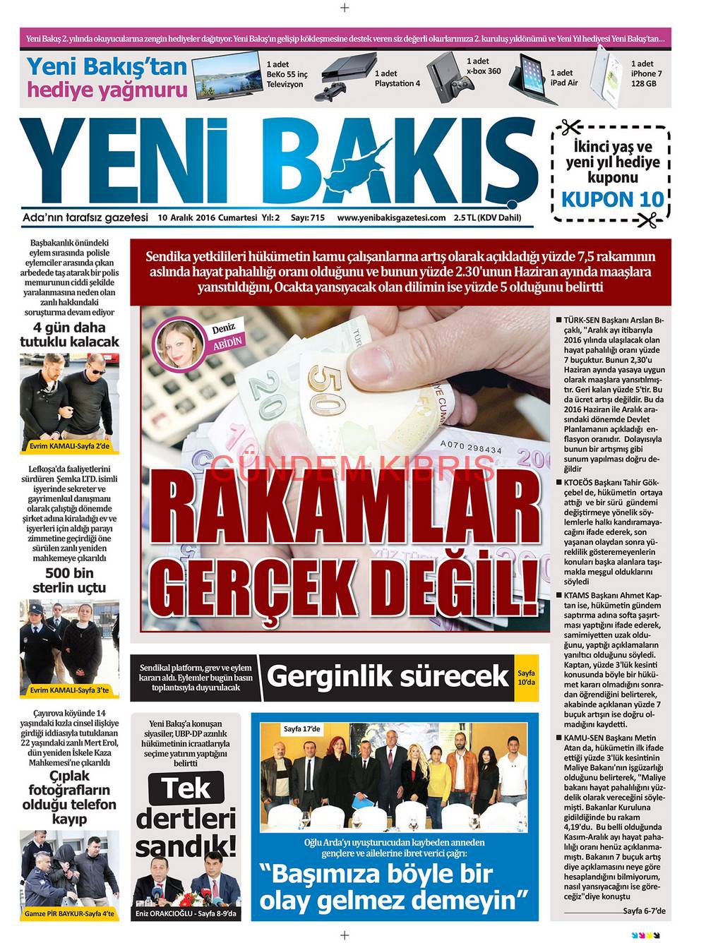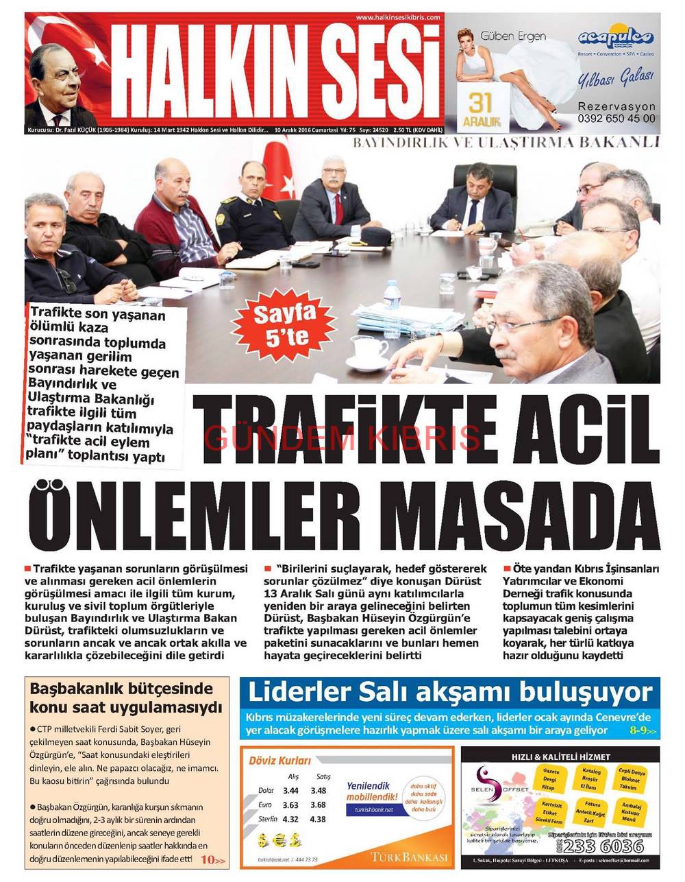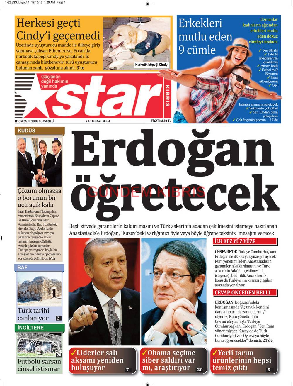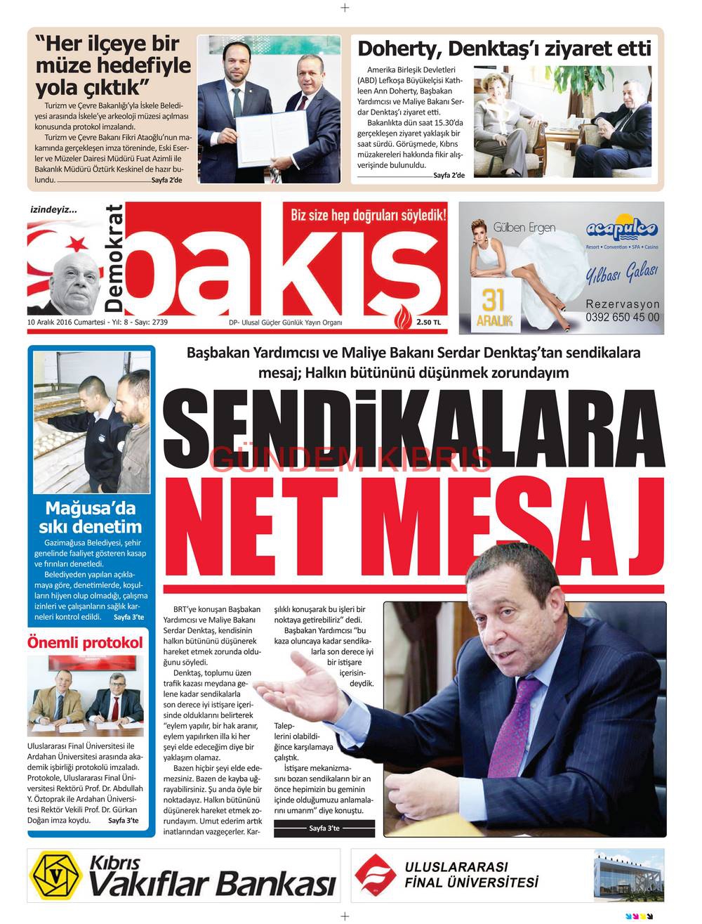 KKTC Gazete Manşetleri 10 Aralık 2016