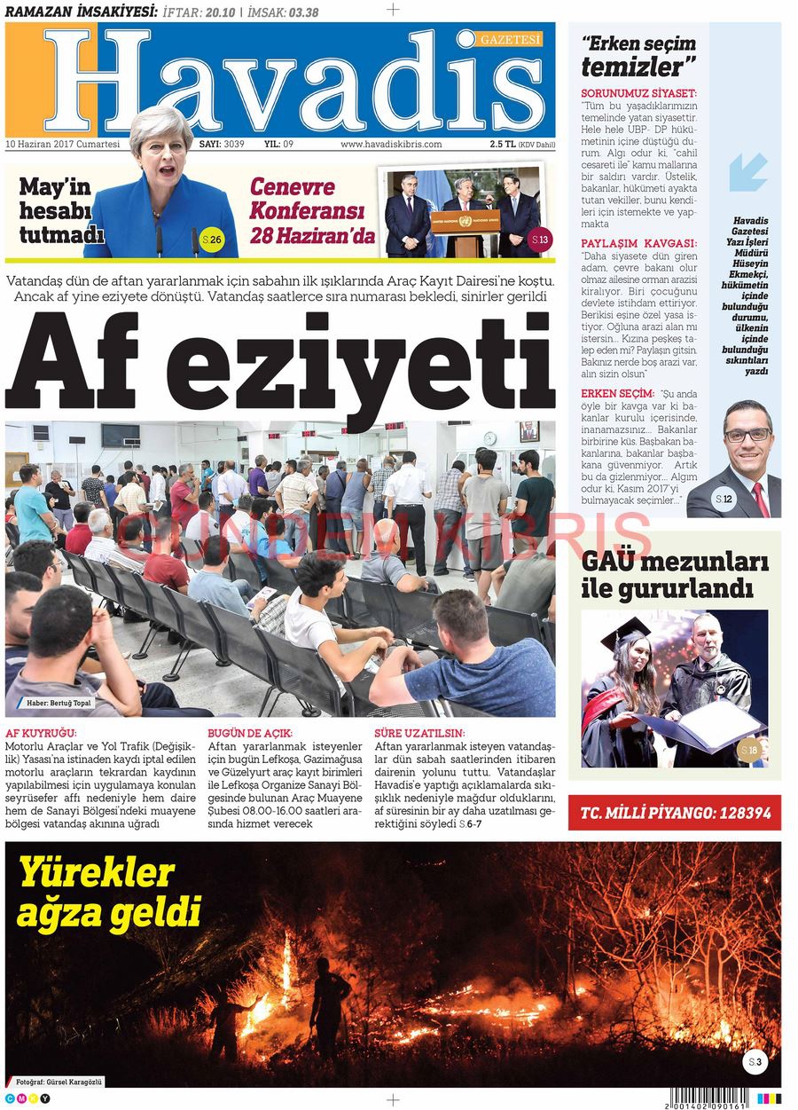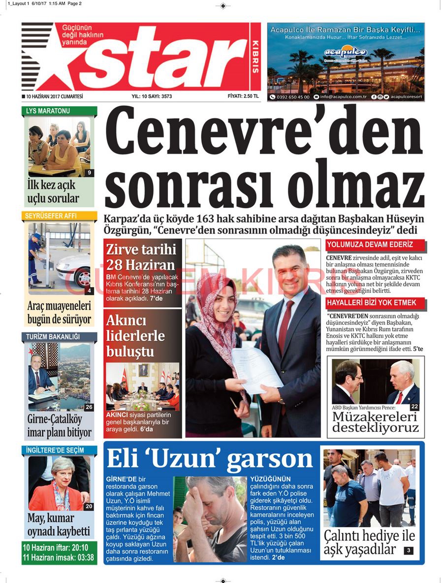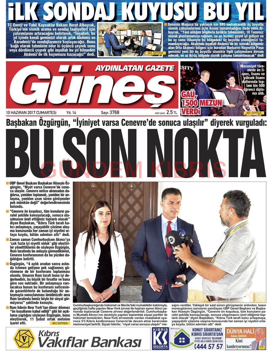 KKTC Gazete Manşetleri 10 Haziran 2017