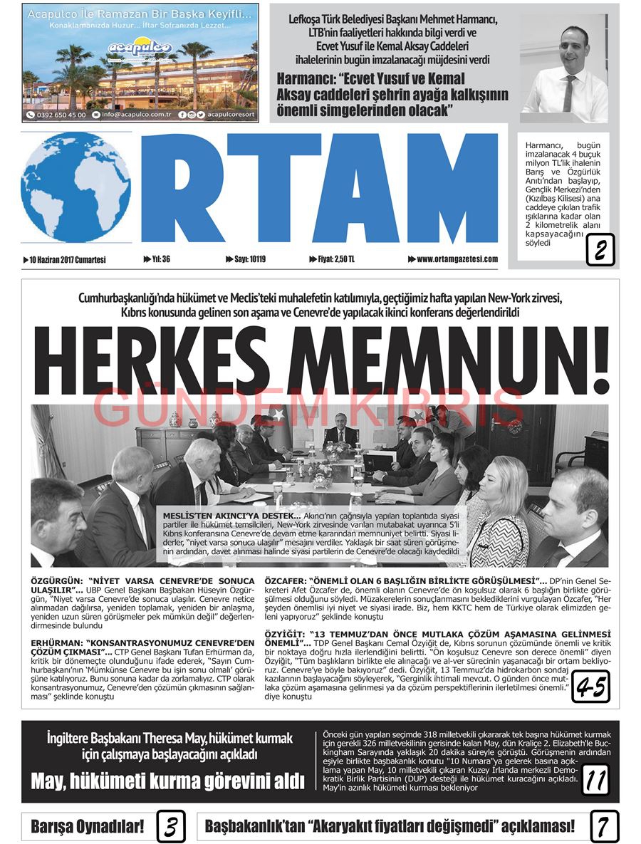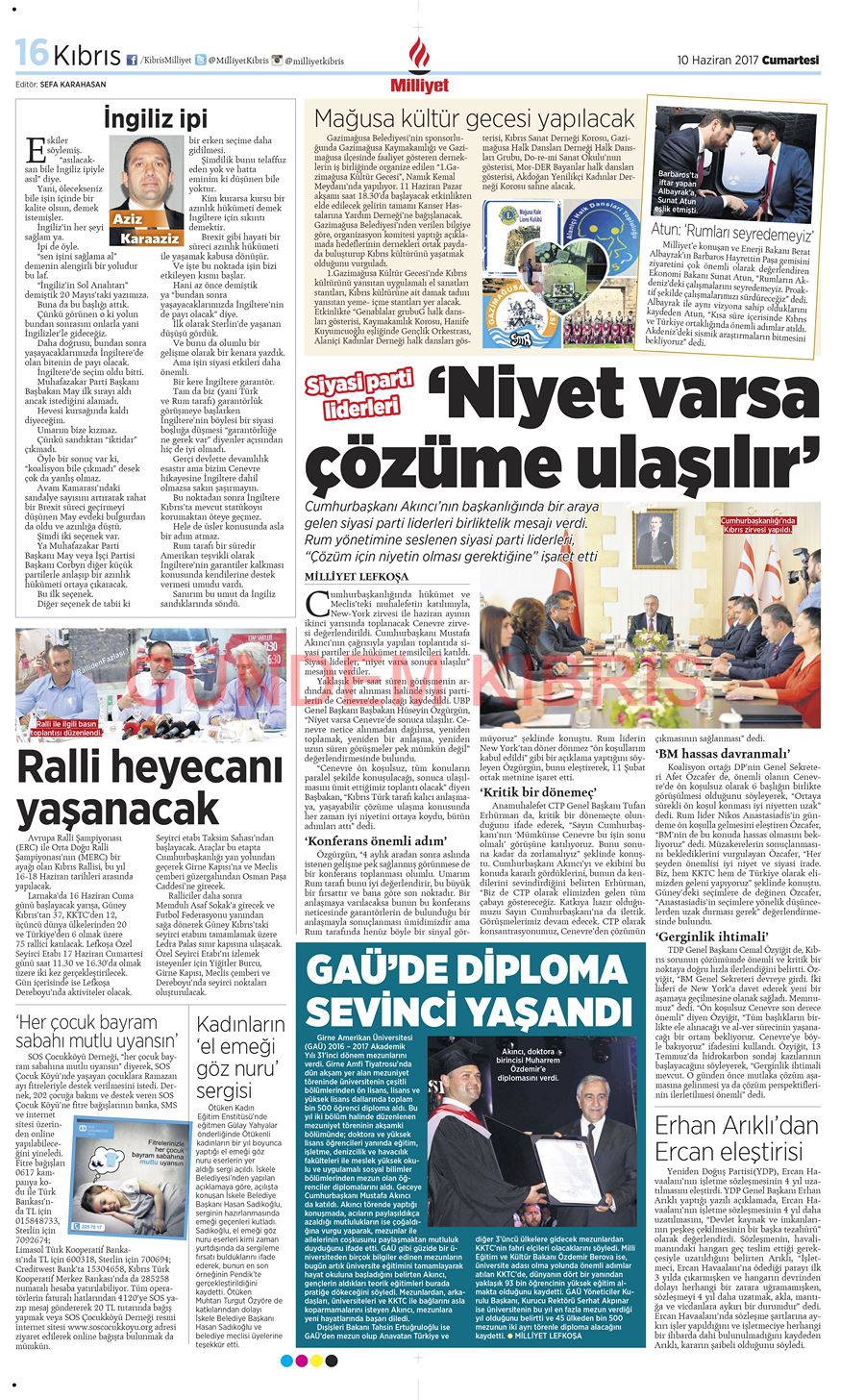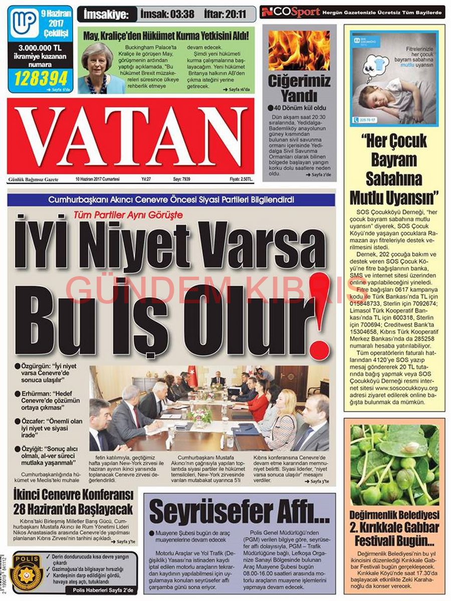 KKTC Gazete Manşetleri 10 Haziran 2017