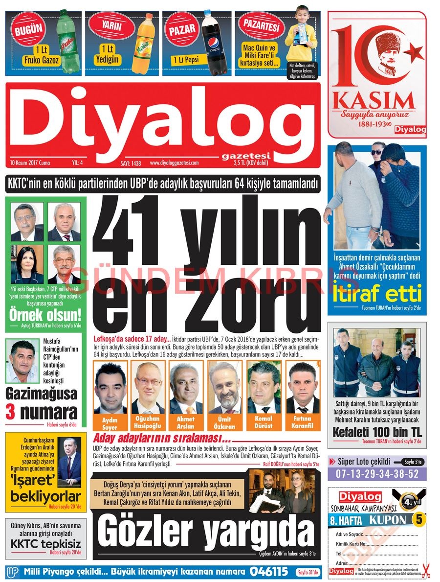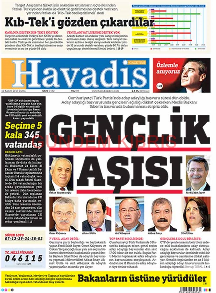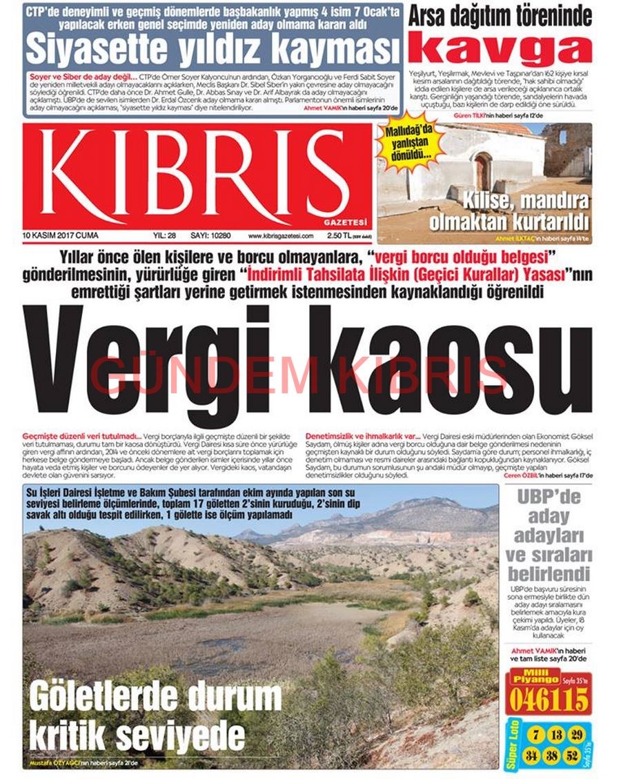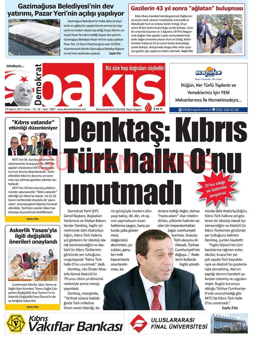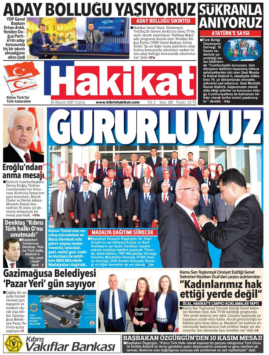 KKTC Gazete Manşetleri 10 Kasım 2017