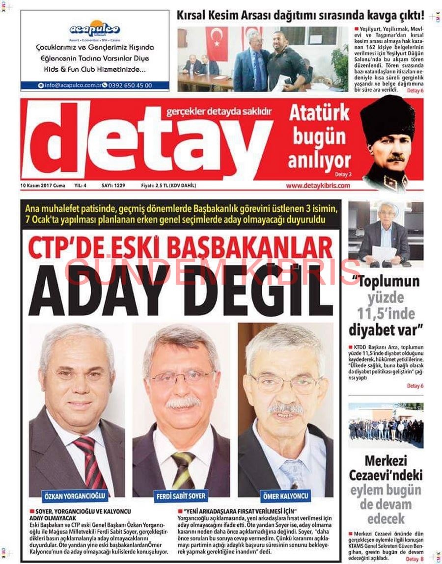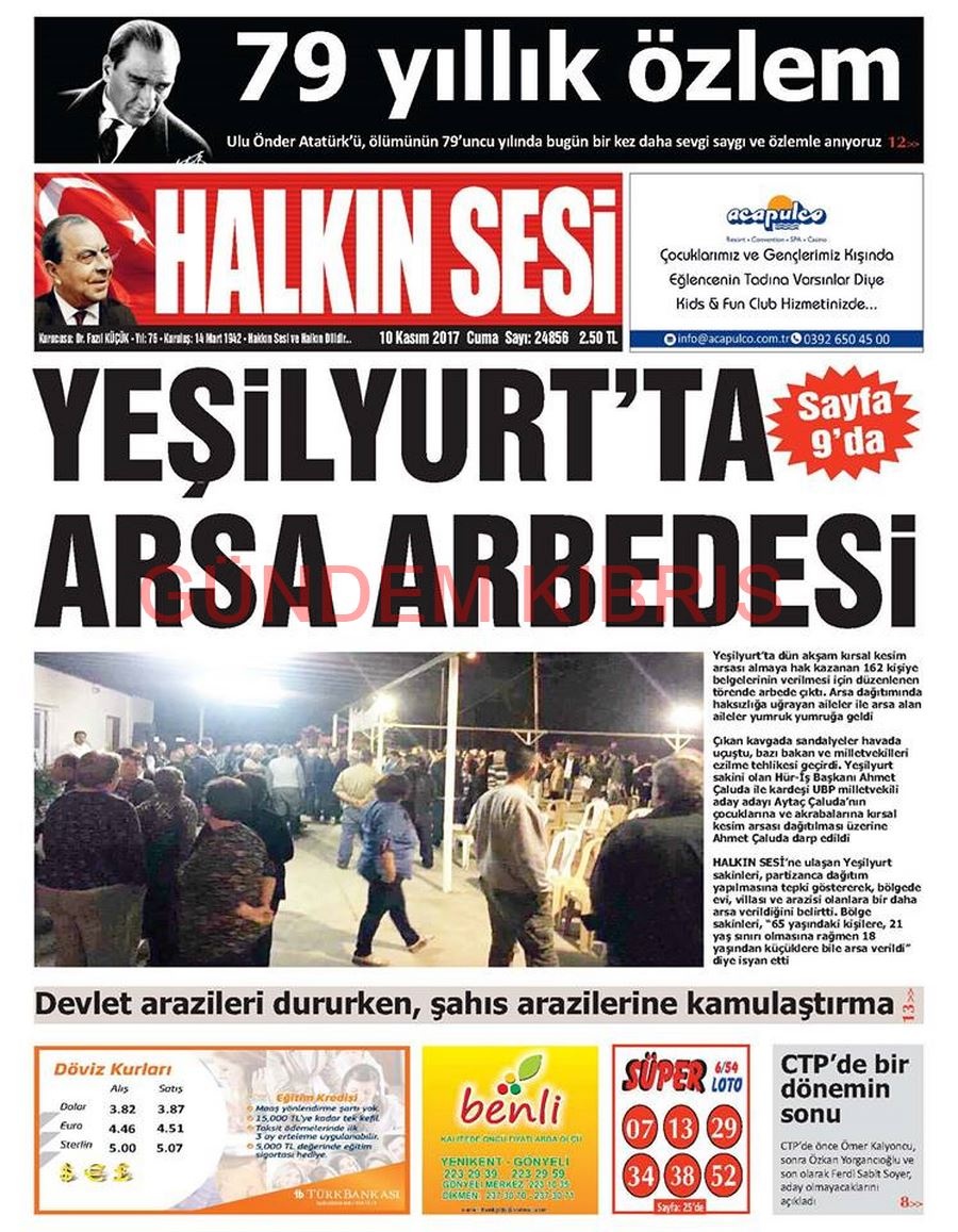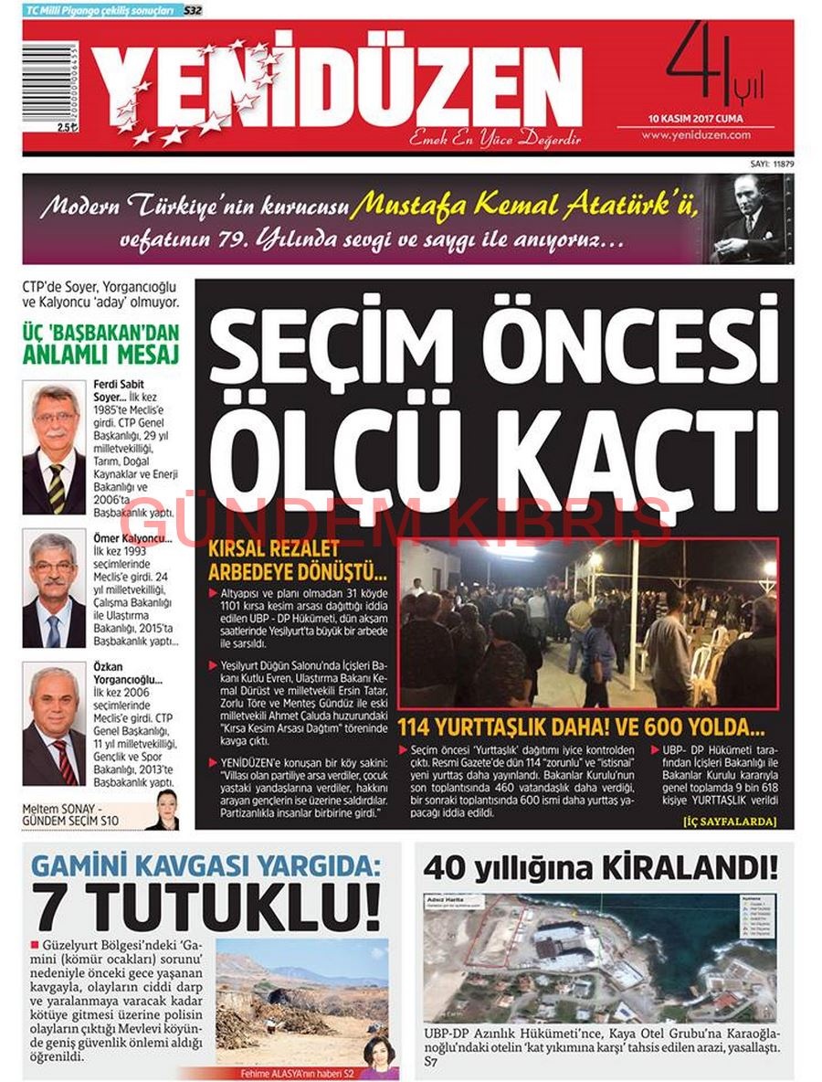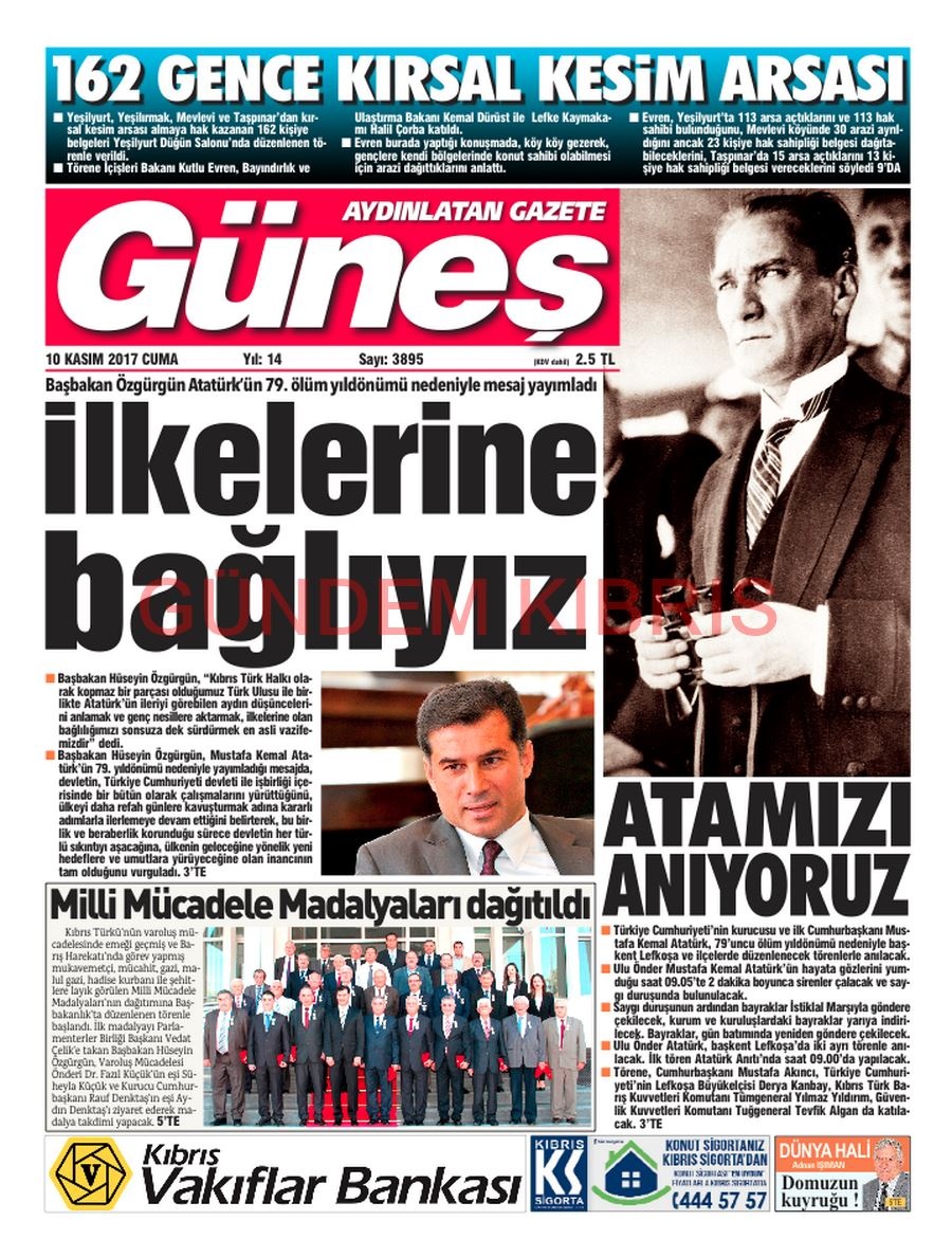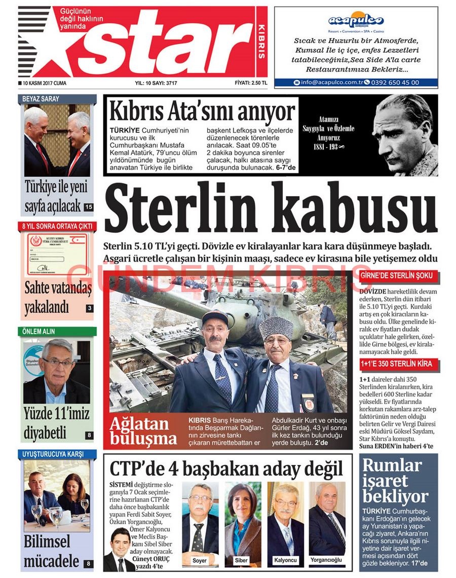 KKTC Gazete Manşetleri 10 Kasım 2017