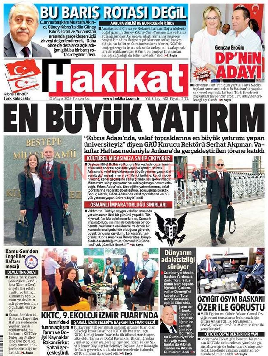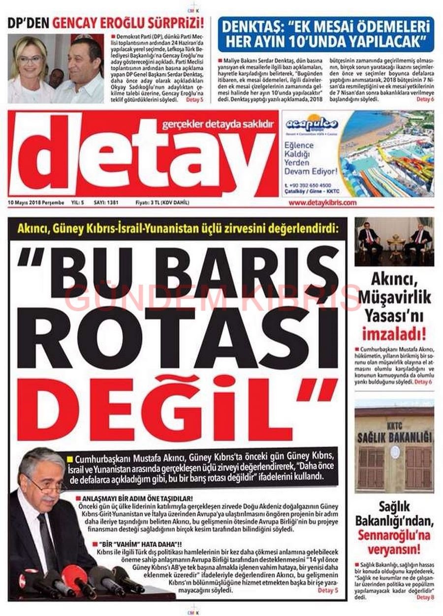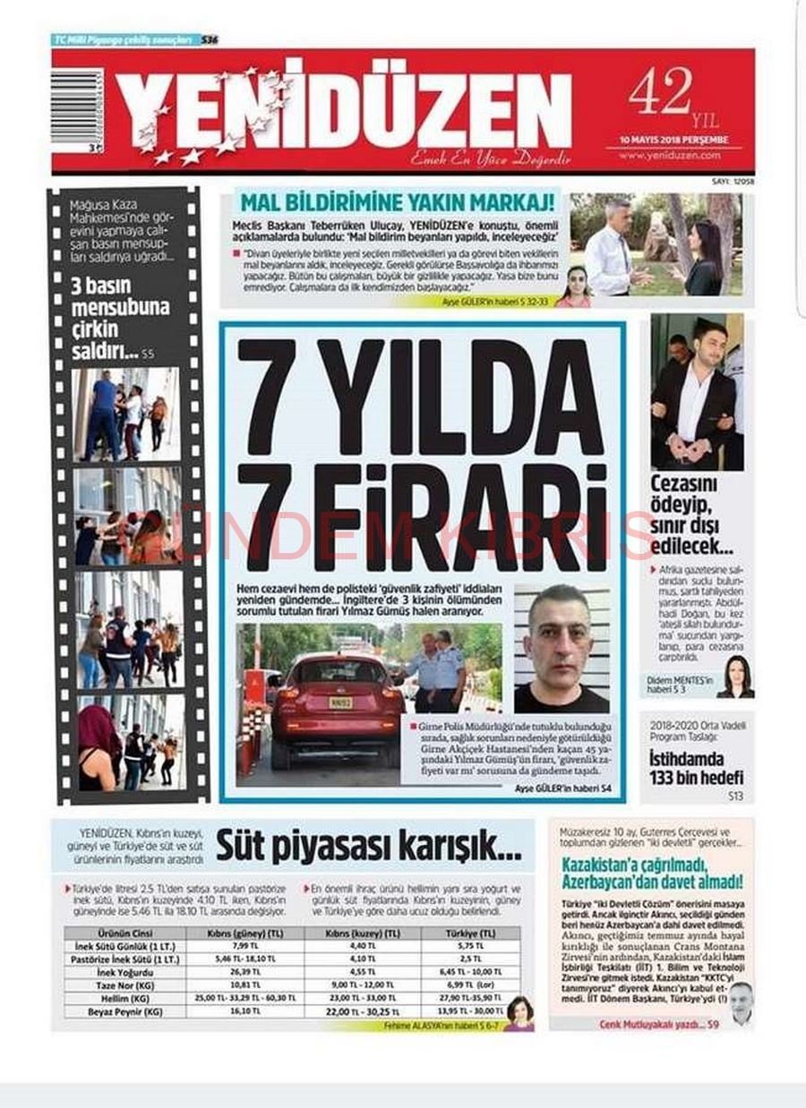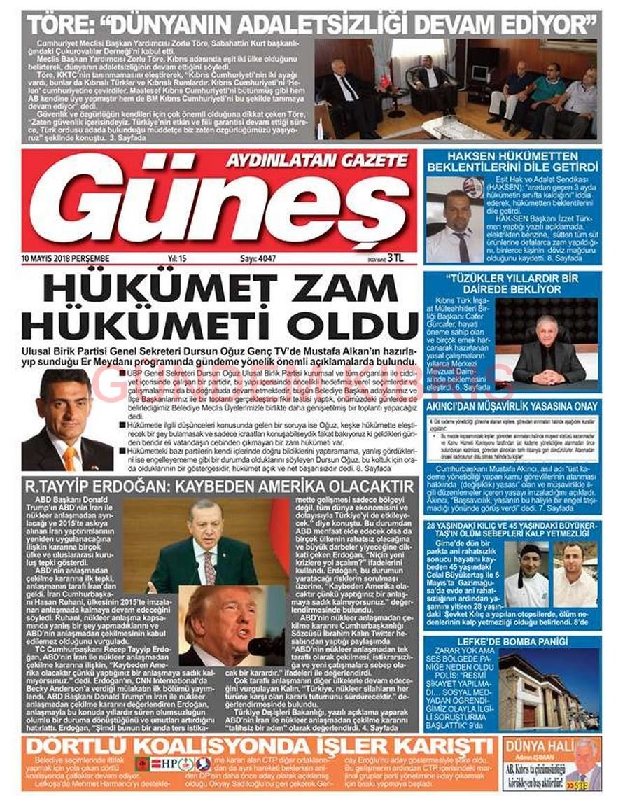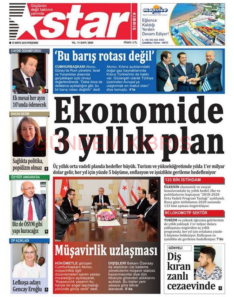 KKTC Gazete Manşetleri 10 Mayıs 2018