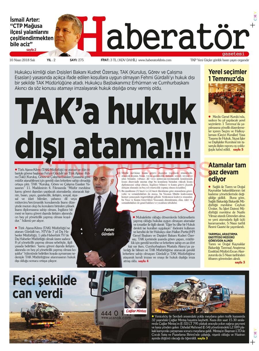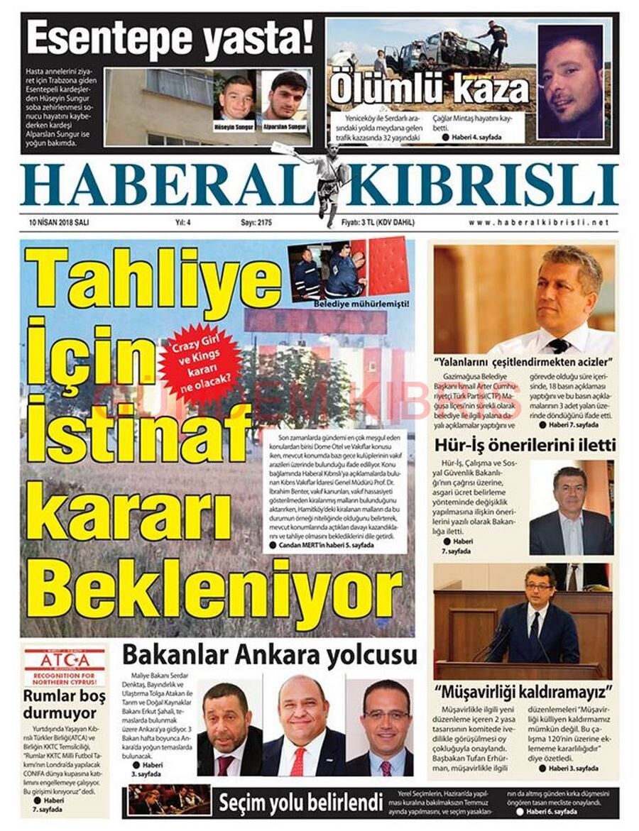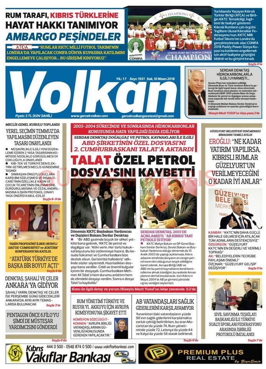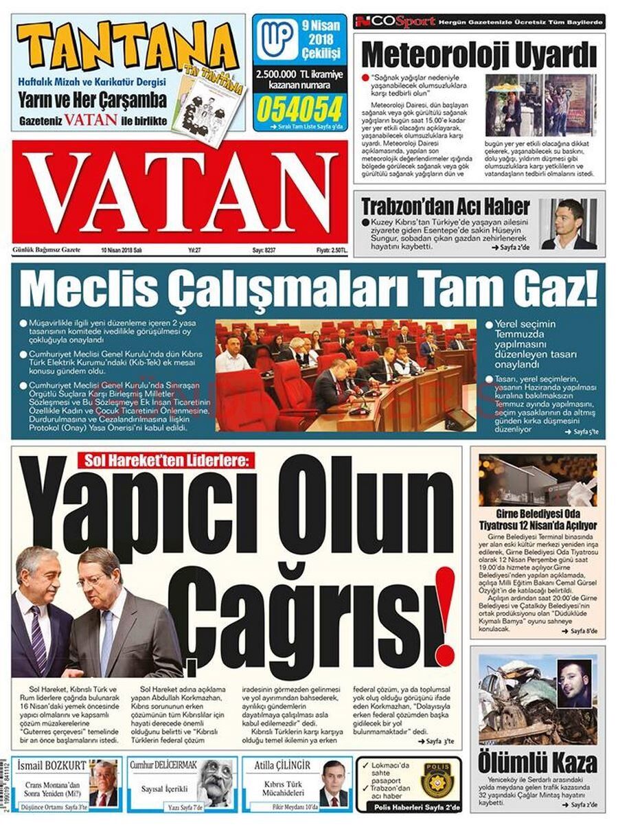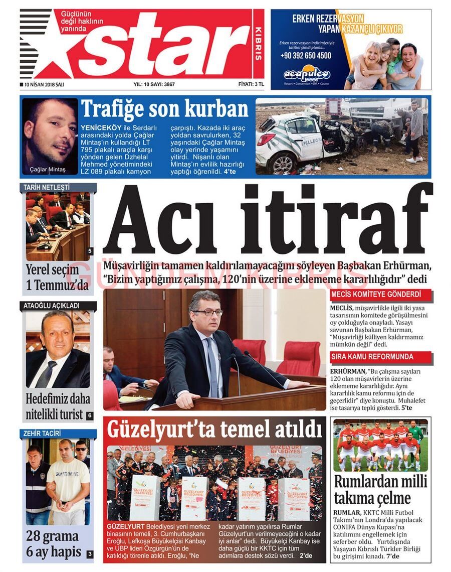 KKTC Gazete Manşetleri 10 Nisan 2018