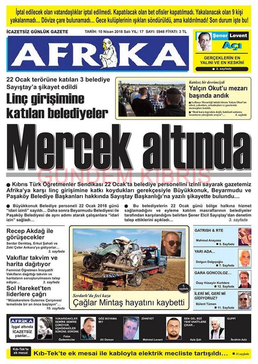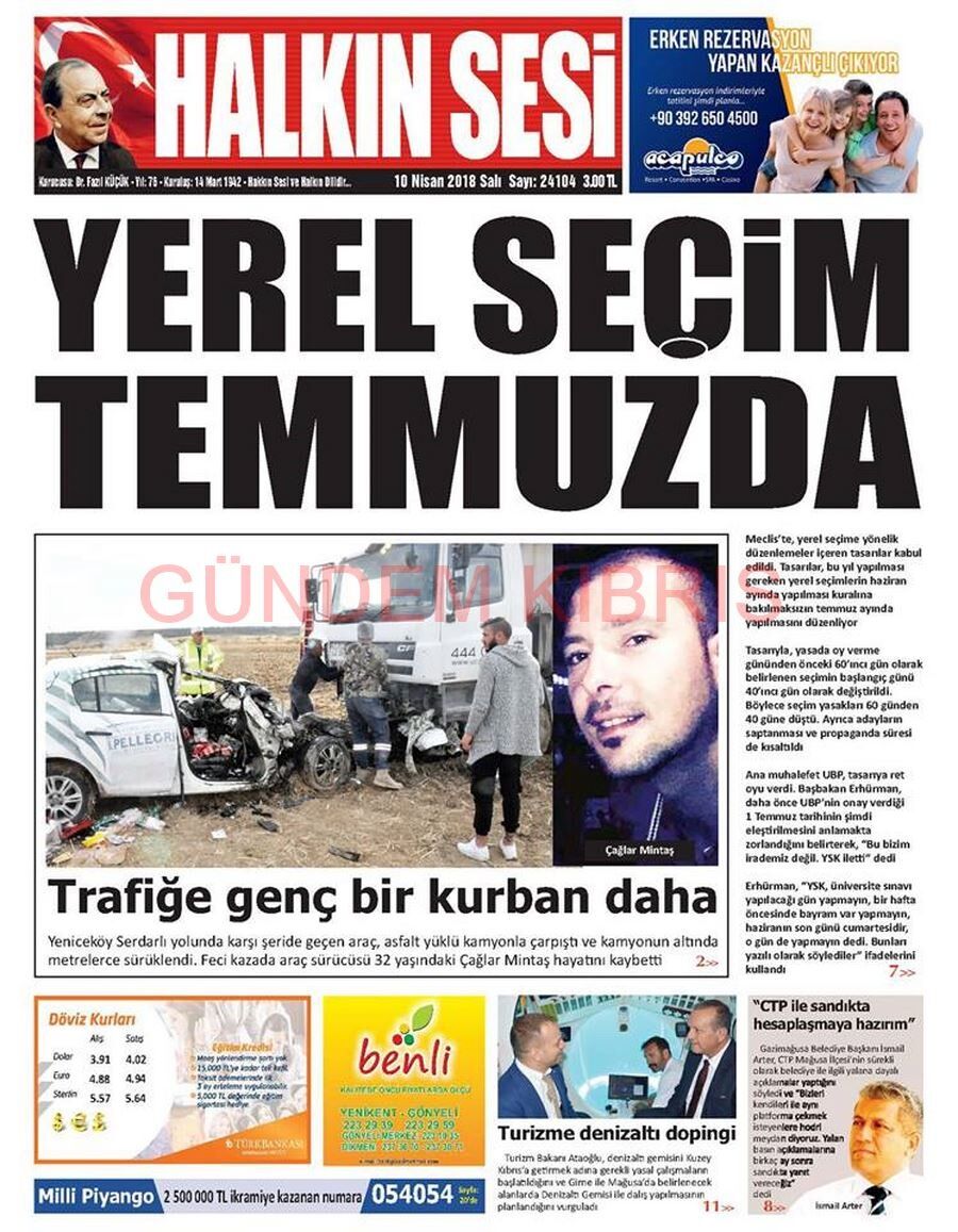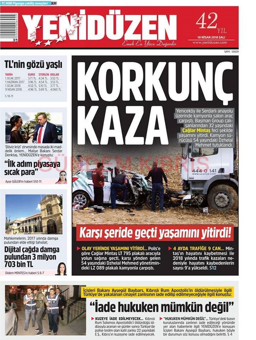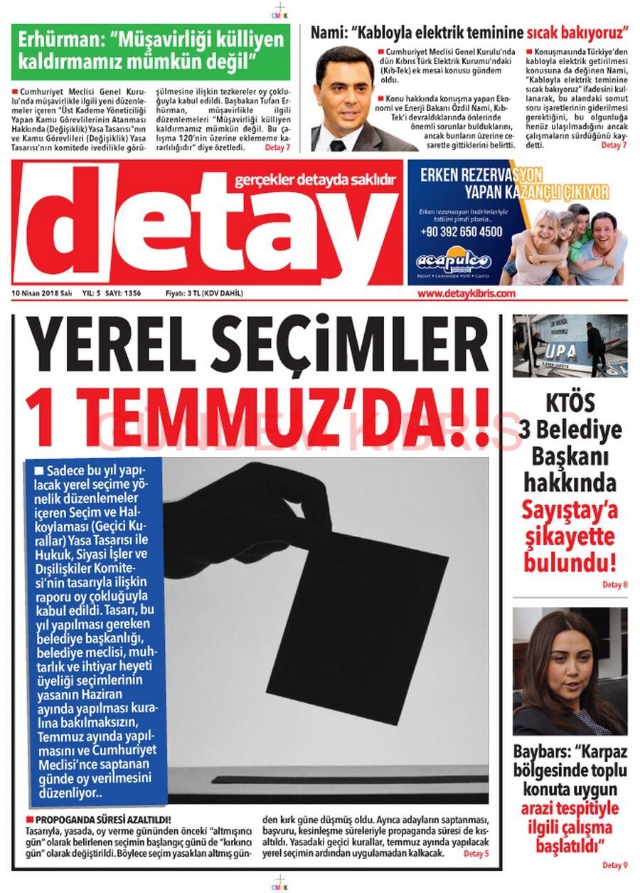 KKTC Gazete Manşetleri 10 Nisan 2018