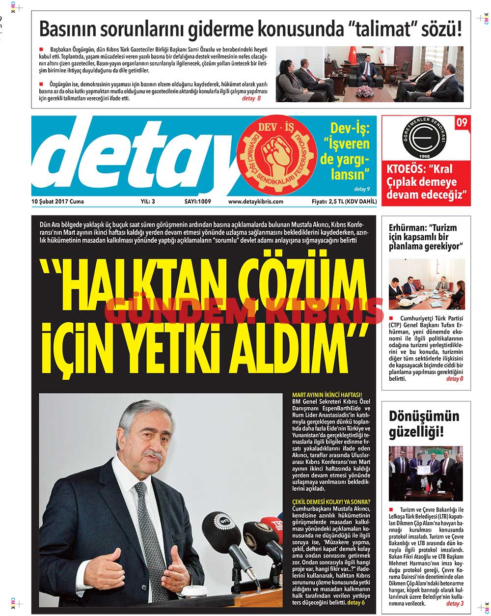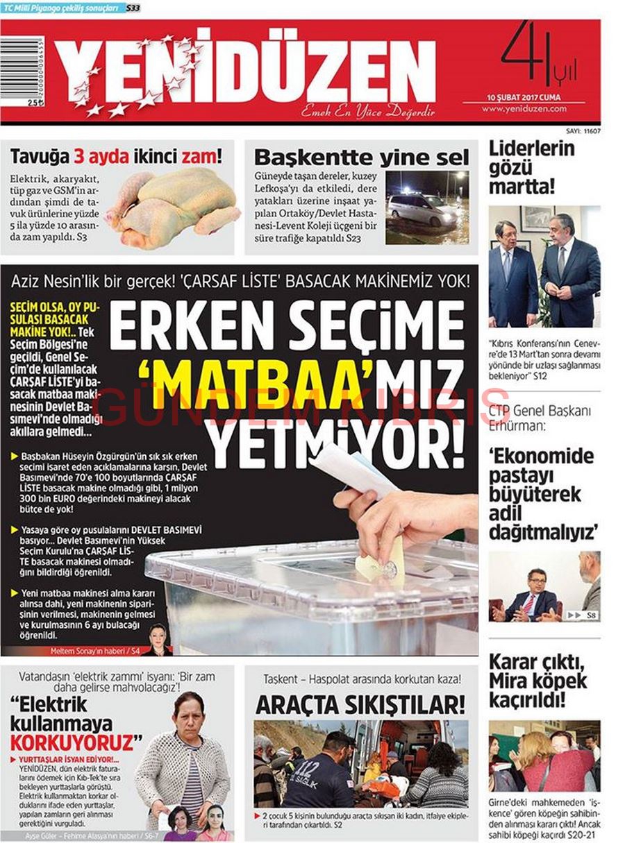 KKTC Gazete Manşetleri 10 Şubat 2017