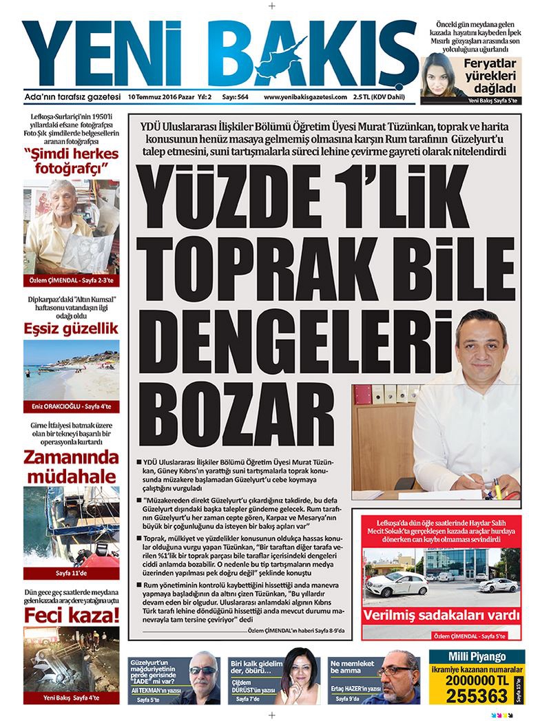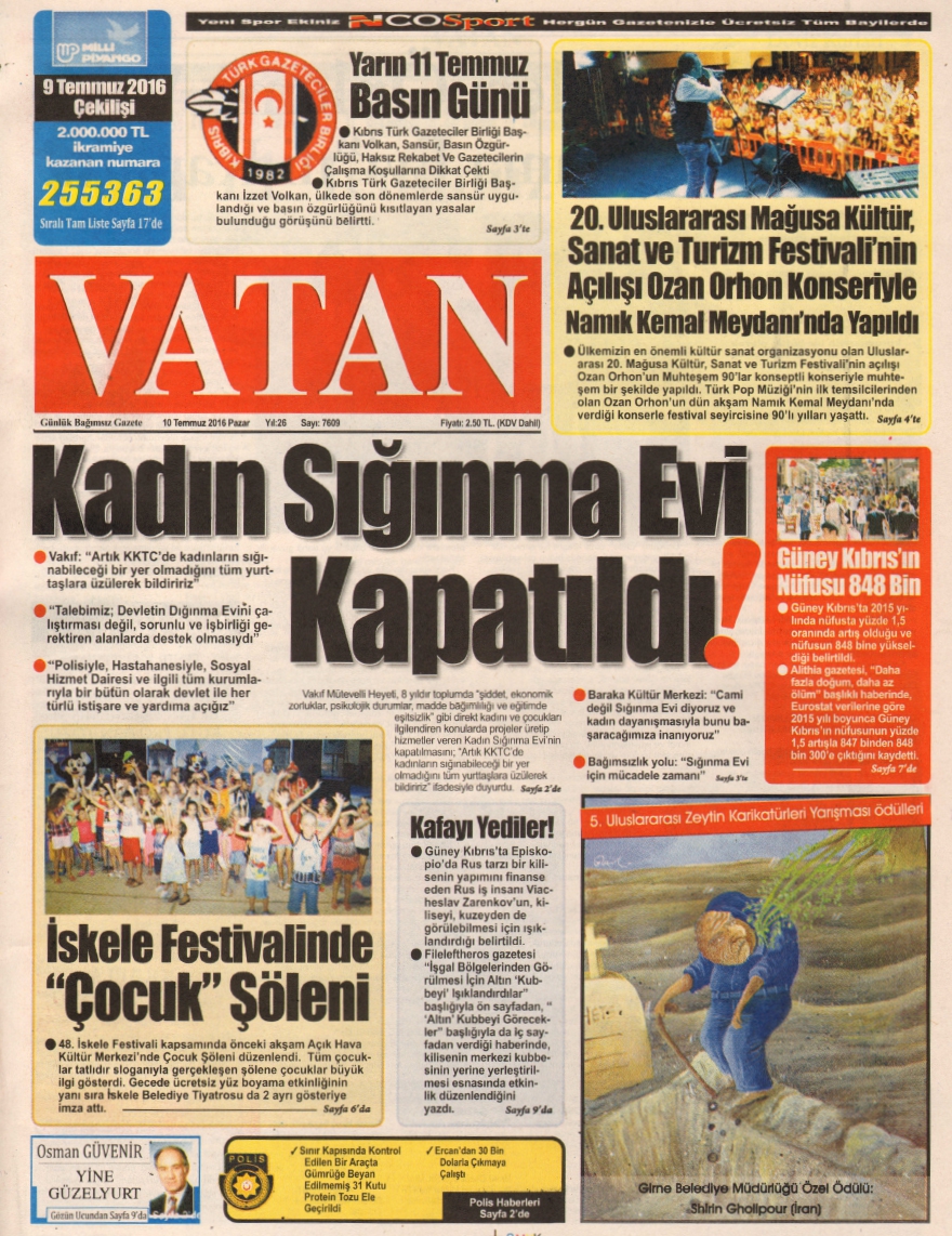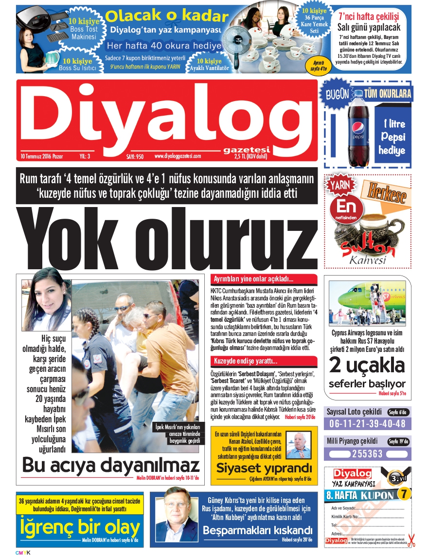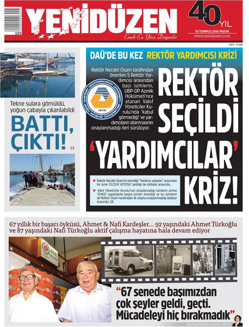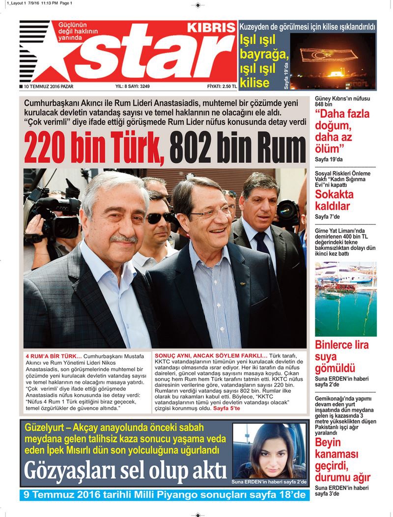 KKTC Gazete Manşetleri 10 Temmuz 2016