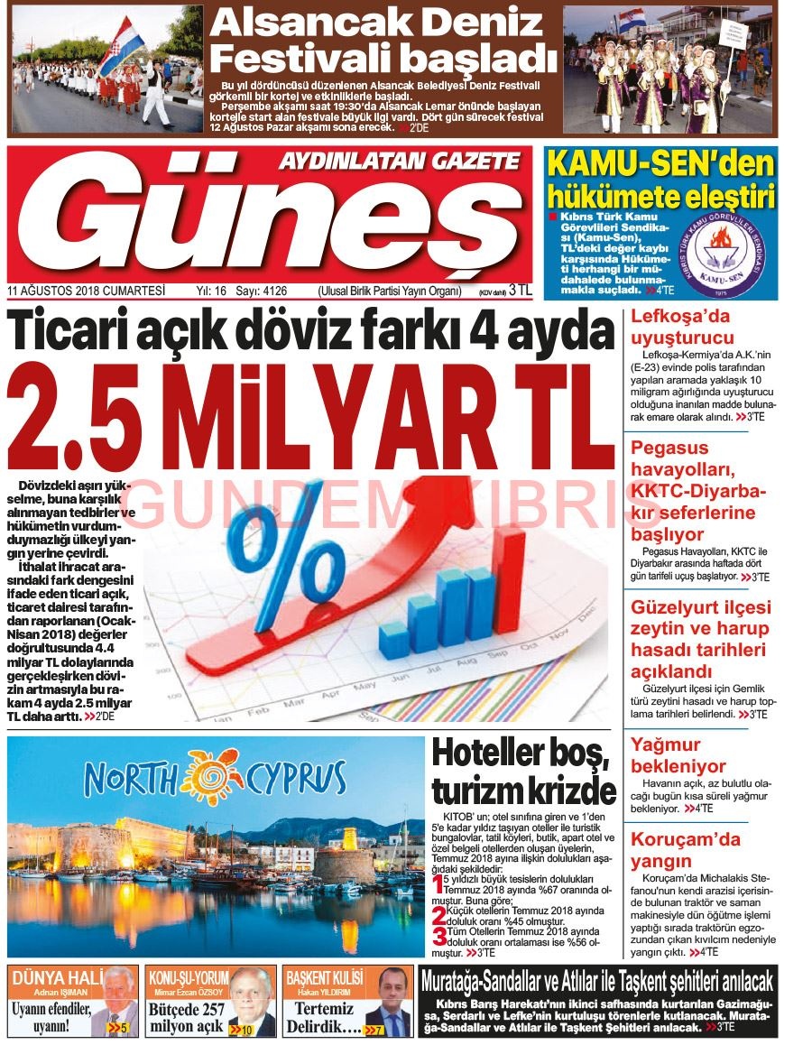 KKTC Gazete Manşetleri 11 Ağustos 2018