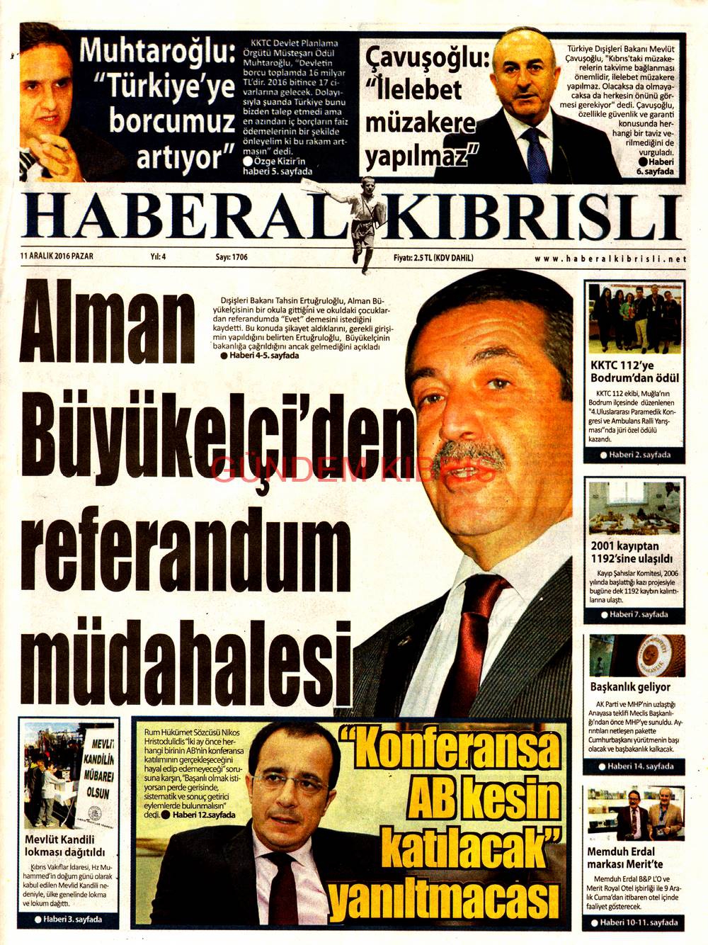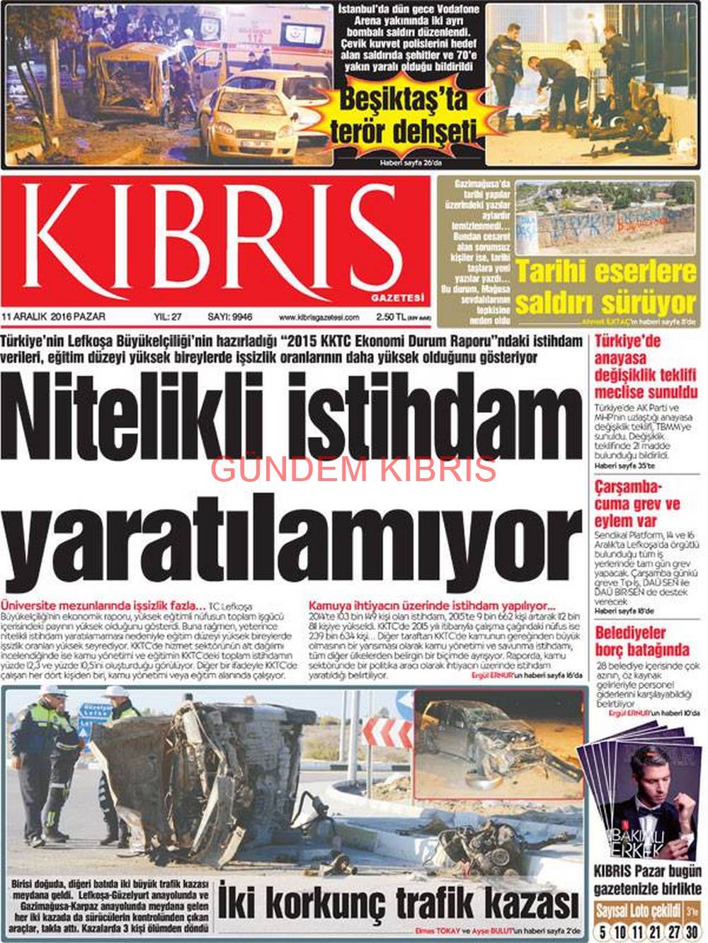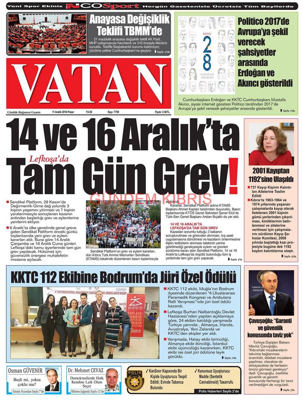 KKTC Gazete Manşetleri 11 Aralık 2016