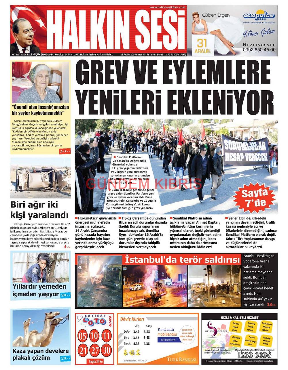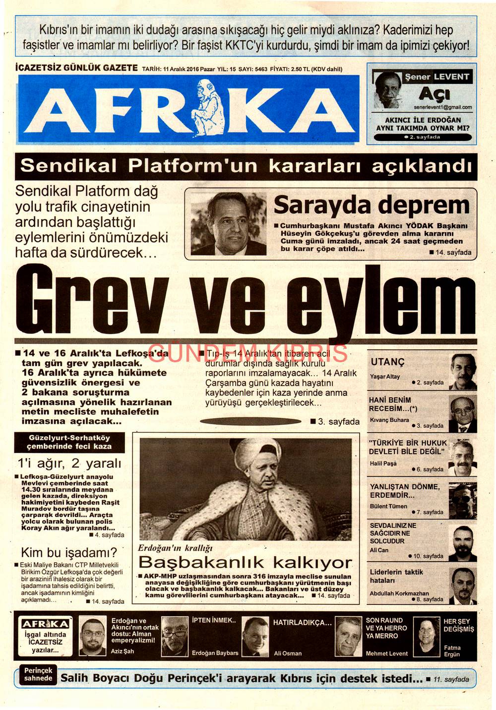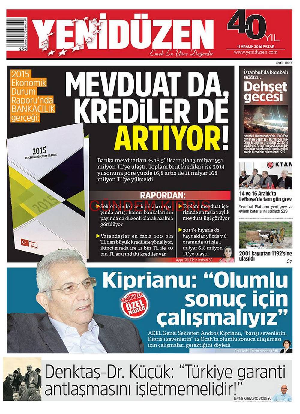 KKTC Gazete Manşetleri 11 Aralık 2016