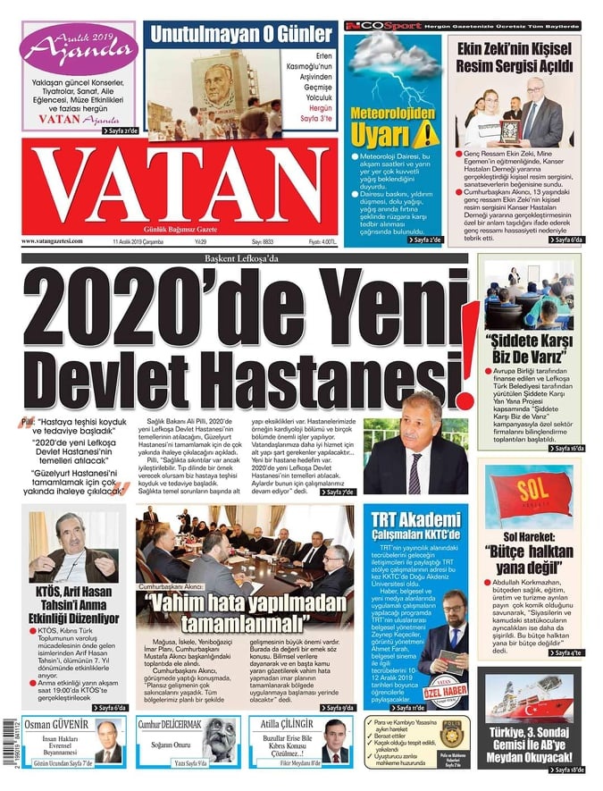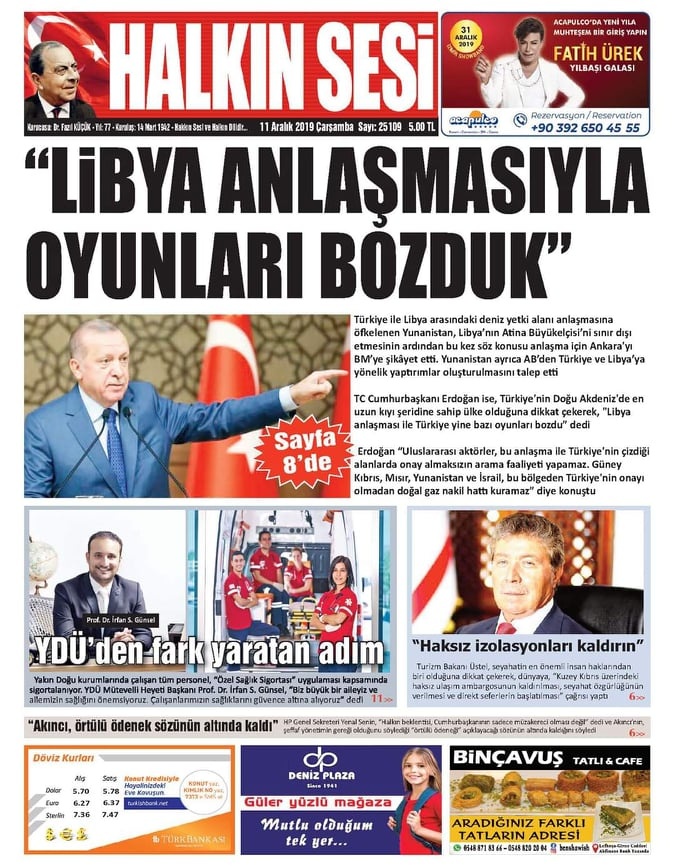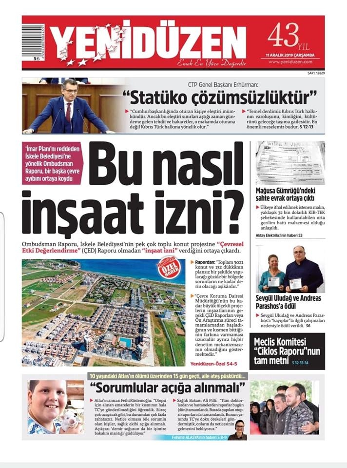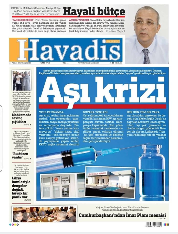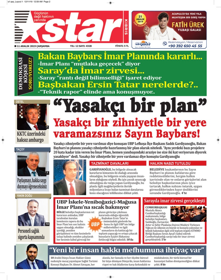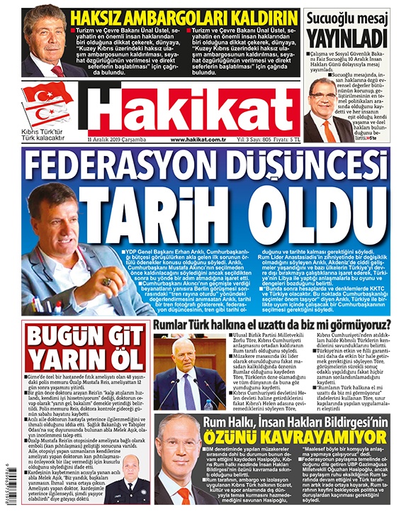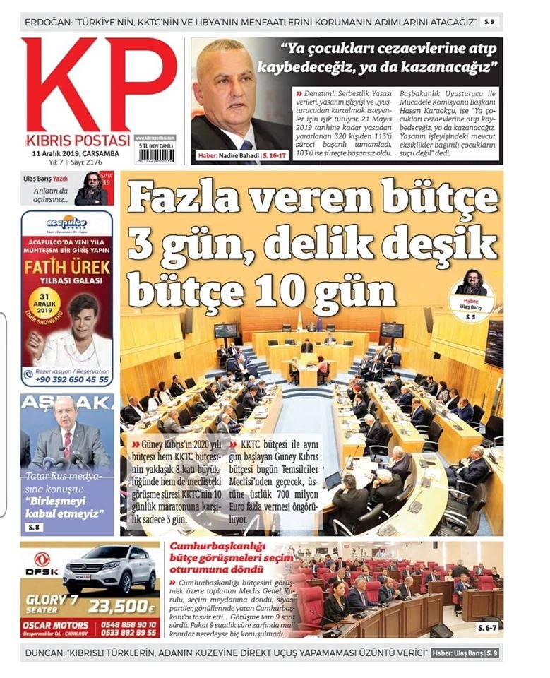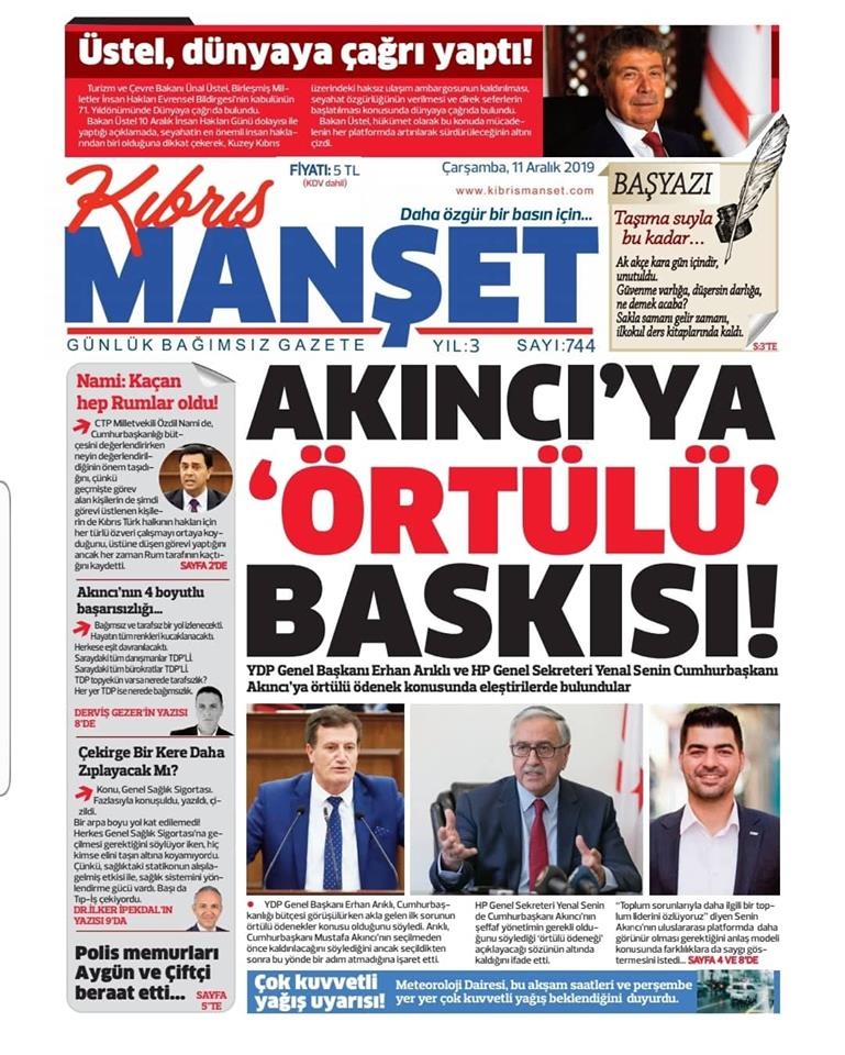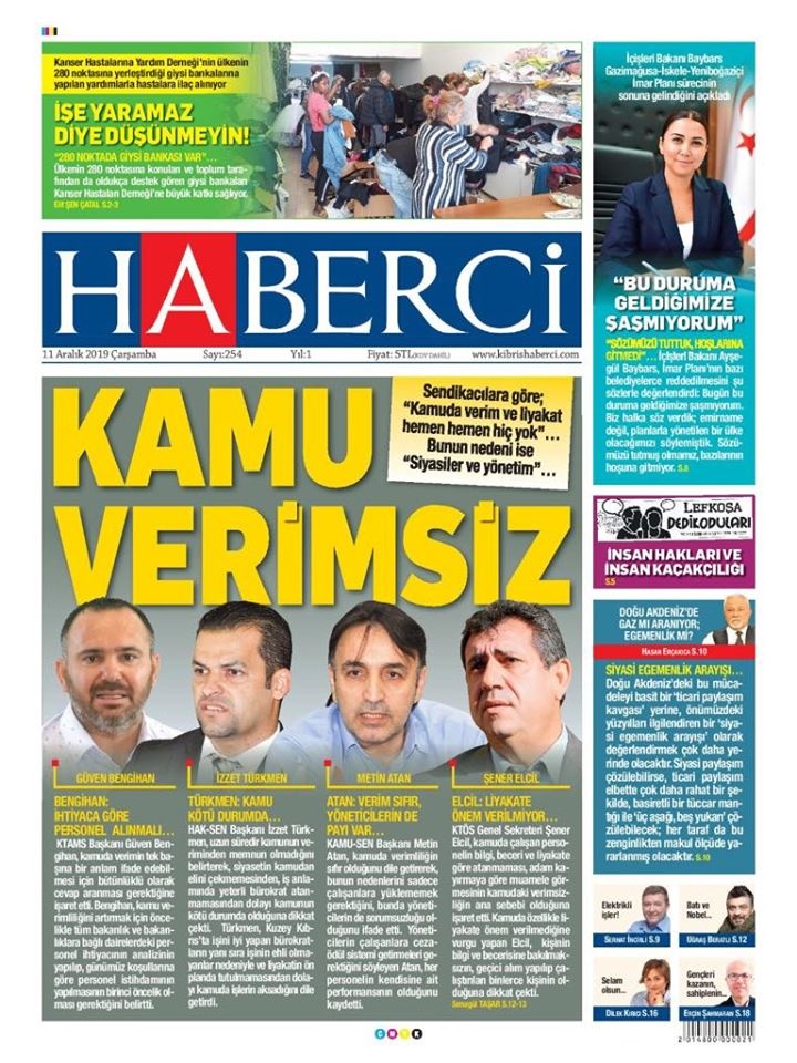 KKTC Gazete Manşetleri - 11 Aralık 2019