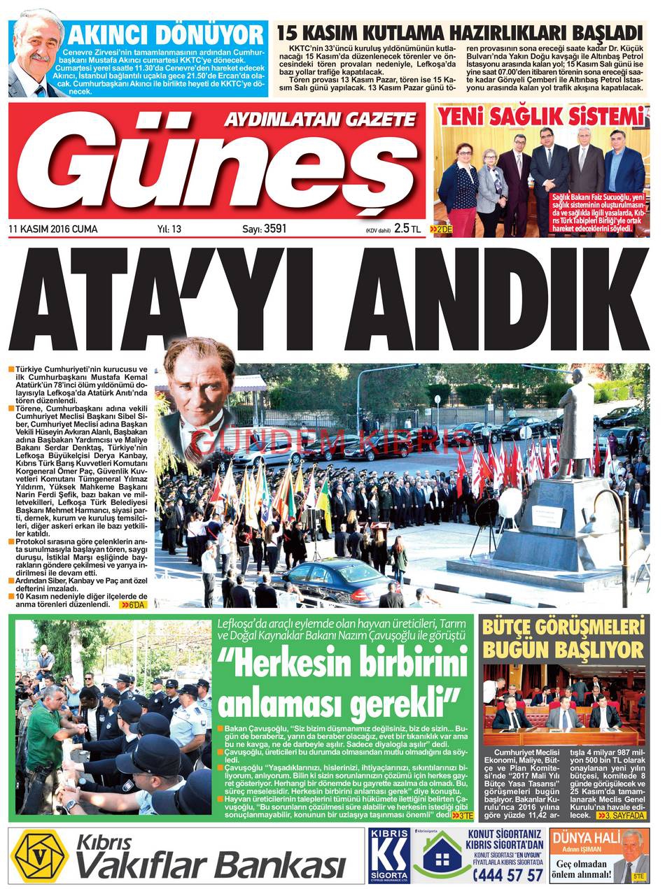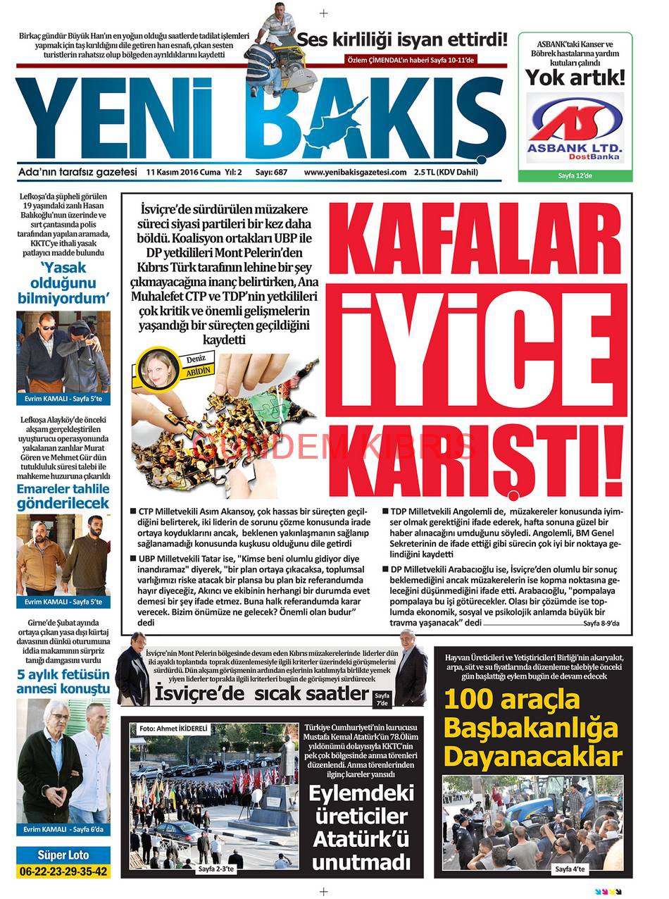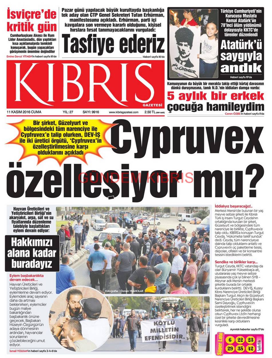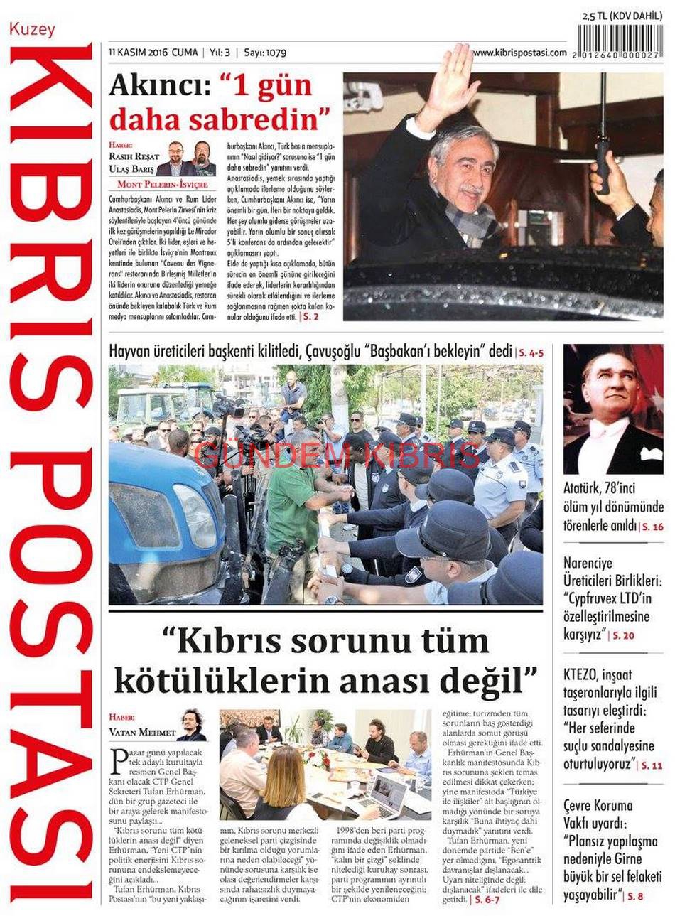 KKTC Gazete Manşetleri 11 Kasım 2016