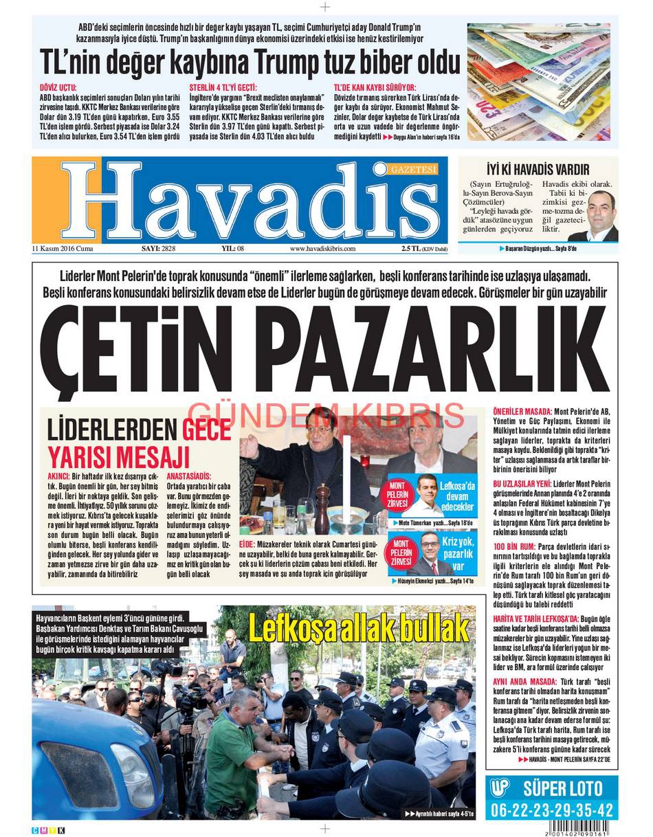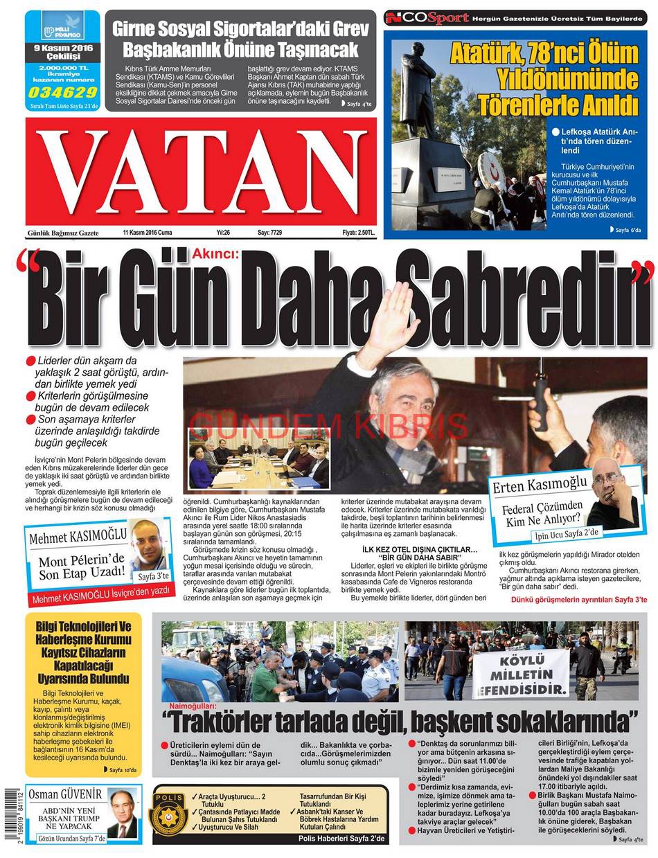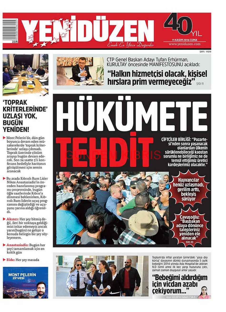 KKTC Gazete Manşetleri 11 Kasım 2016