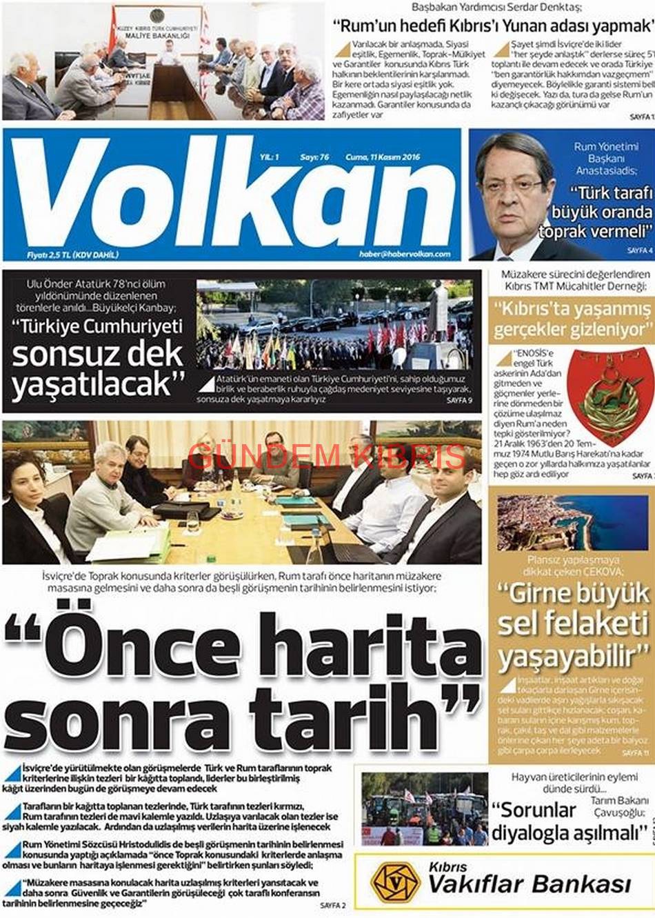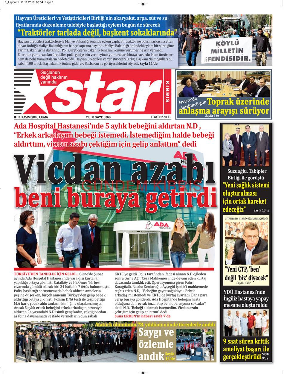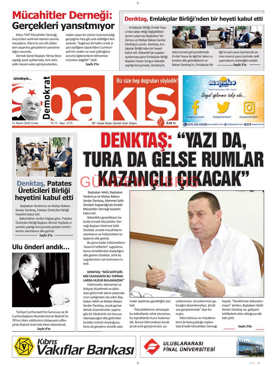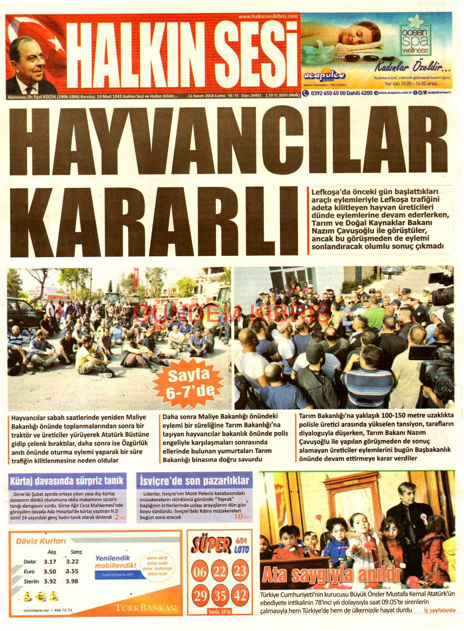 KKTC Gazete Manşetleri 11 Kasım 2016