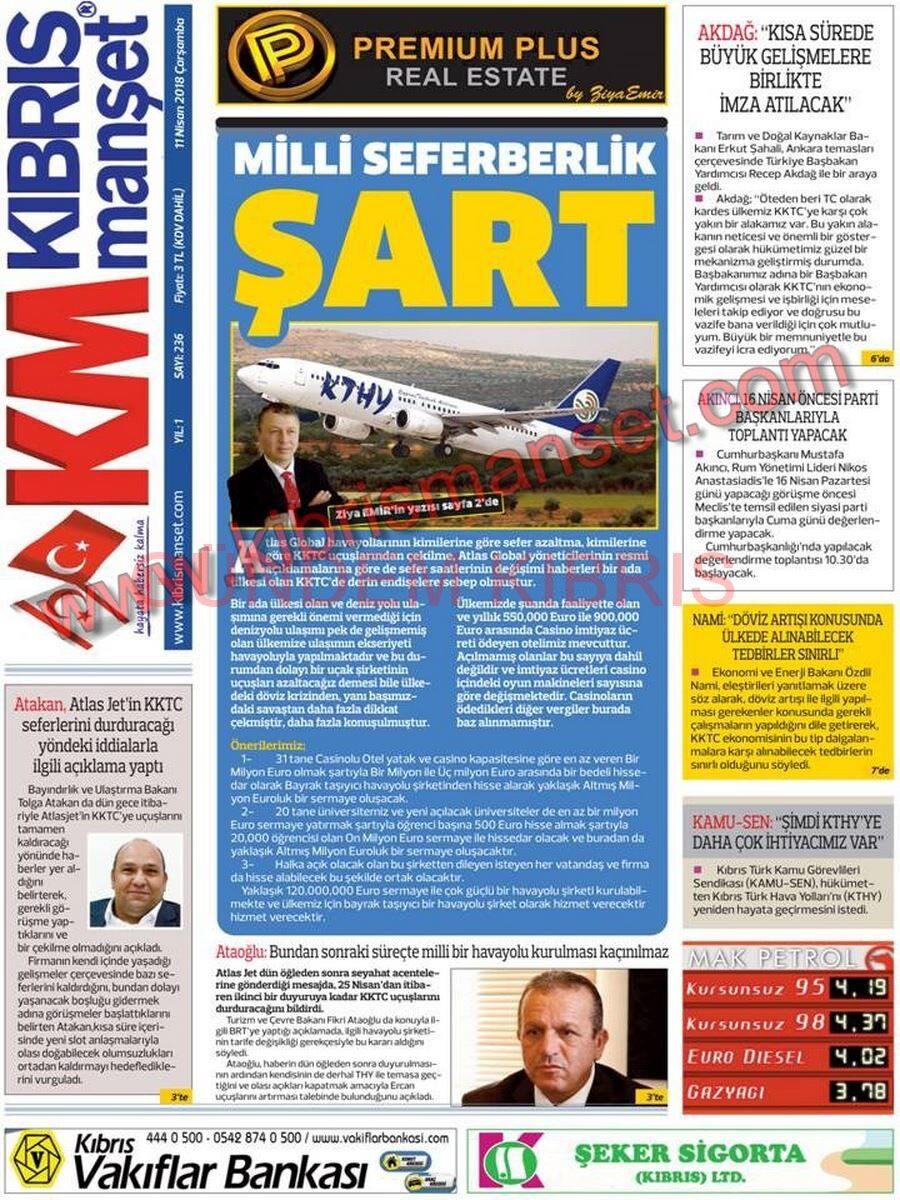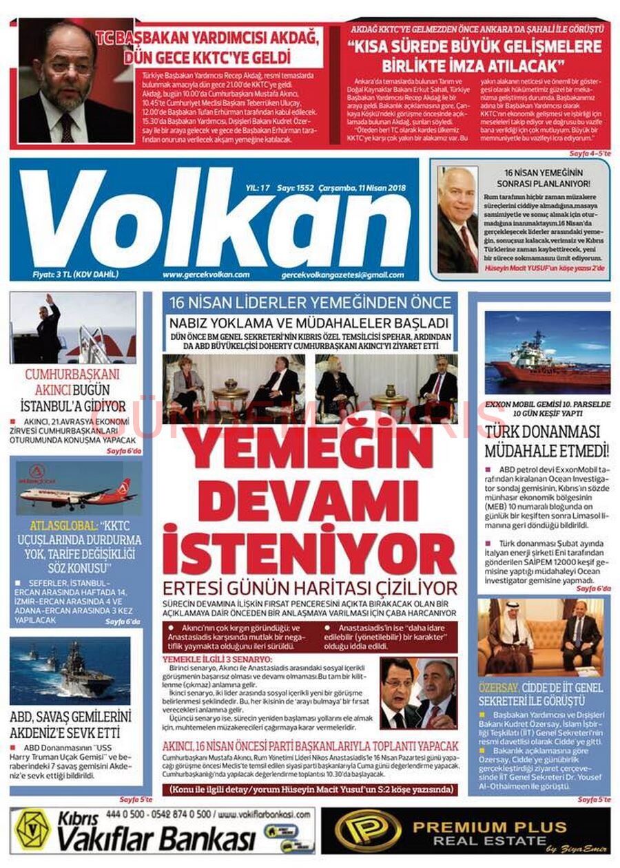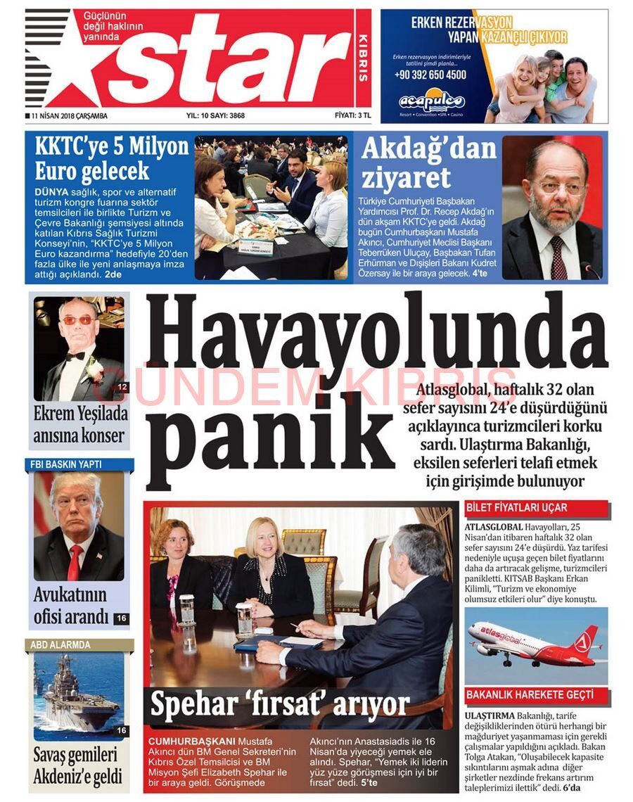 KKTC Gazete Manşetleri 11 Nisan 2018