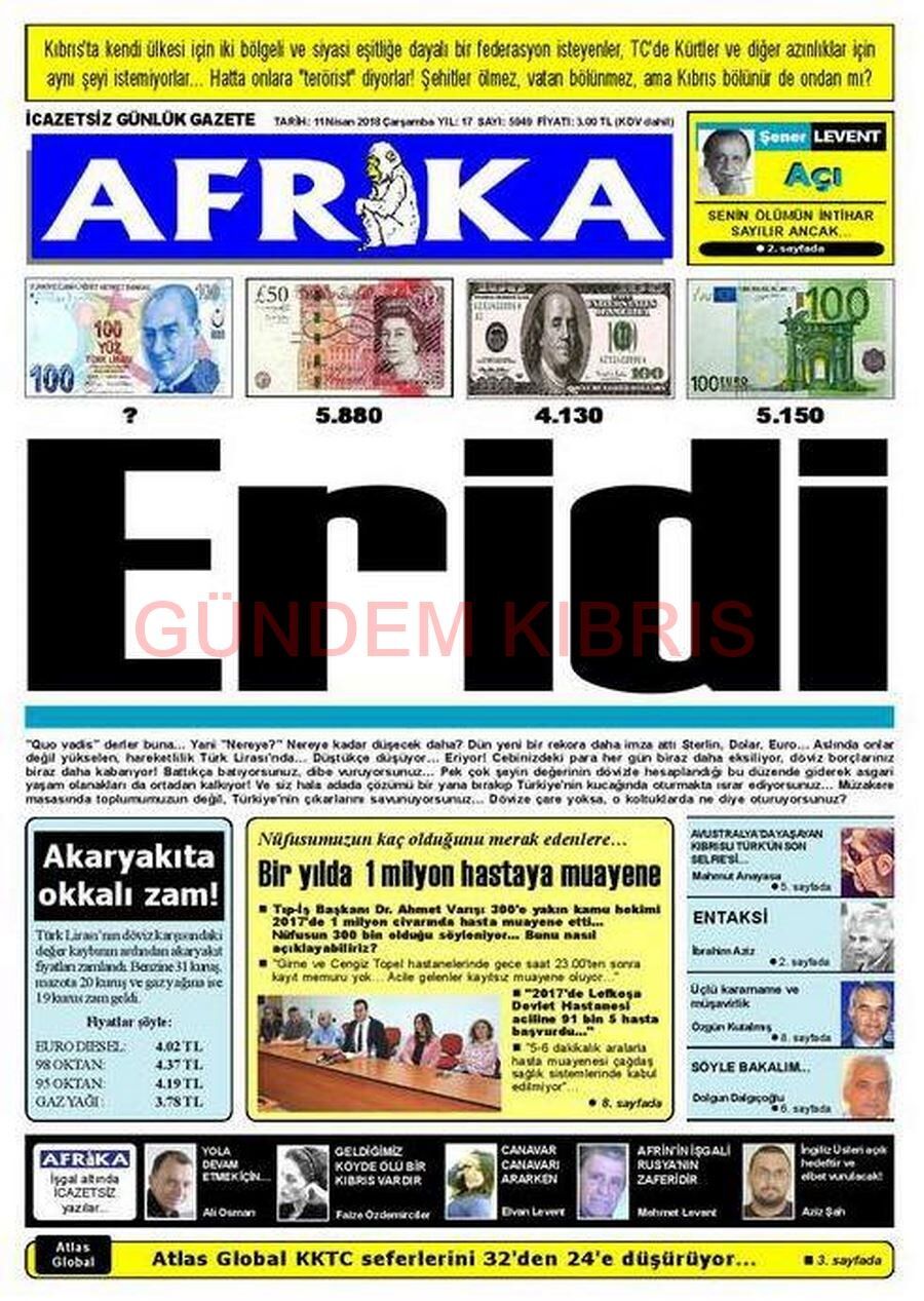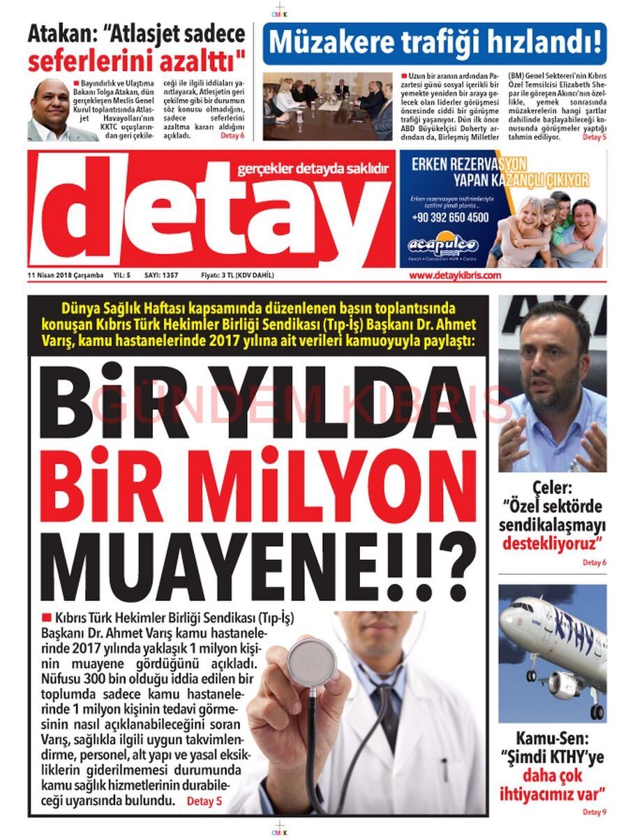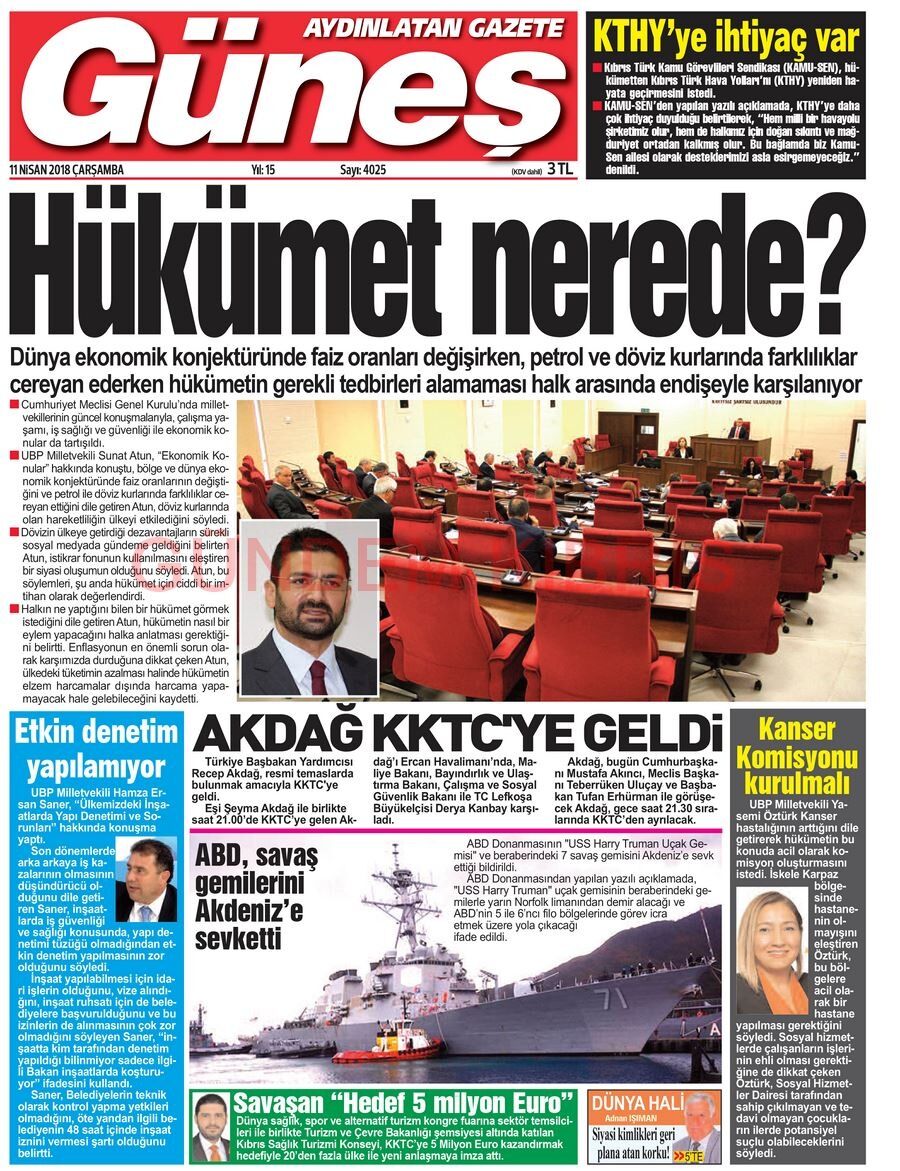 KKTC Gazete Manşetleri 11 Nisan 2018