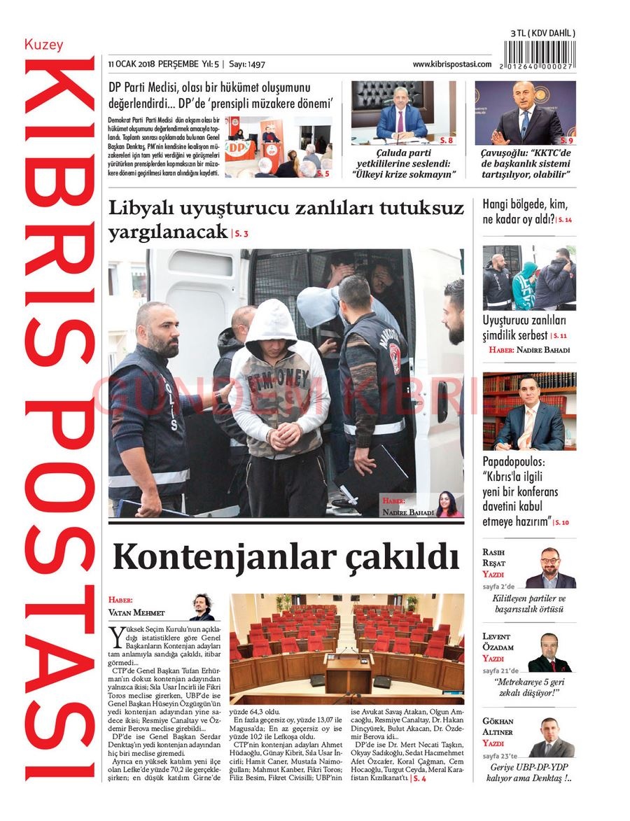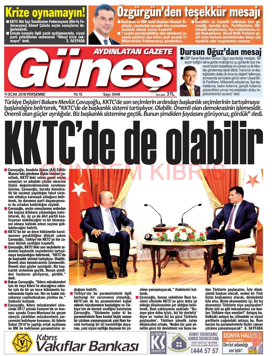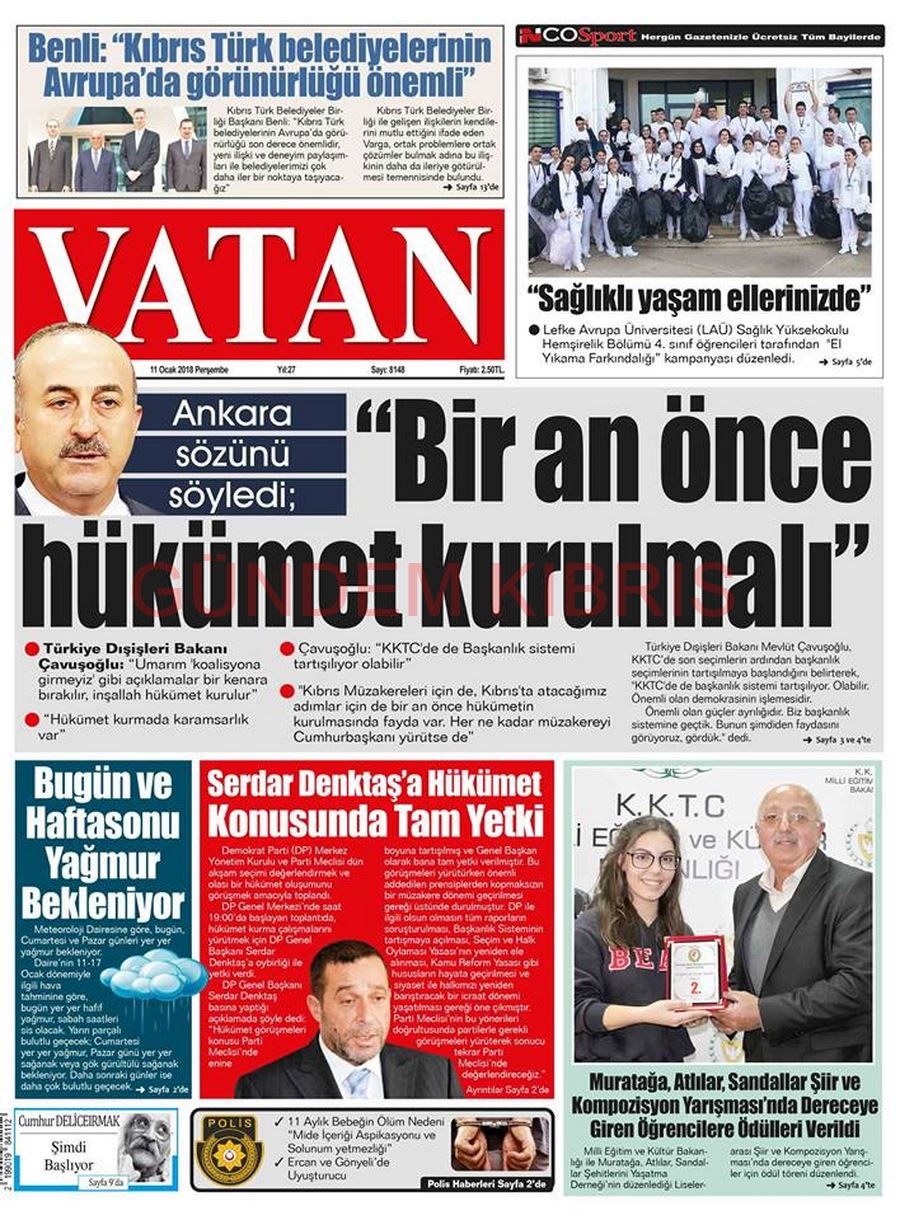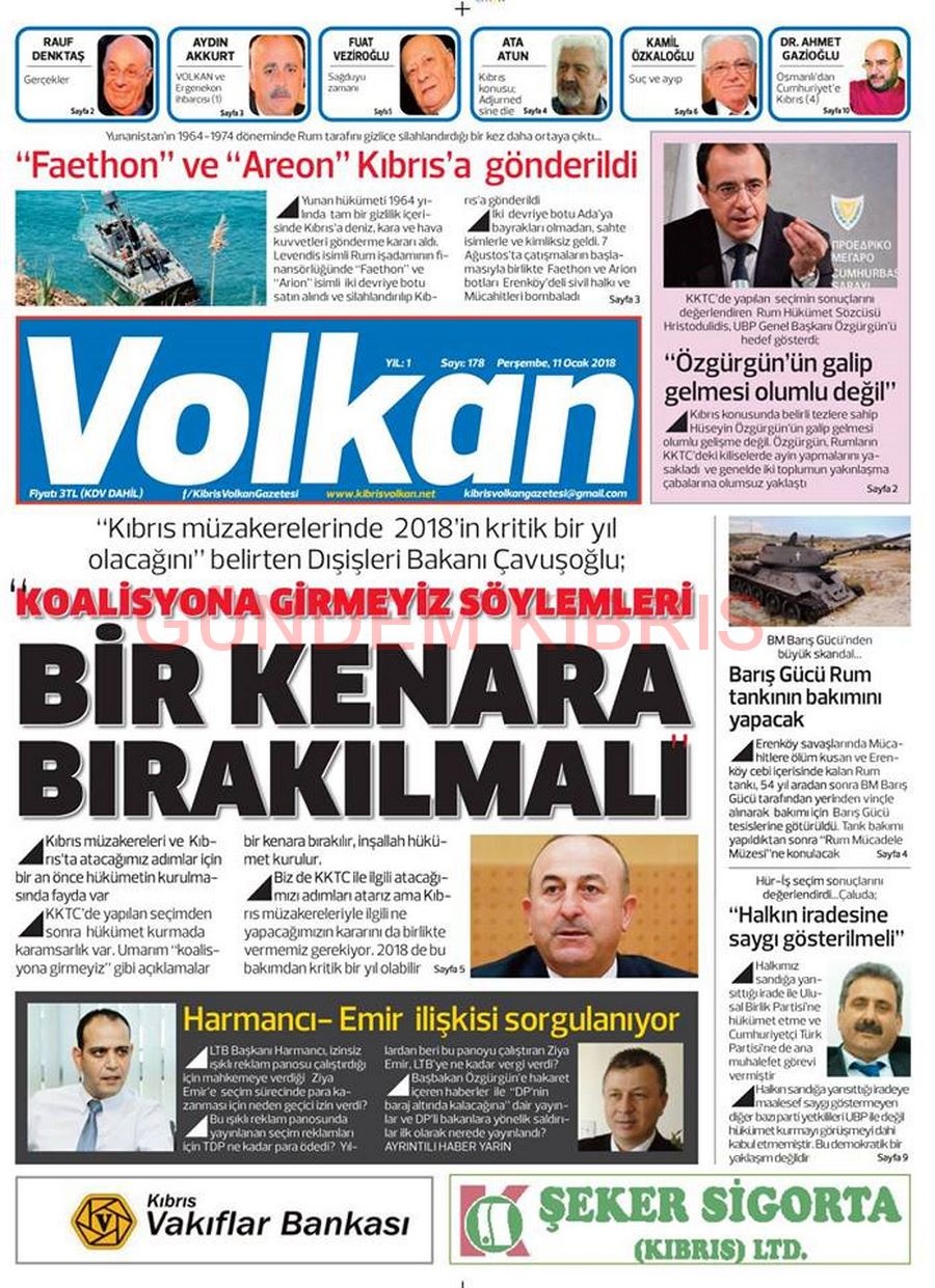 KKTC Gazete Manşetleri 11 Ocak 2018