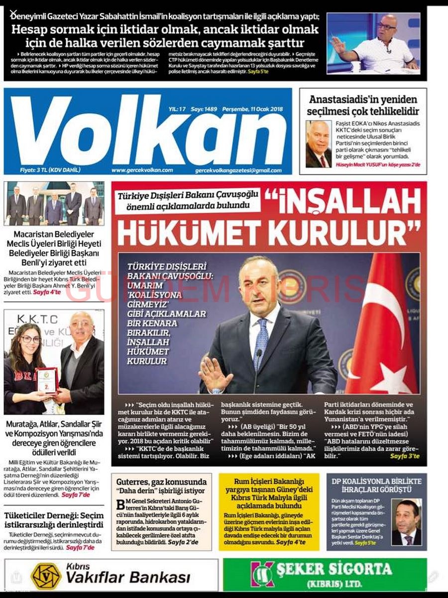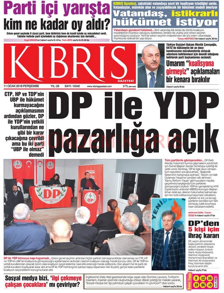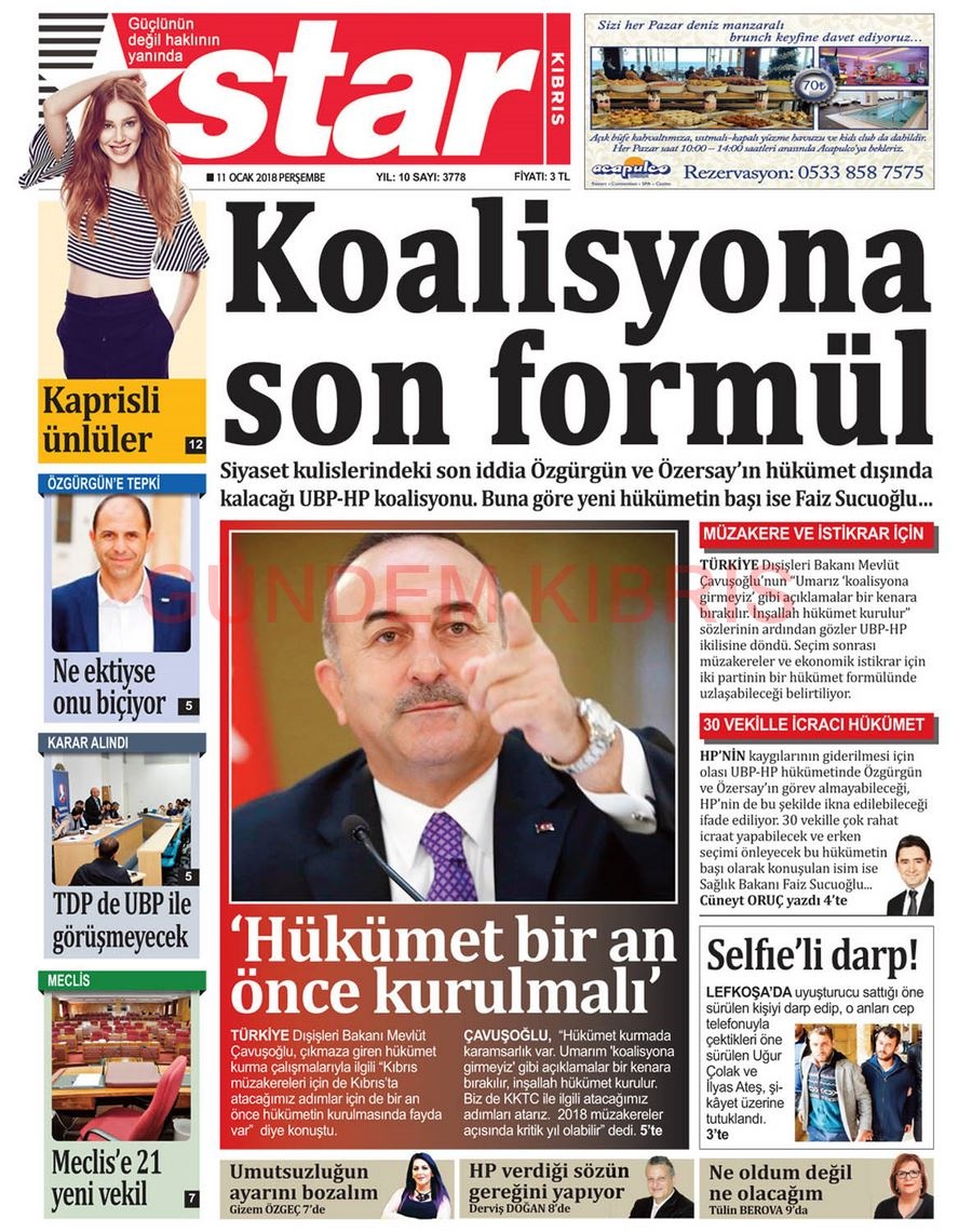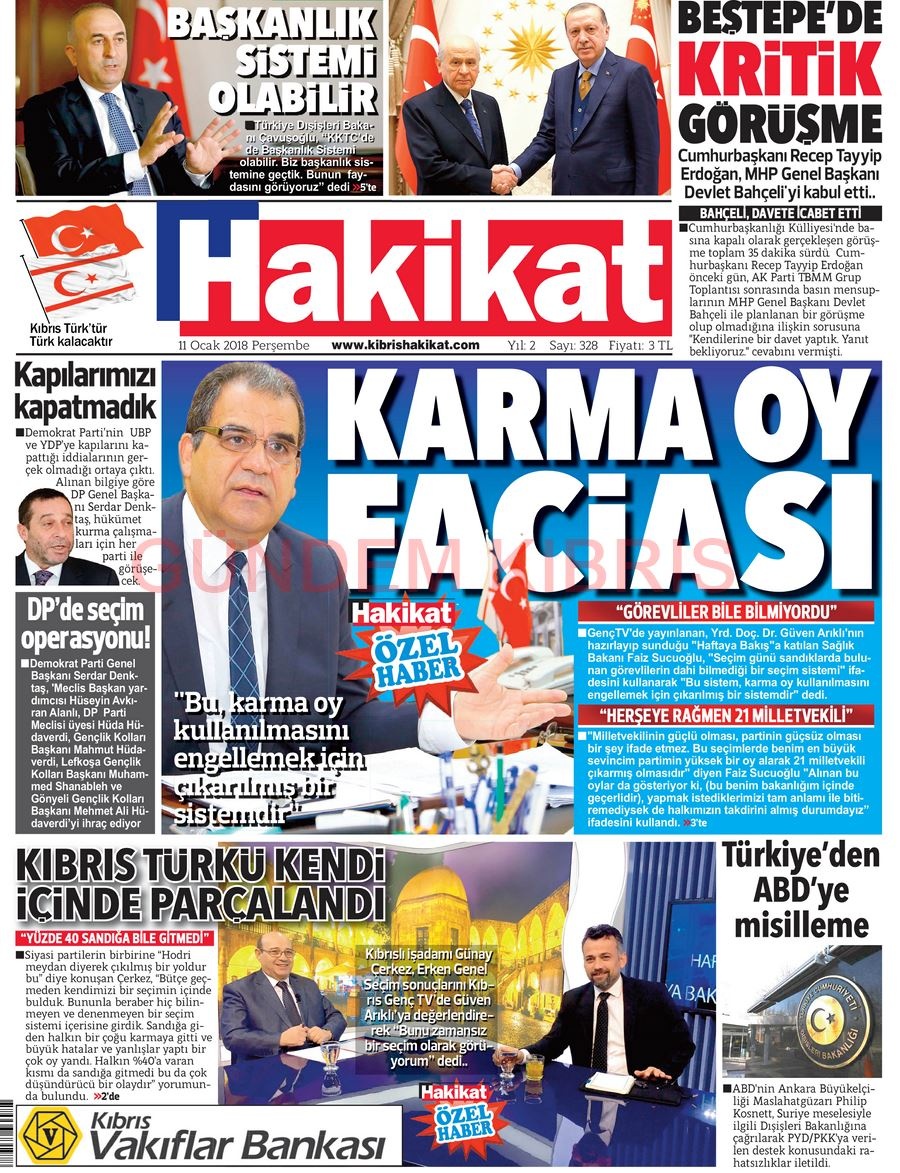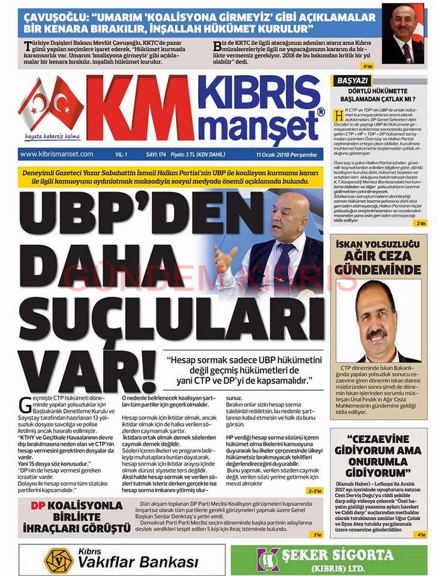 KKTC Gazete Manşetleri 11 Ocak 2018