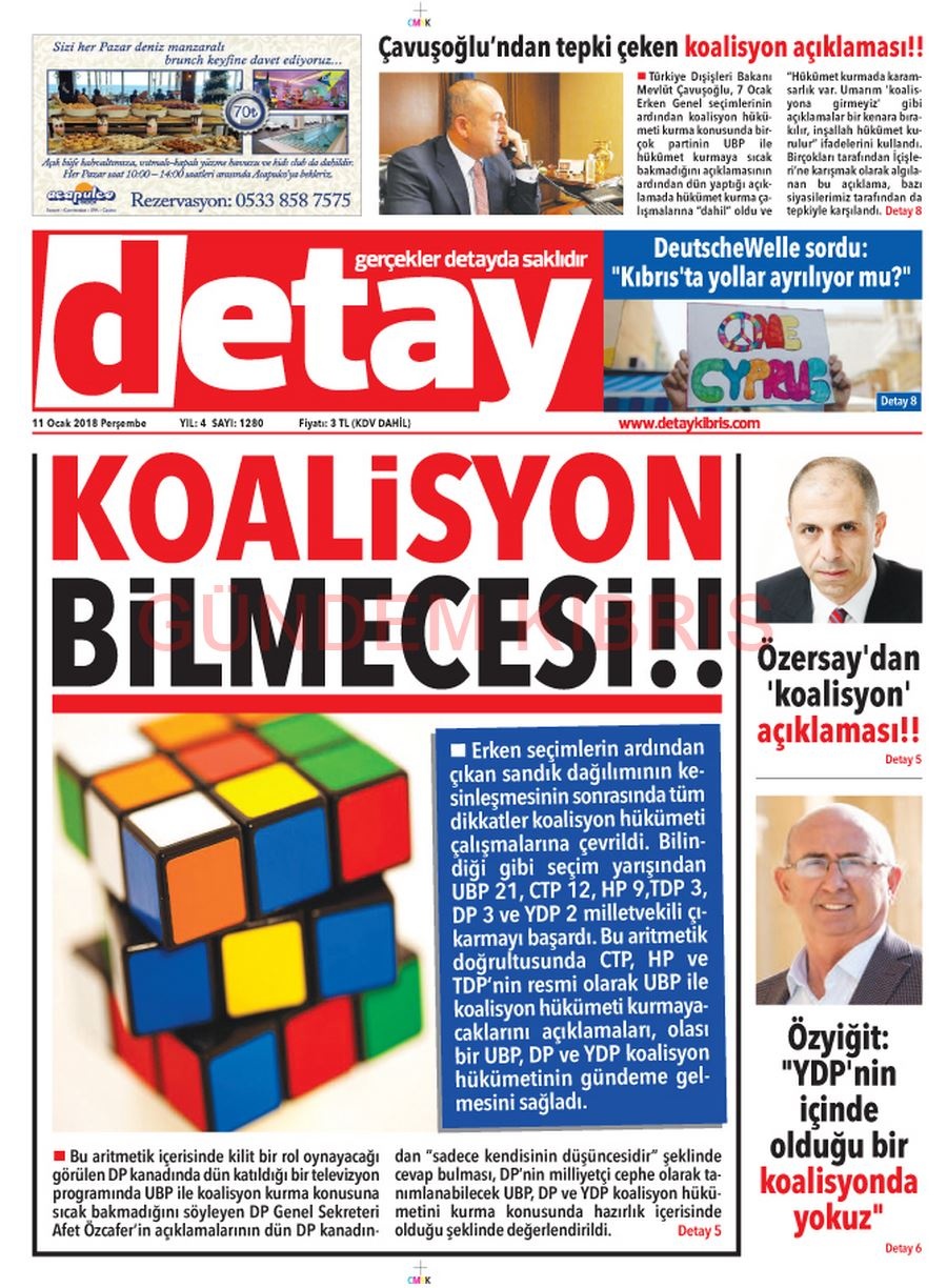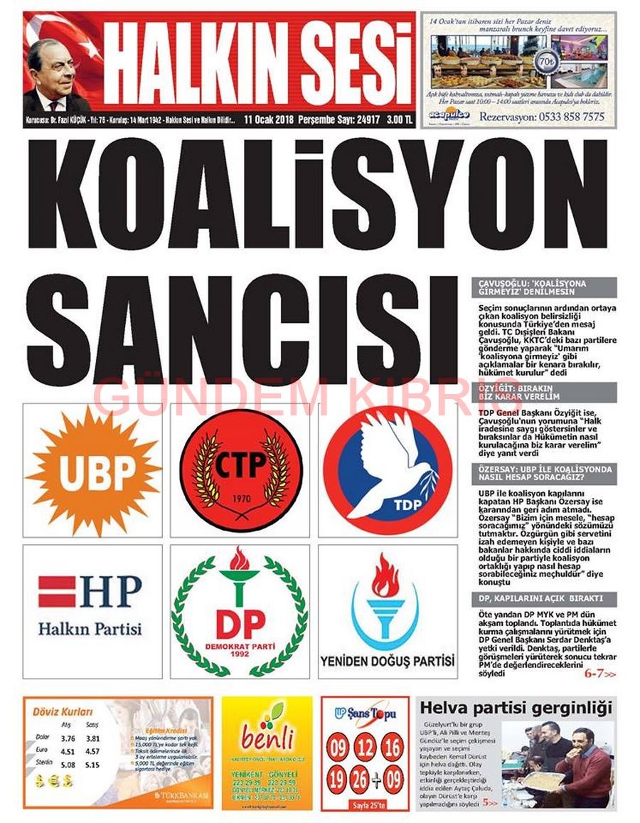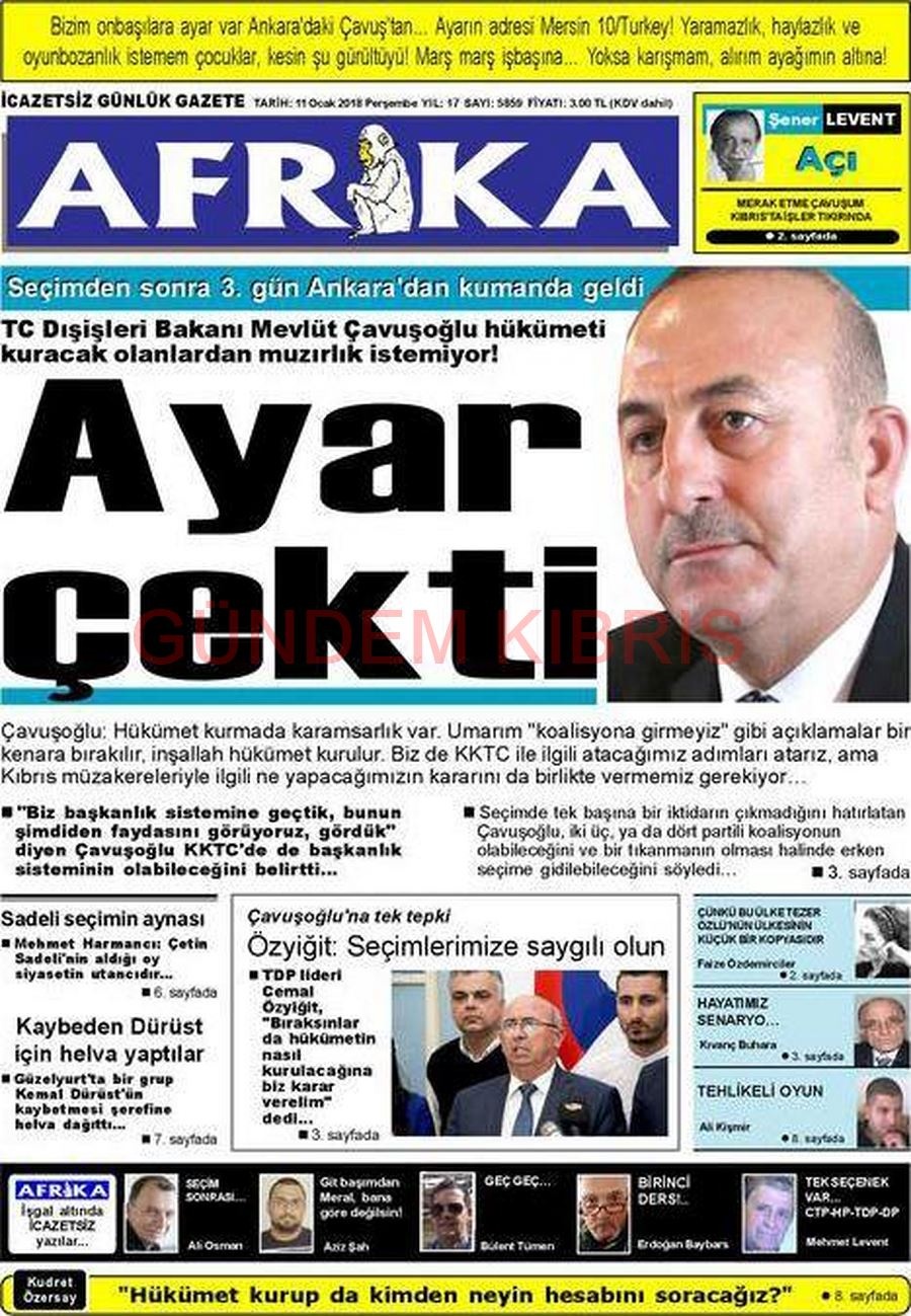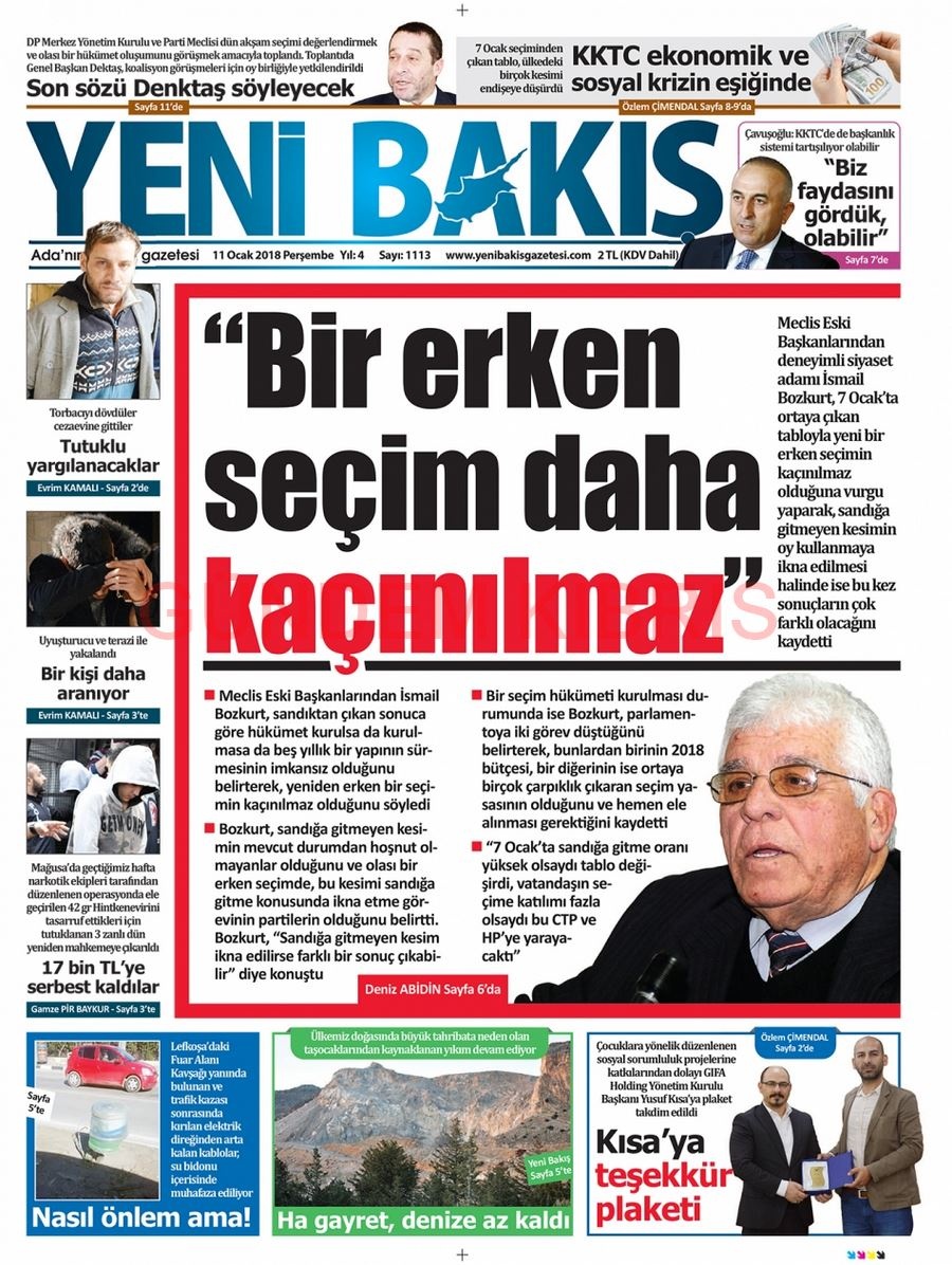 KKTC Gazete Manşetleri 11 Ocak 2018