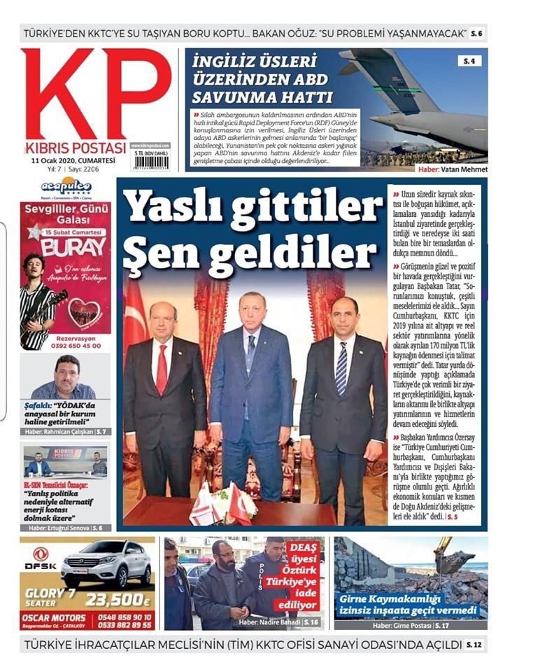 KKTC Gazete Manşetleri - 11 Ocak 2020