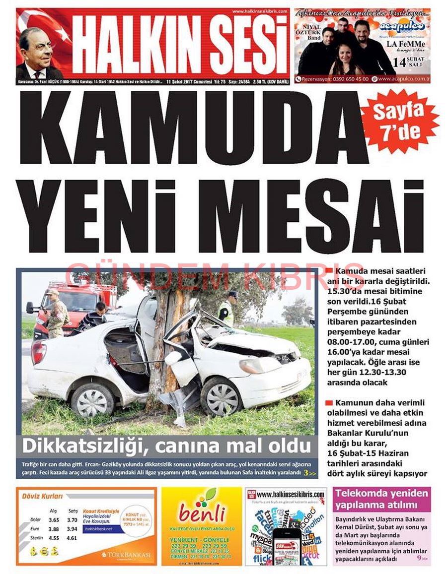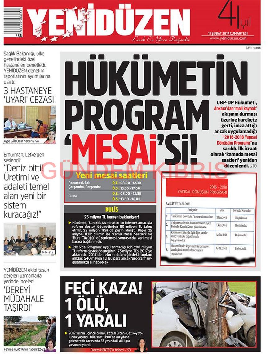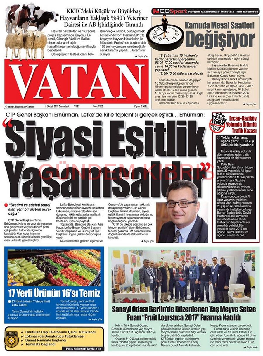 KKTC Gazete Manşetleri 11 Şubat 2017