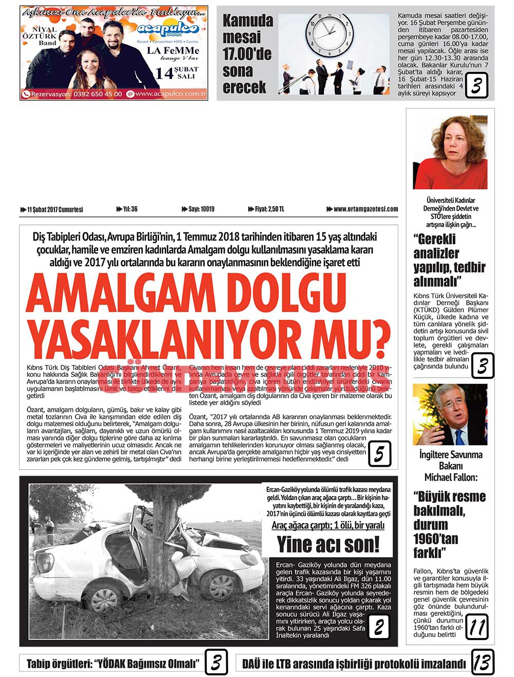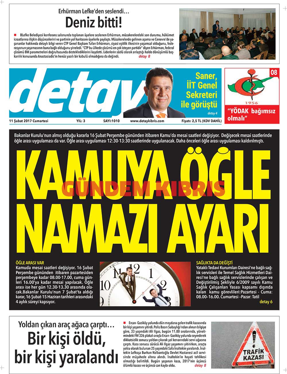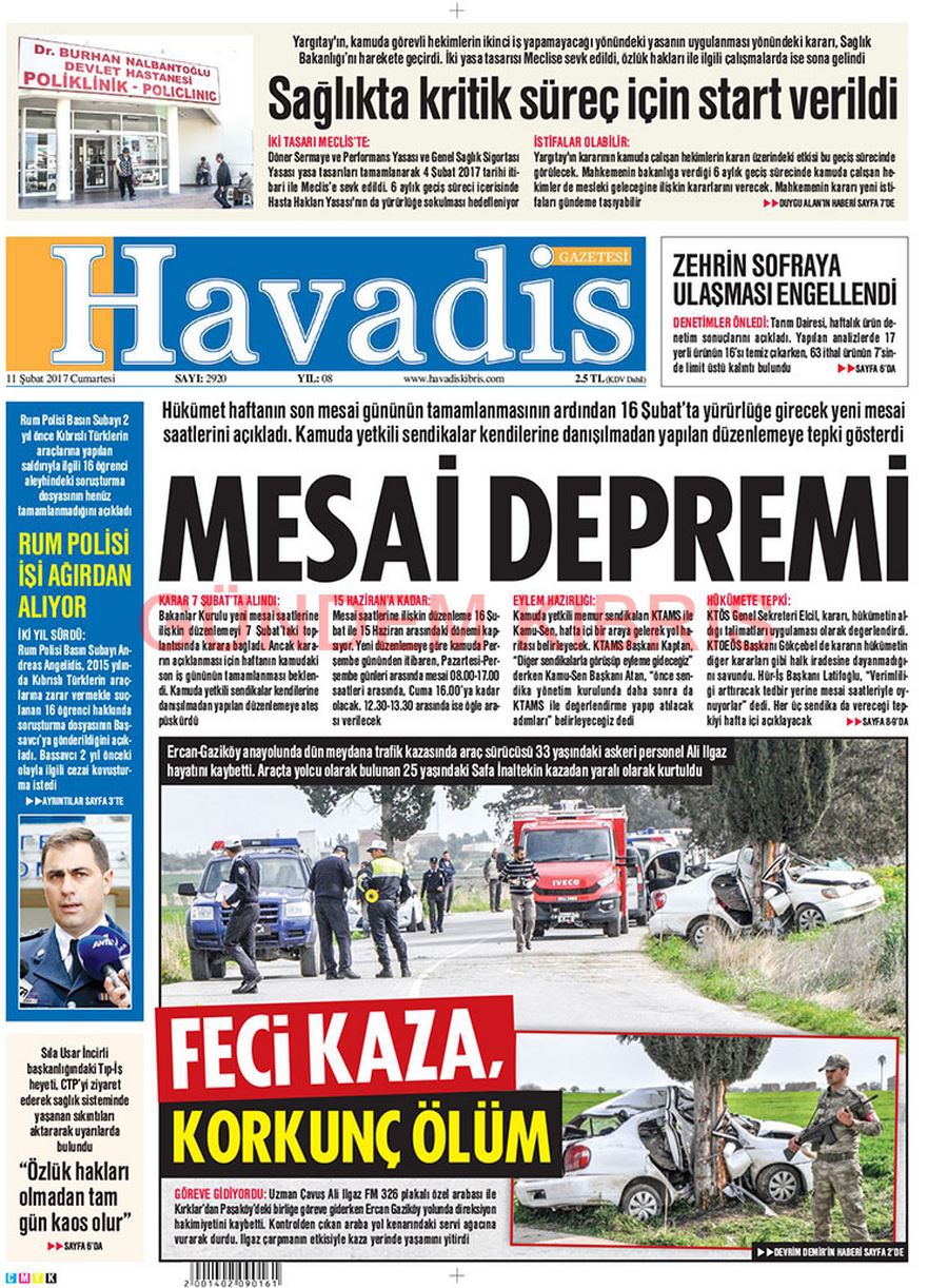 KKTC Gazete Manşetleri 11 Şubat 2017