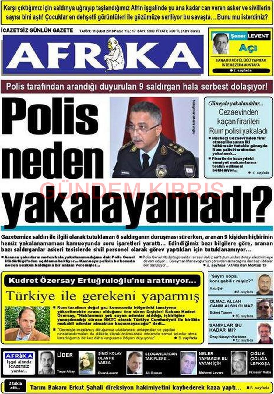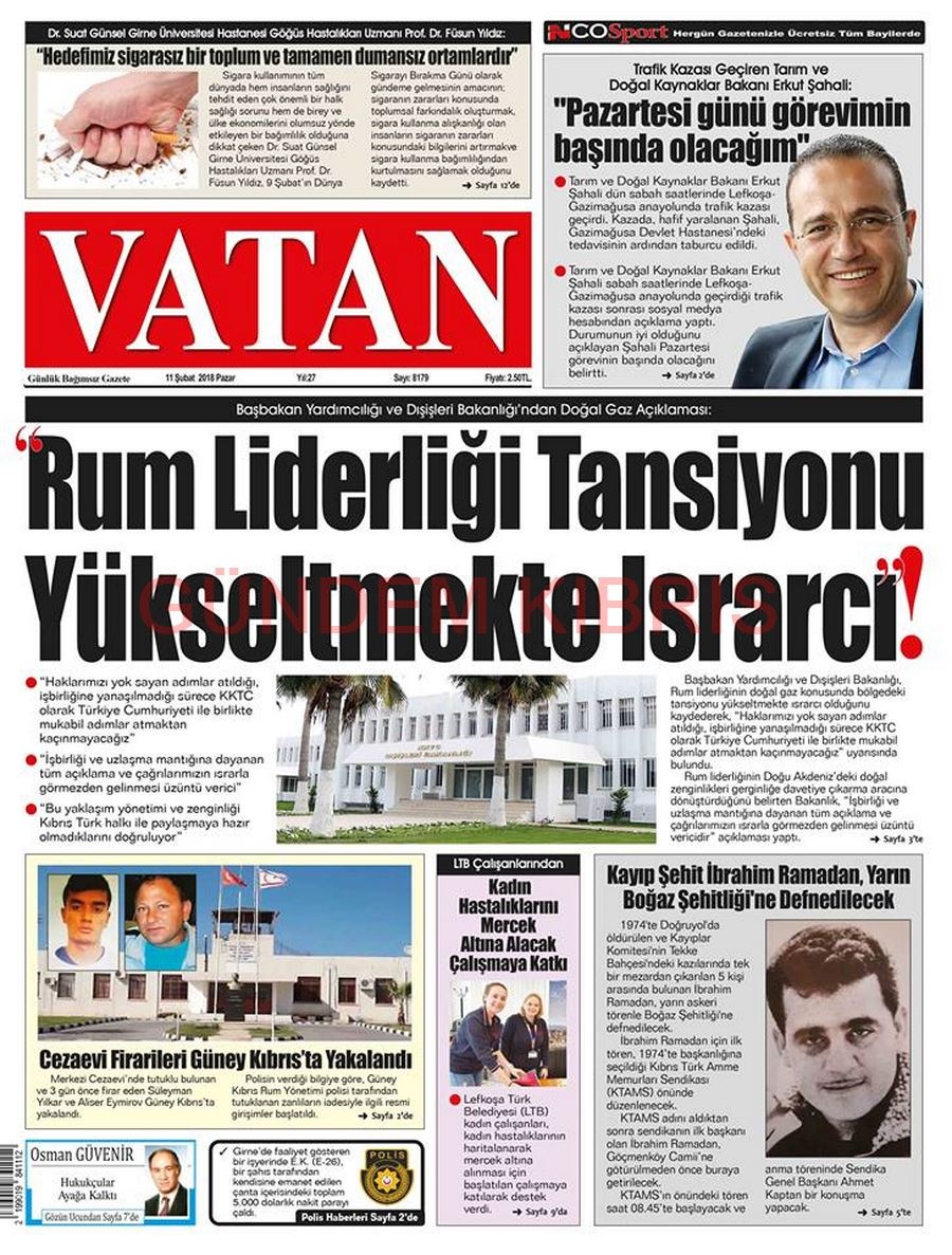 KKTC Gazete Manşetleri 11 Şubat 2018