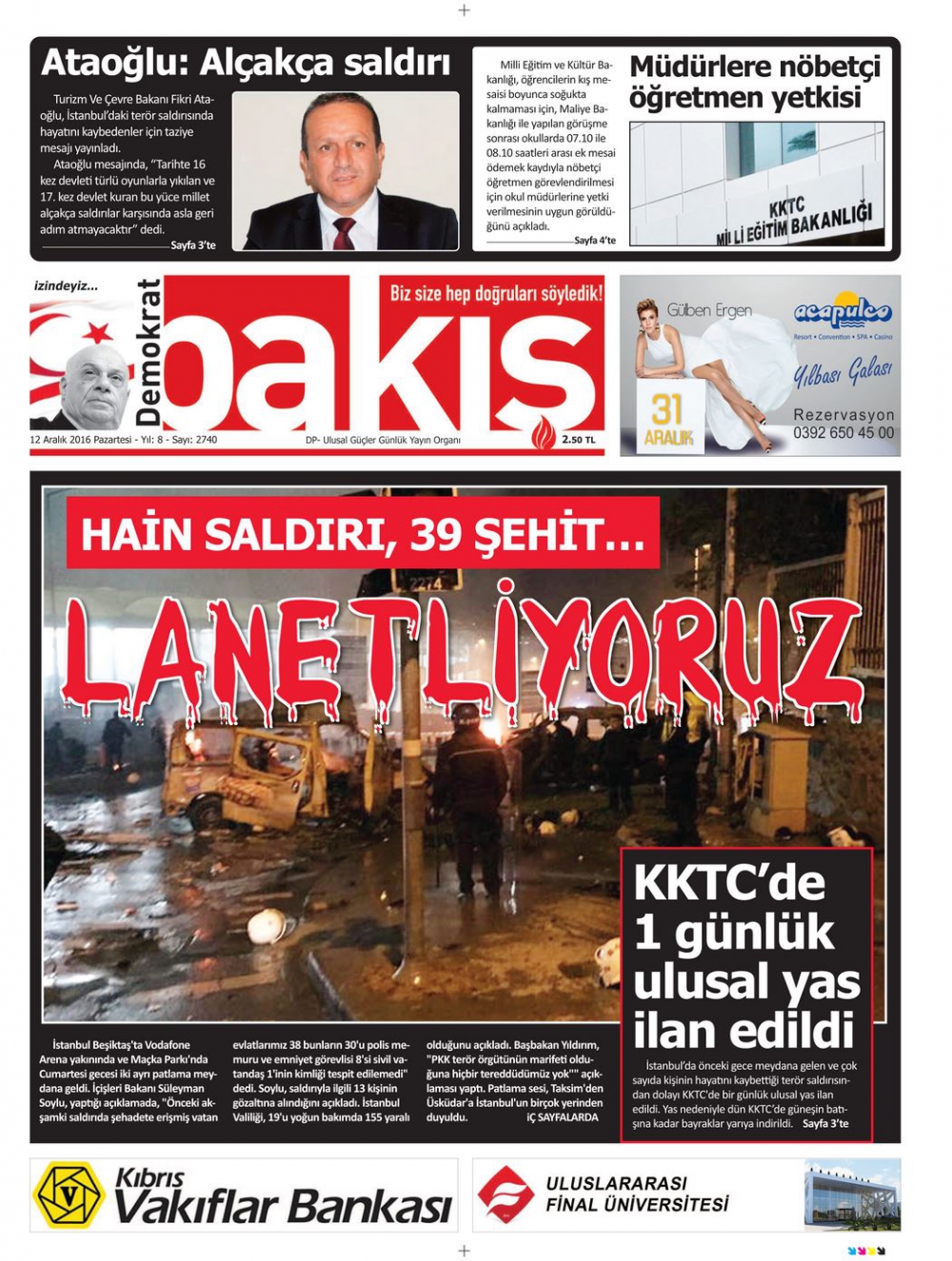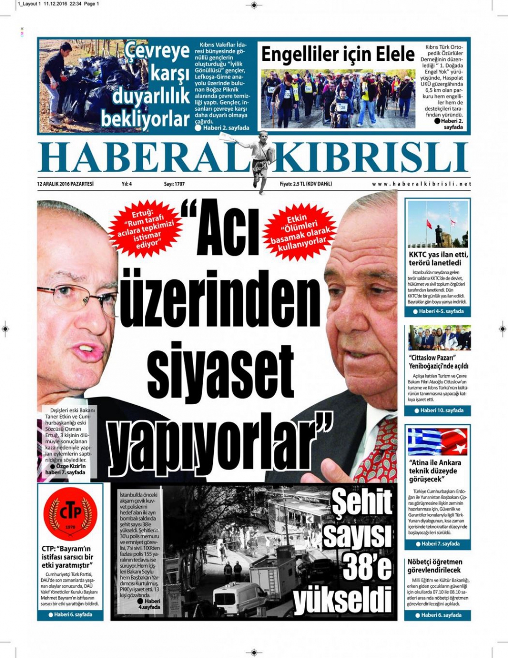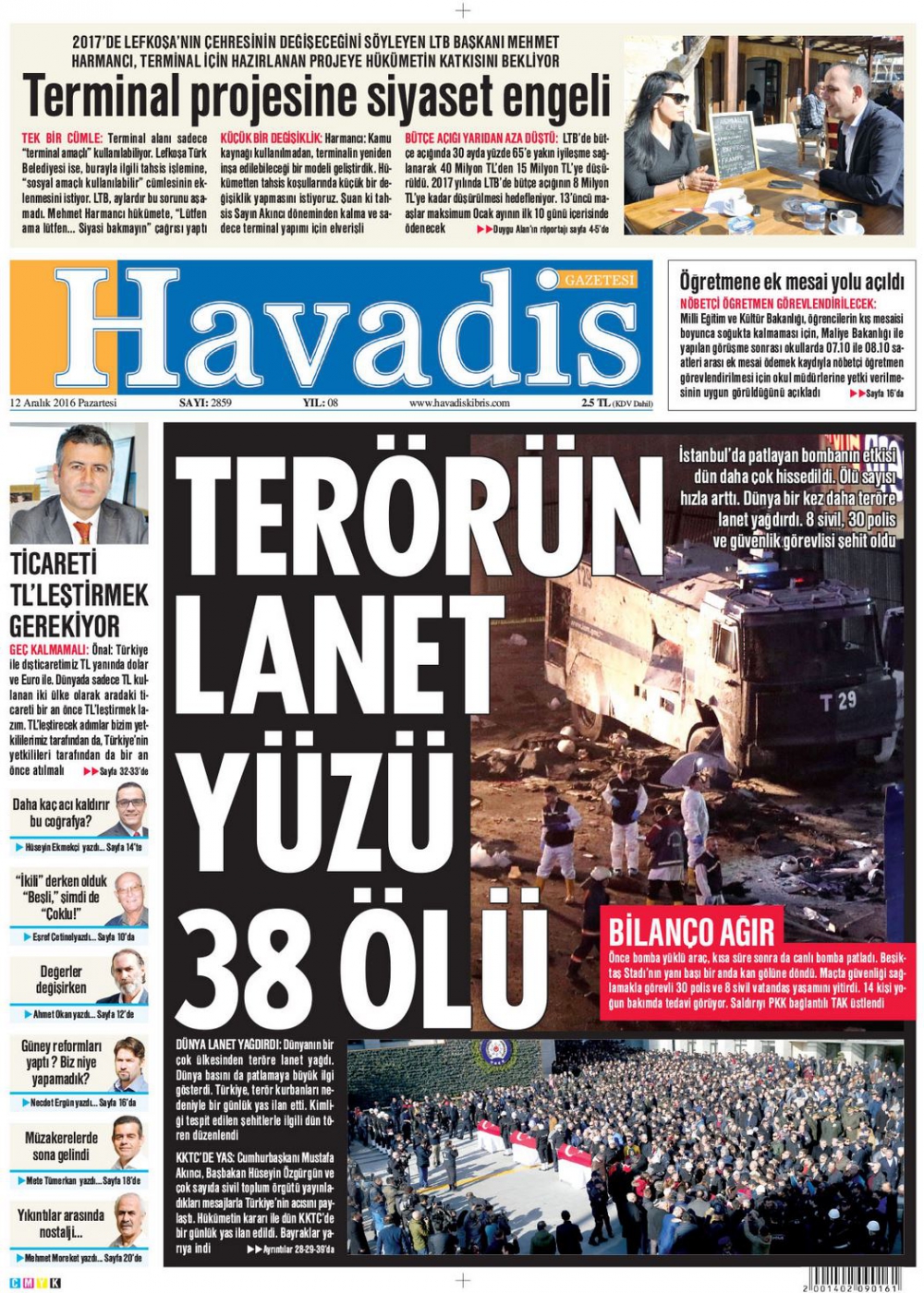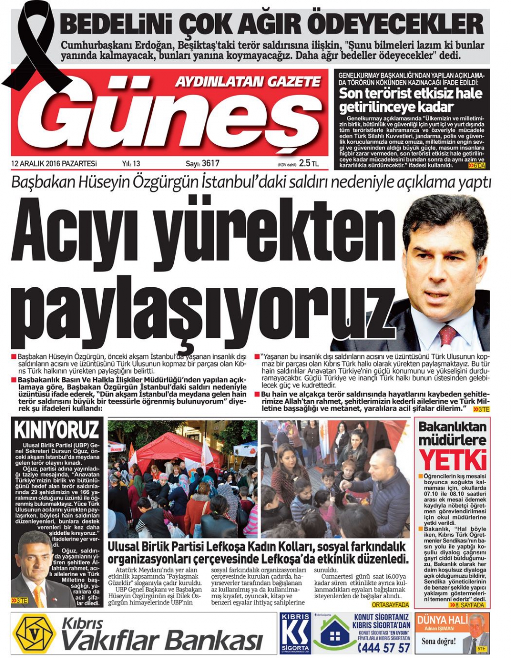 KKTC Gazete Manşetleri 12 Aralık 2016