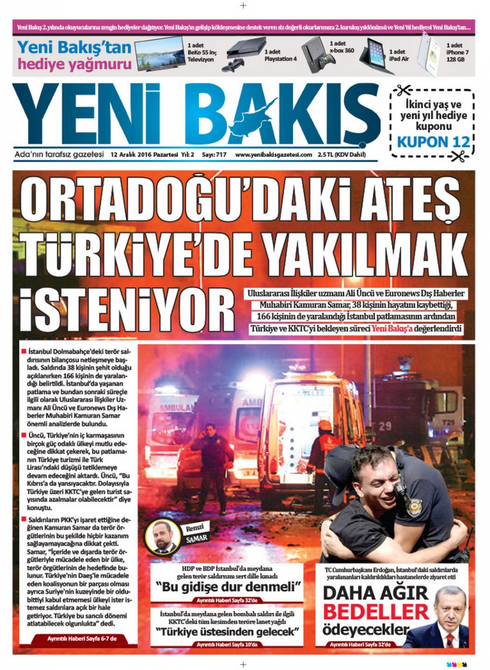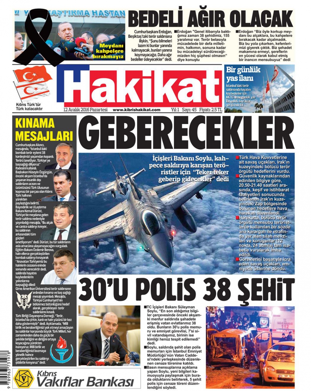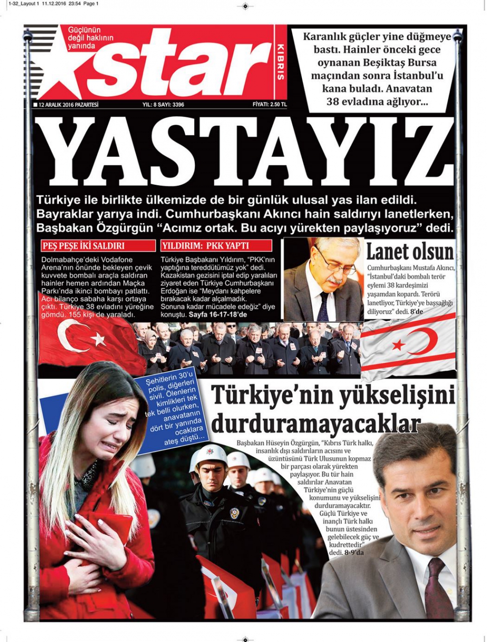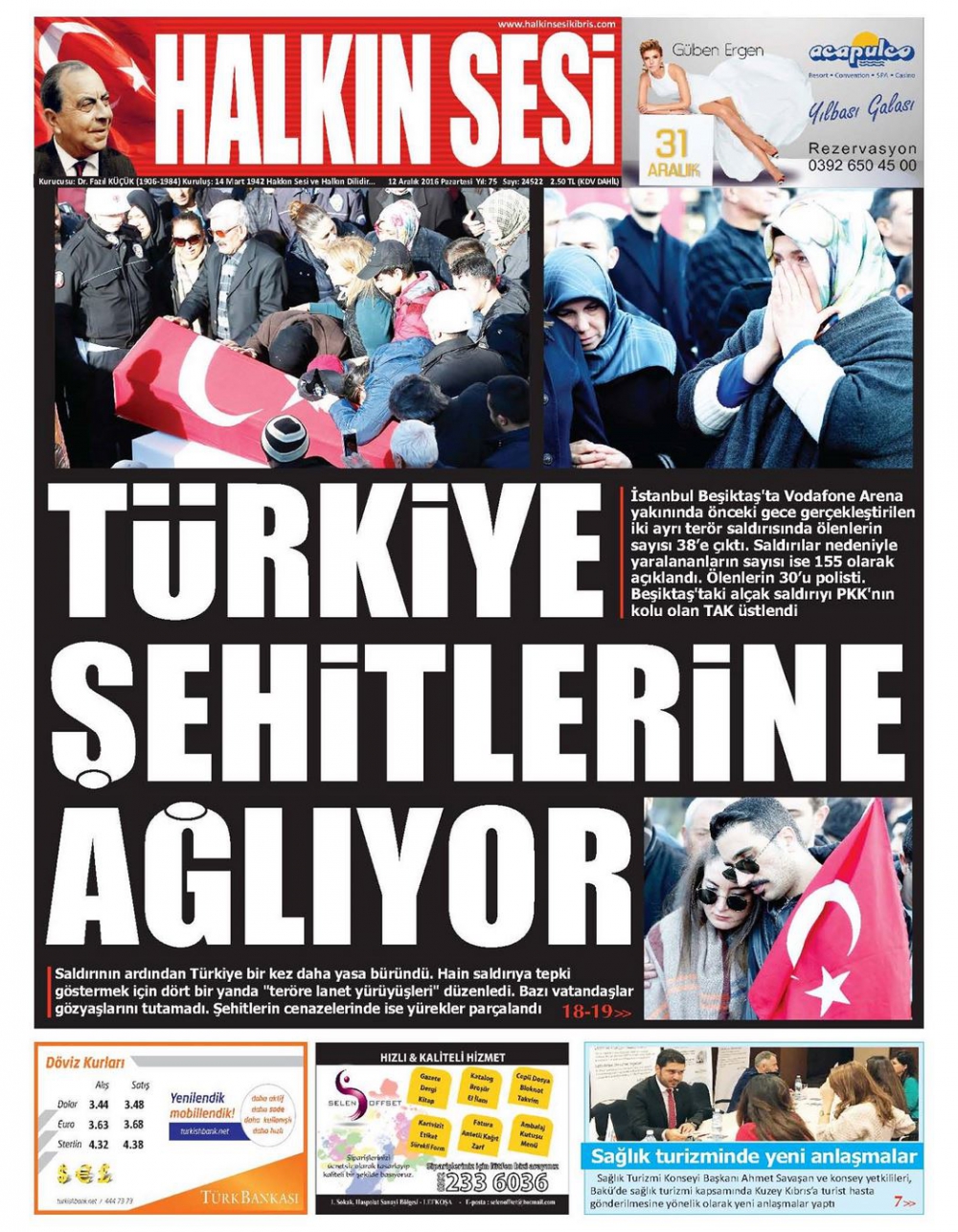 KKTC Gazete Manşetleri 12 Aralık 2016