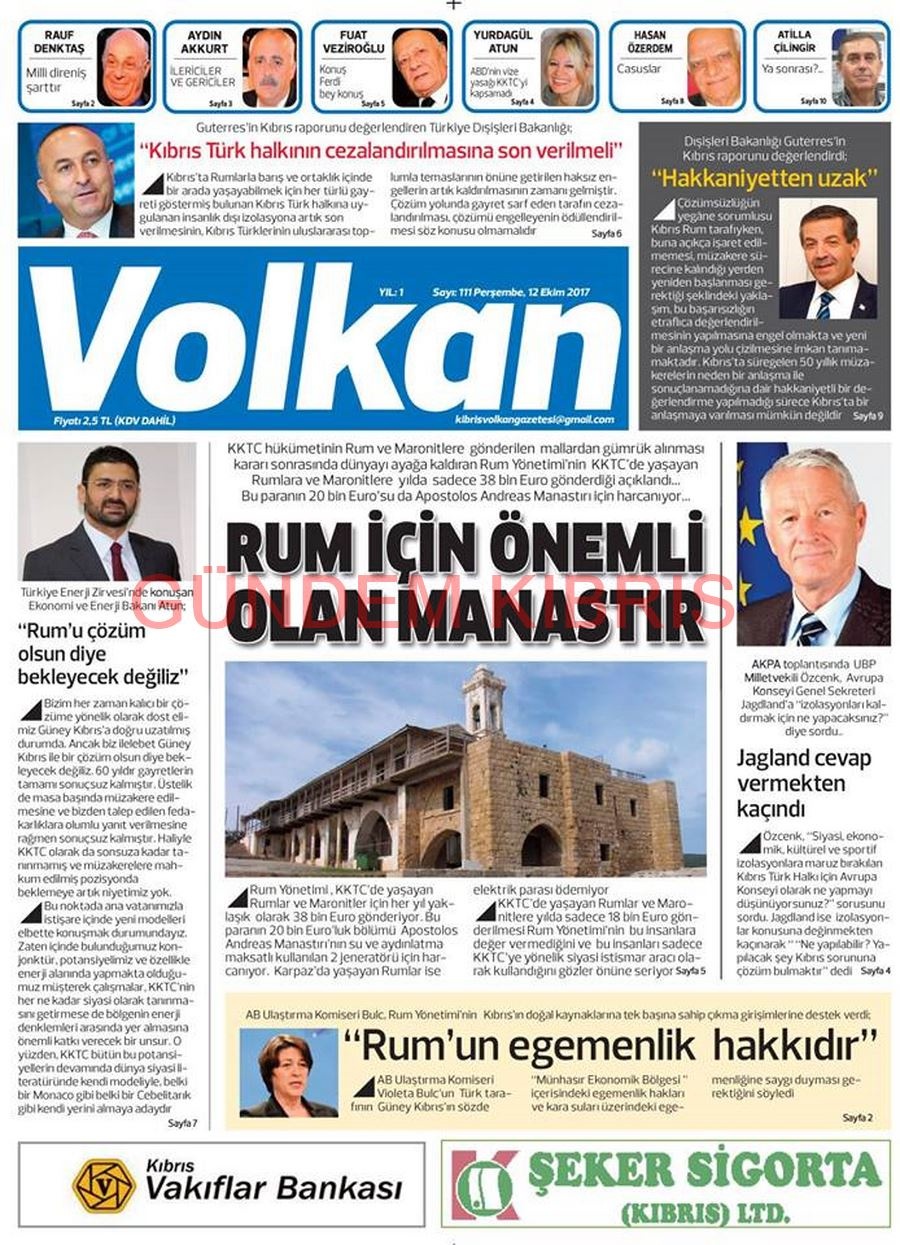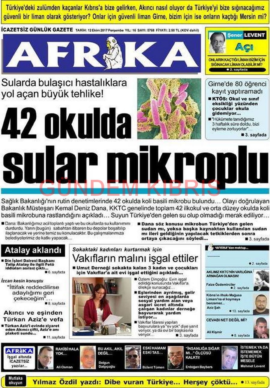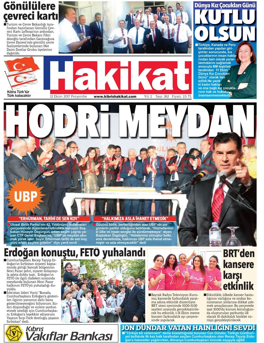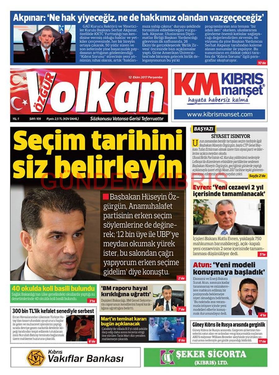 KKTC Gazete Manşetleri 12 Ekim 2017