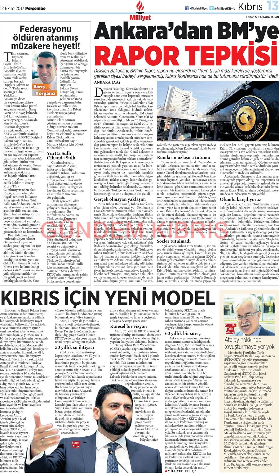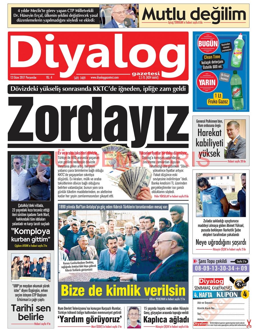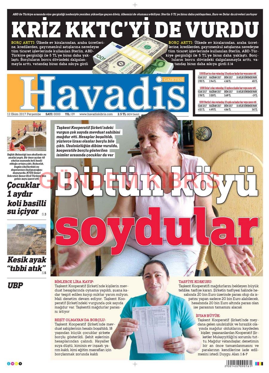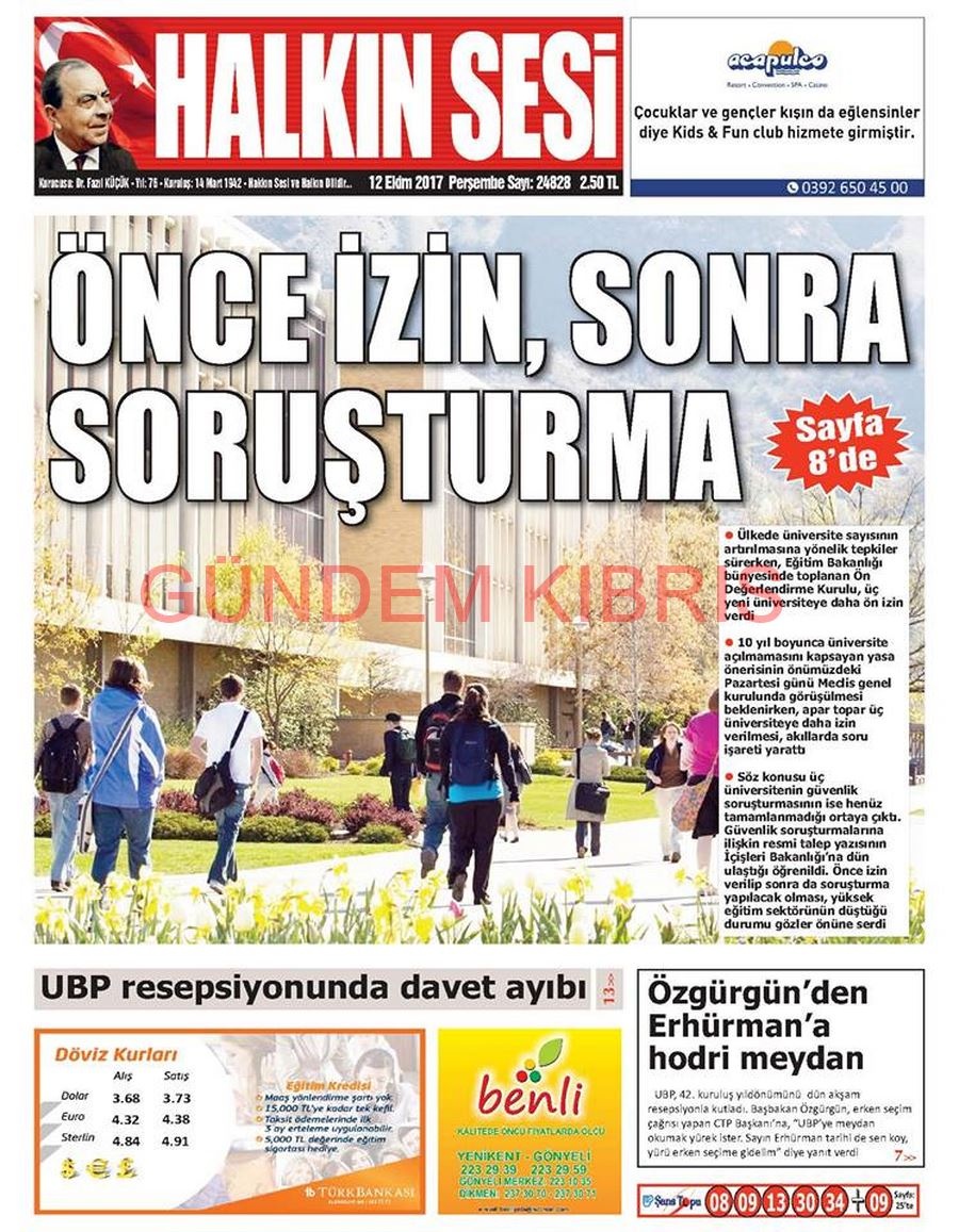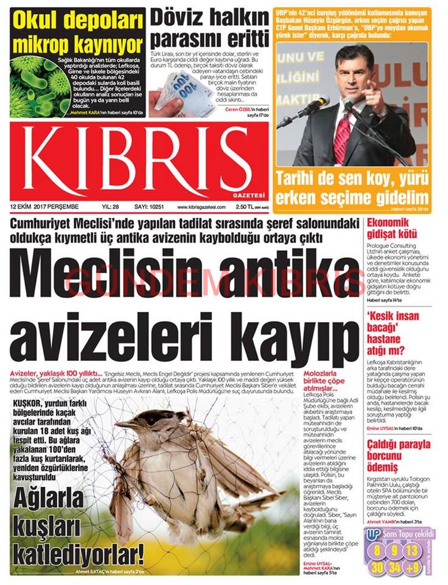 KKTC Gazete Manşetleri 12 Ekim 2017