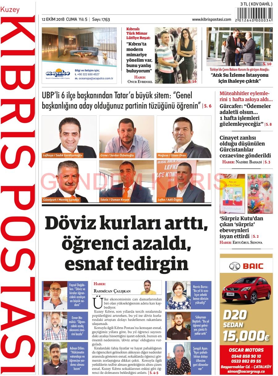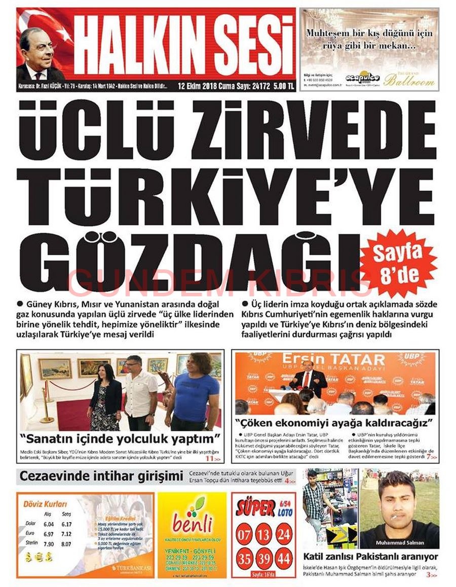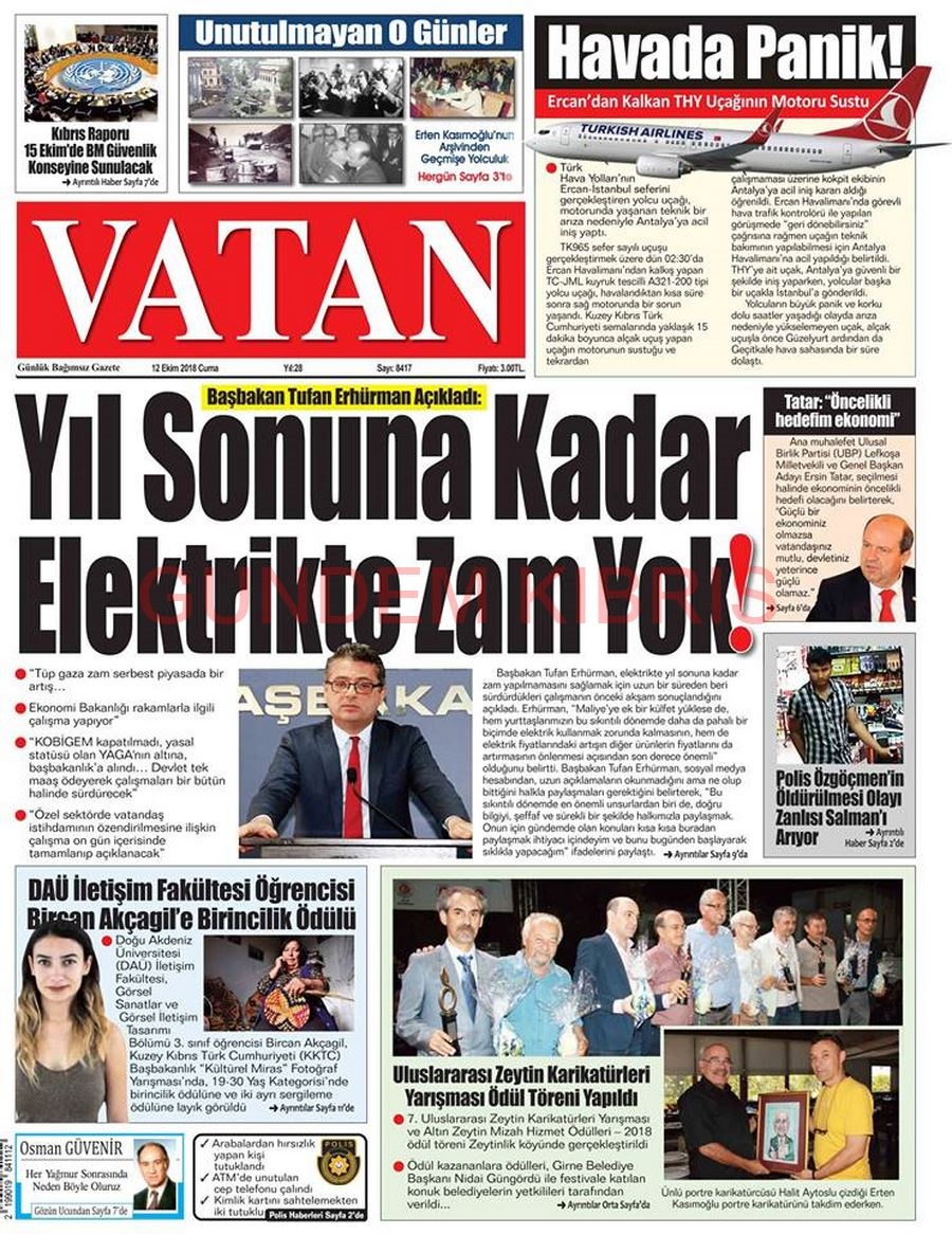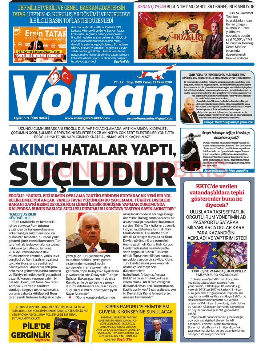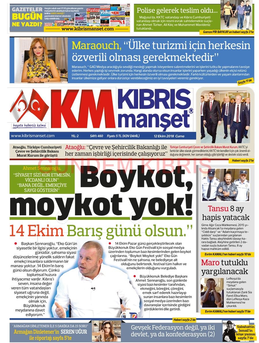 KKTC Gazete Manşetleri 12 Ekim 2018
