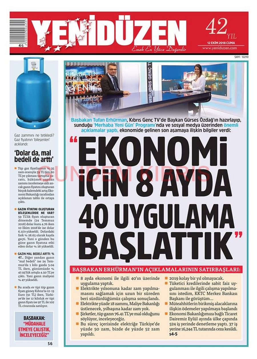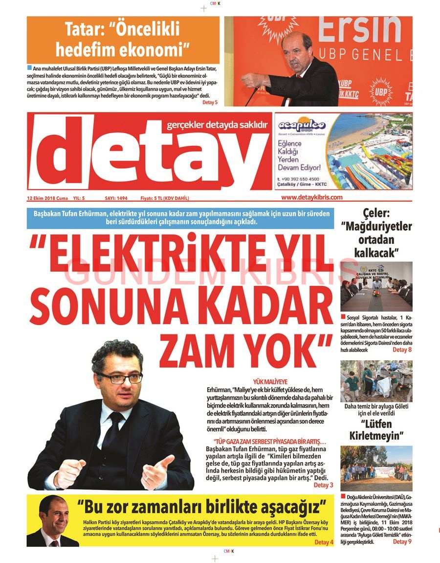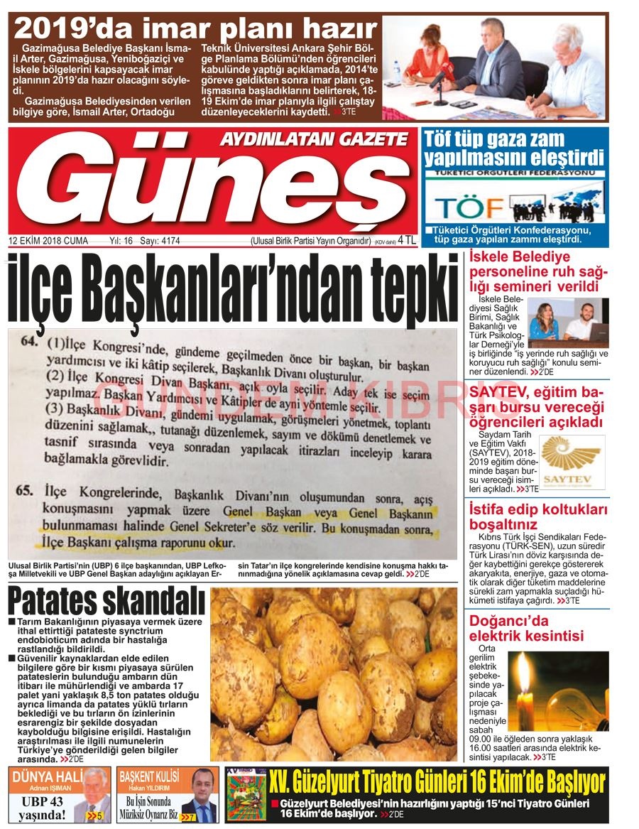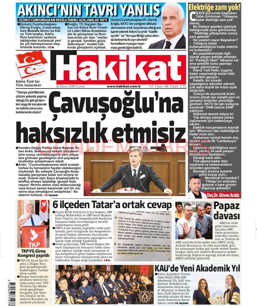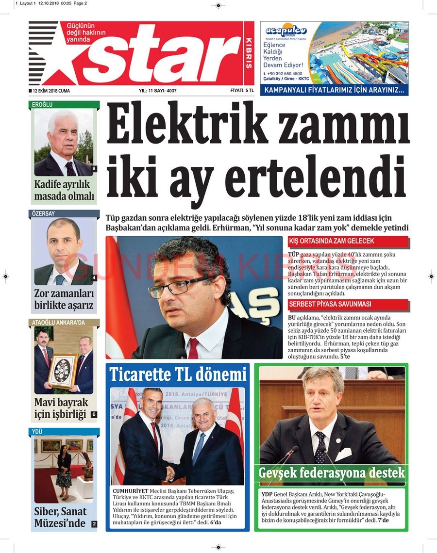 KKTC Gazete Manşetleri 12 Ekim 2018