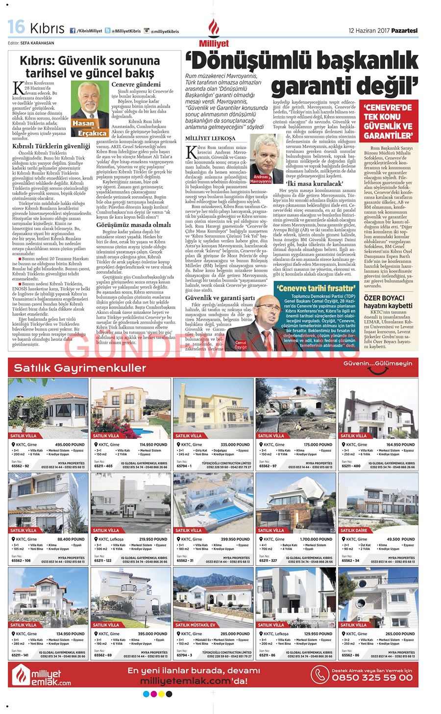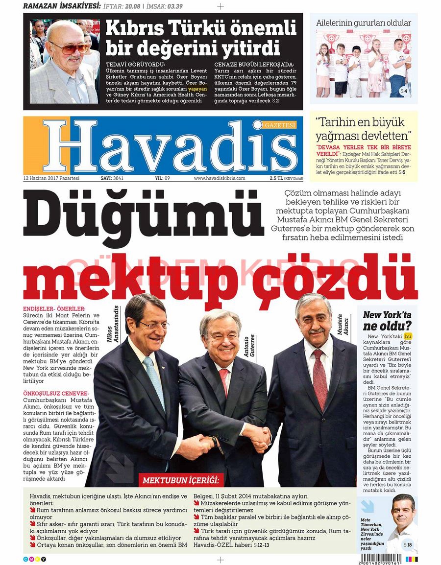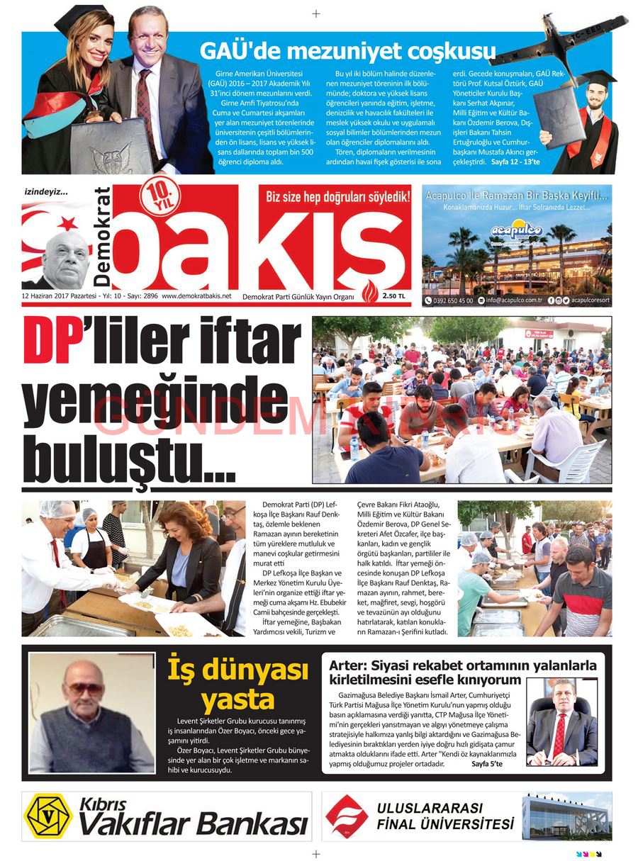 KKTC Gazete Manşetleri 12 Haziran 2017