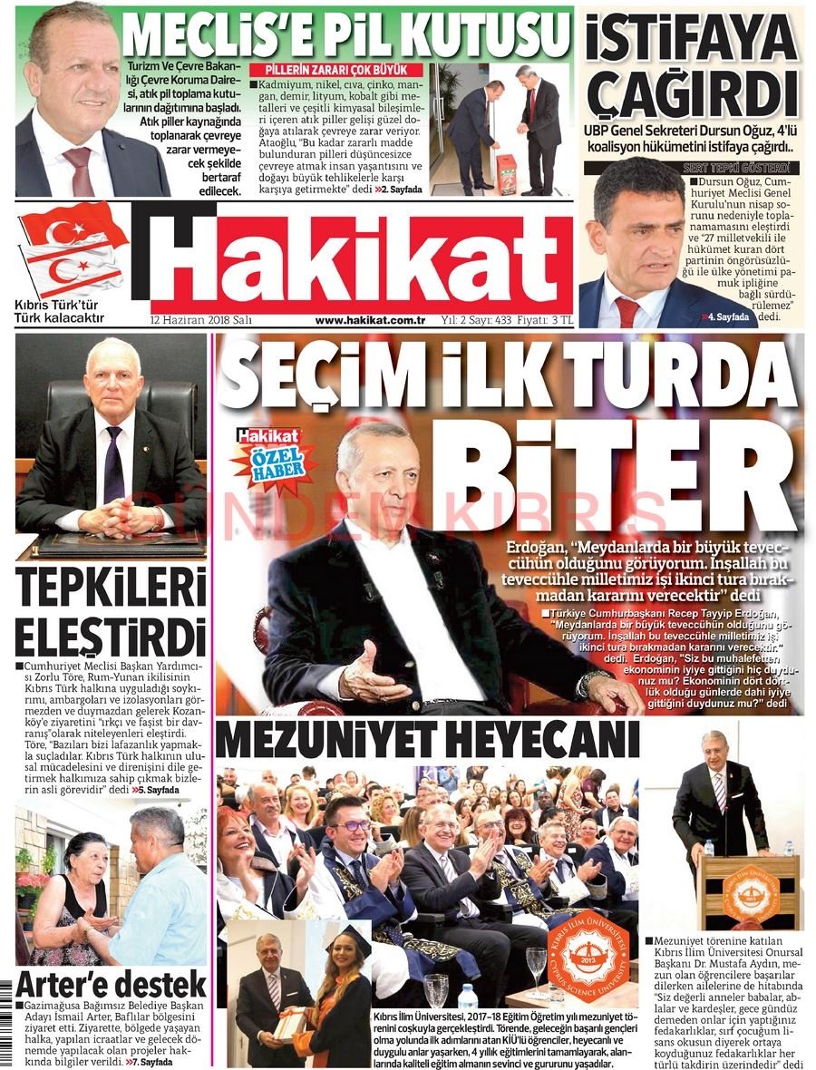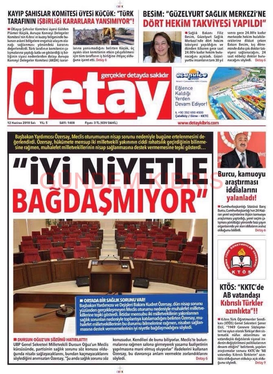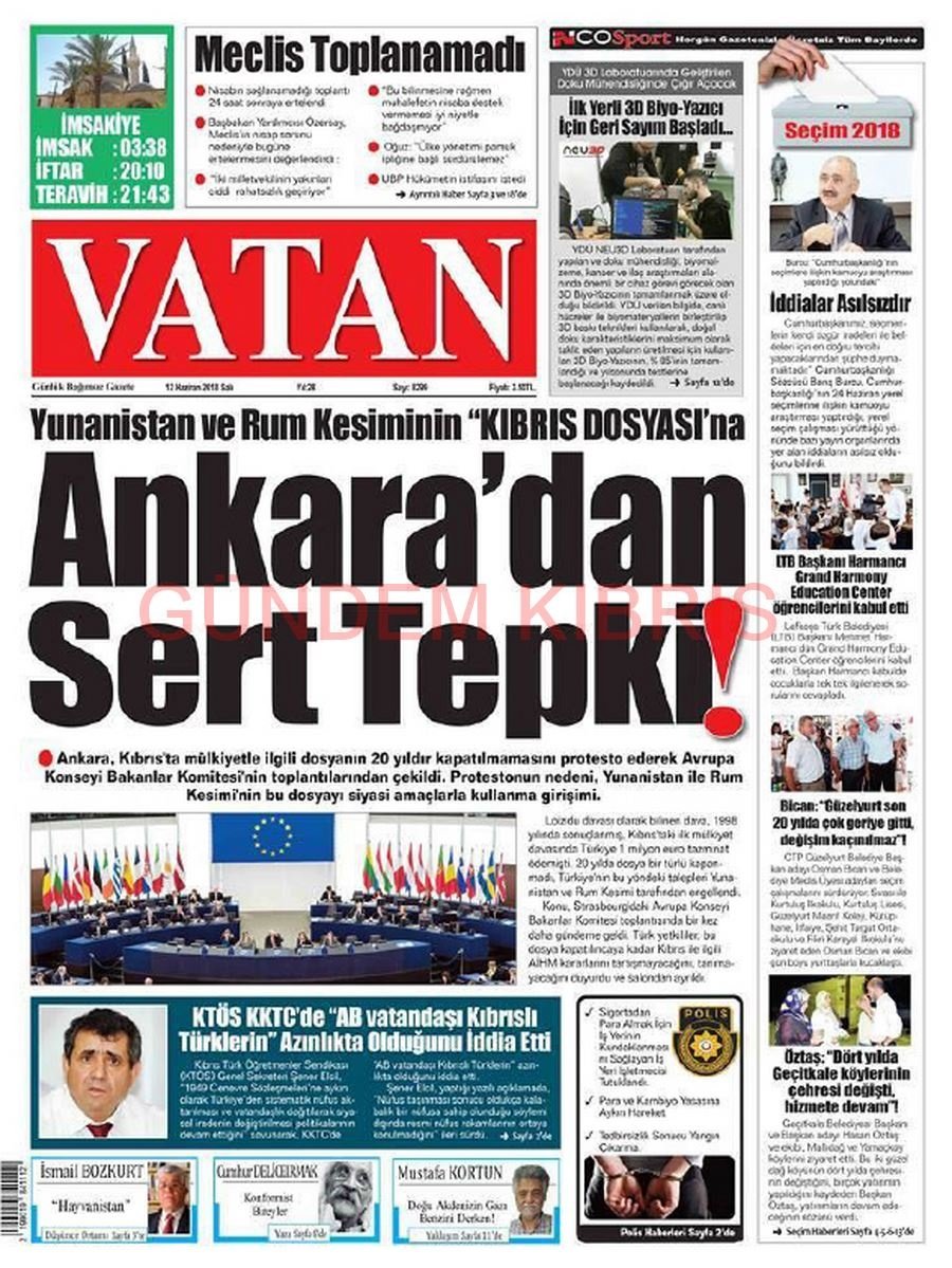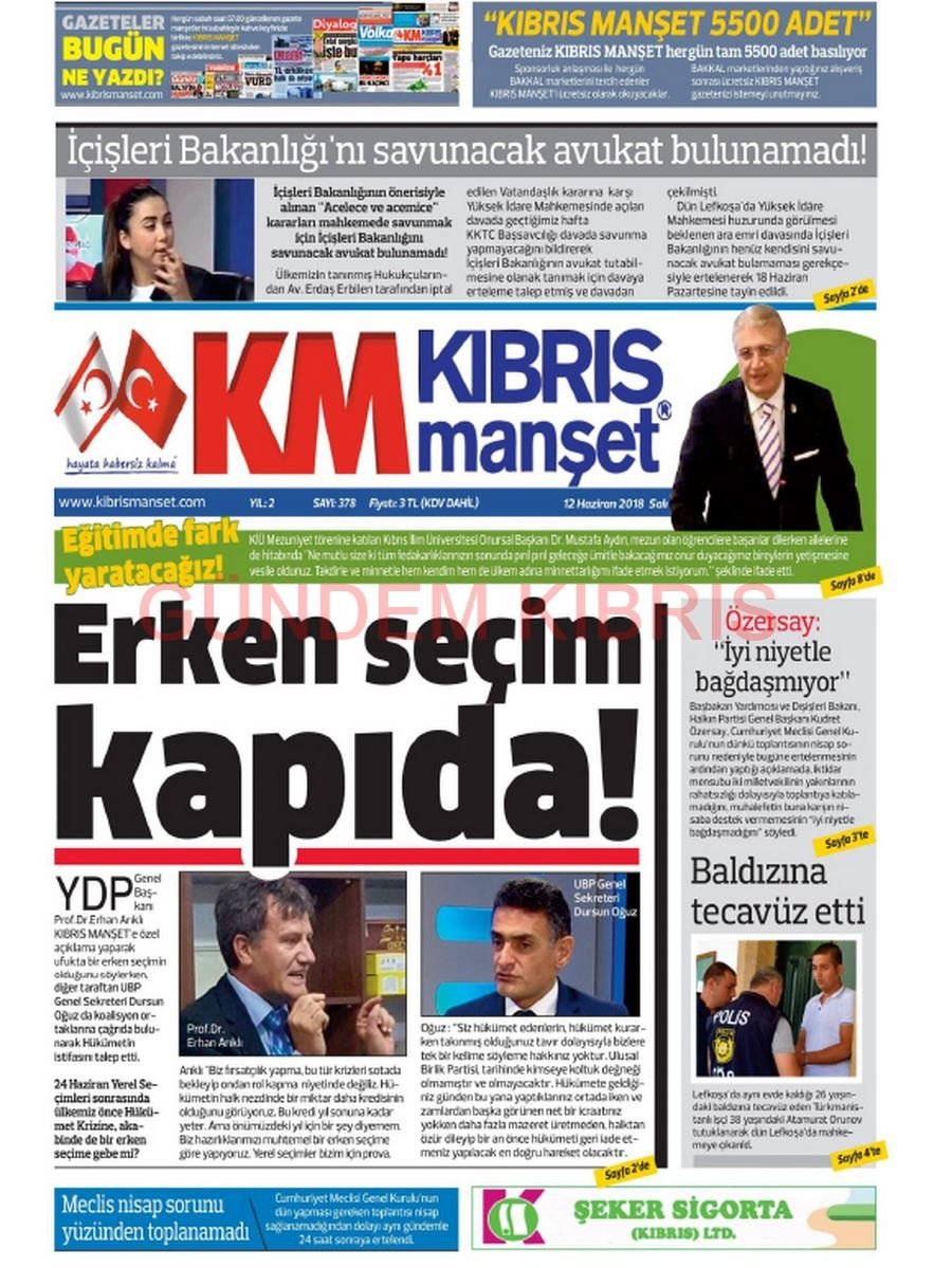 KKTC Gazete Manşetleri 12 Haziran 2018