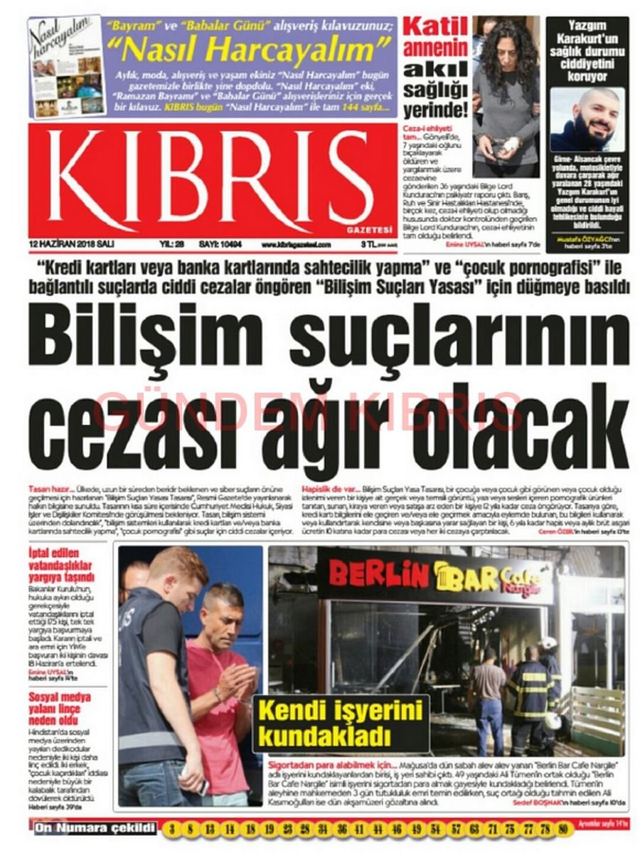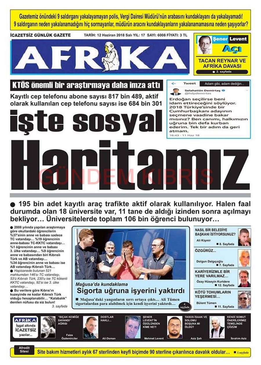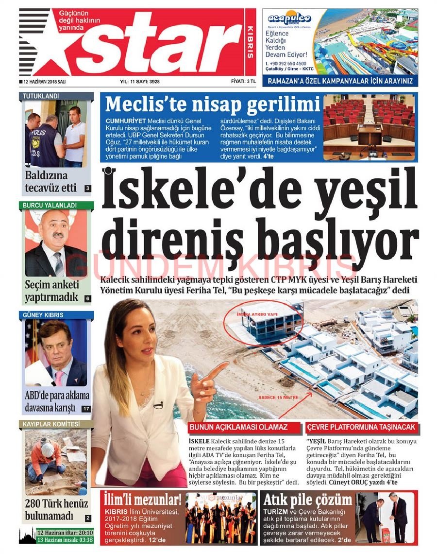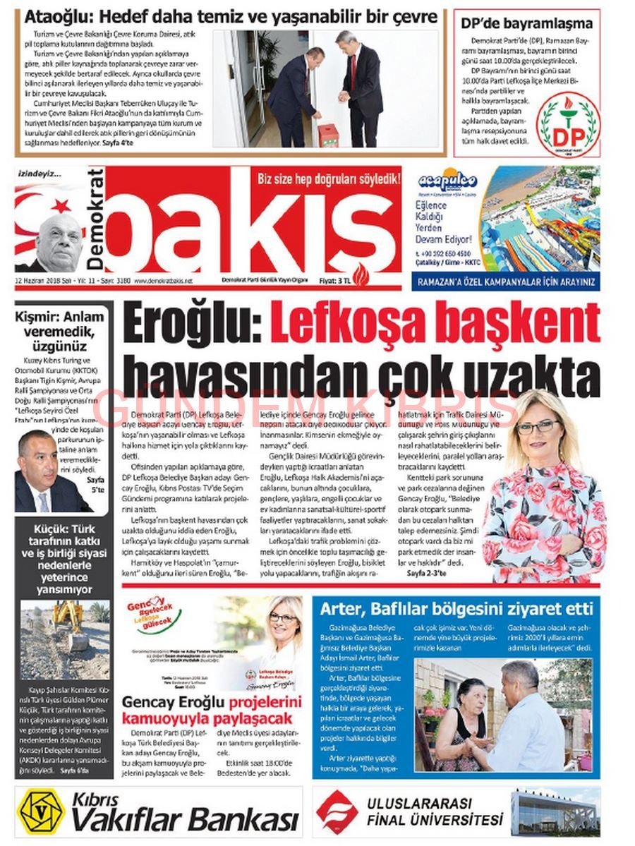 KKTC Gazete Manşetleri 12 Haziran 2018