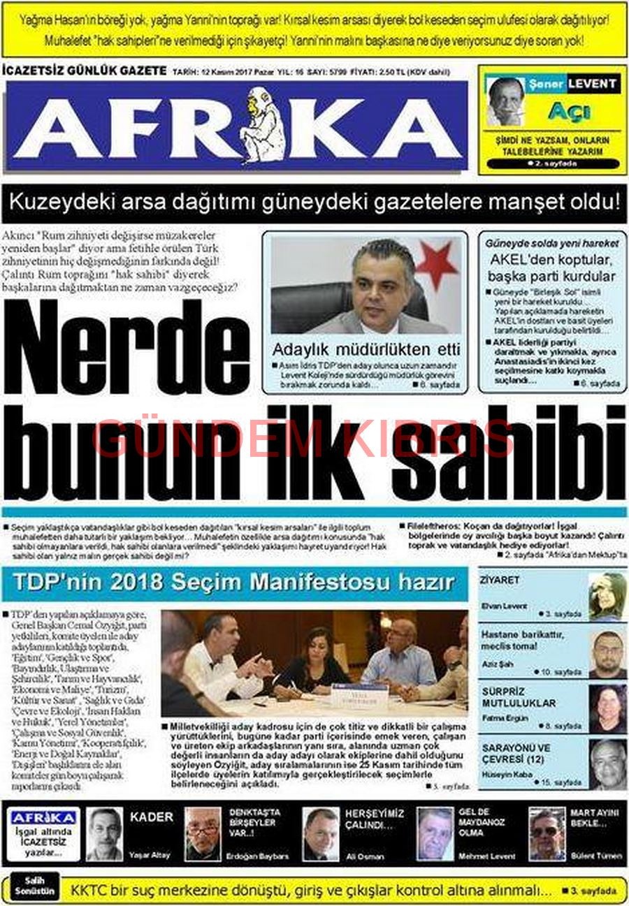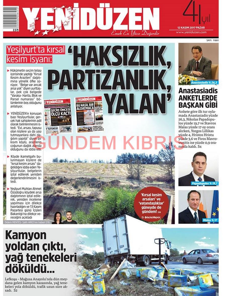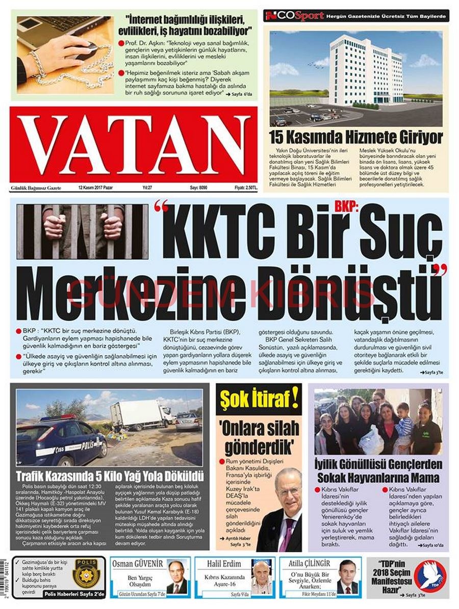 KKTC Gazete Manşetleri 12 Kasım 2017