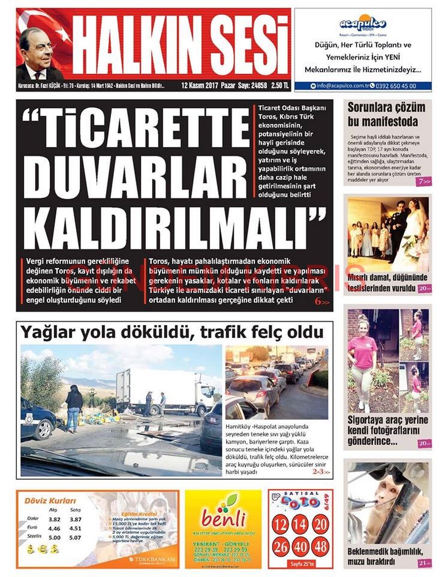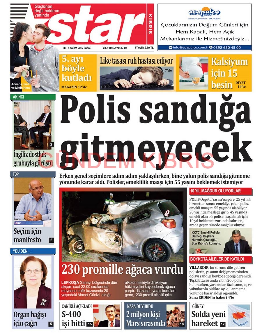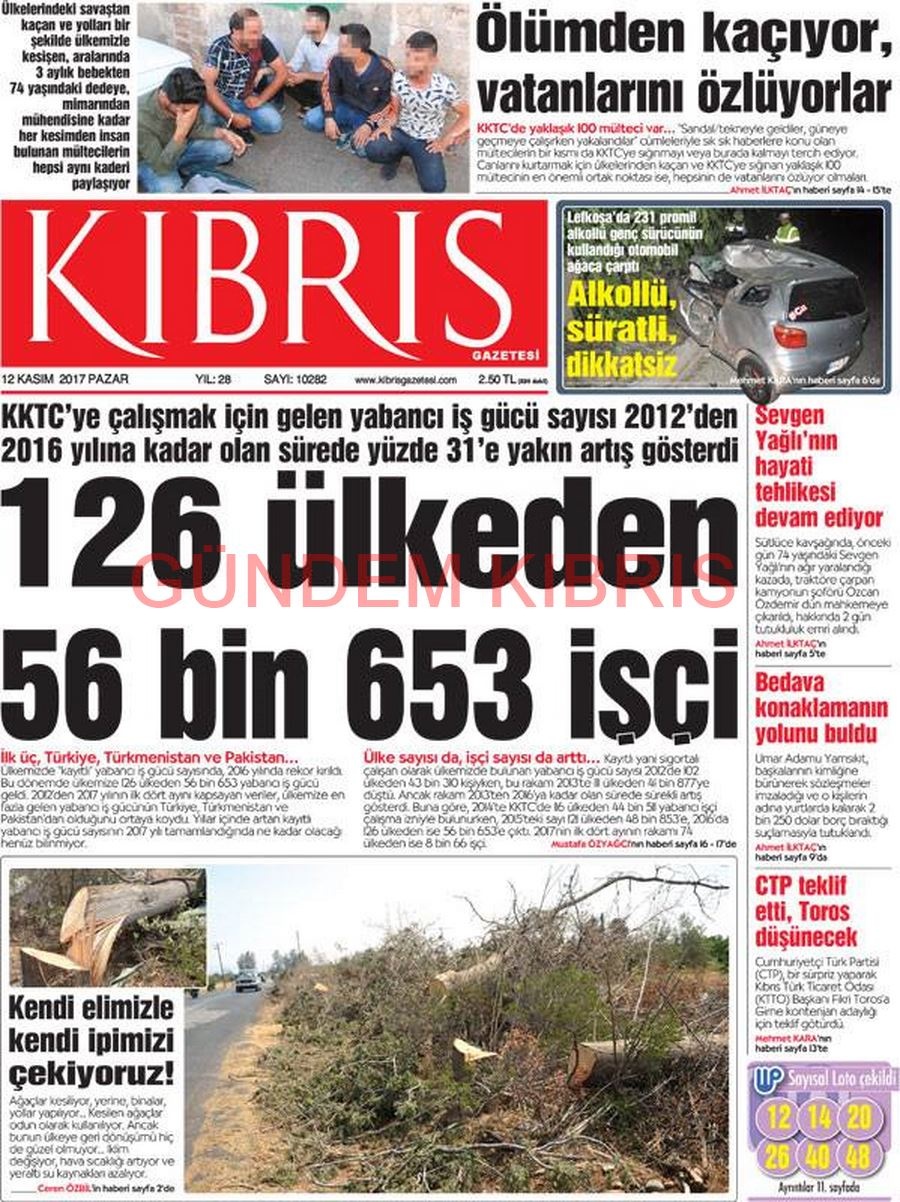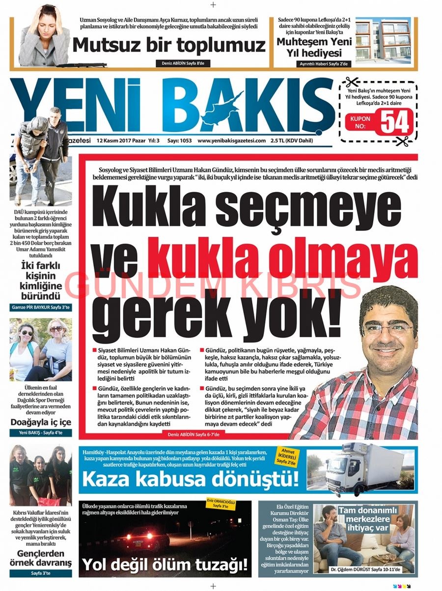 KKTC Gazete Manşetleri 12 Kasım 2017