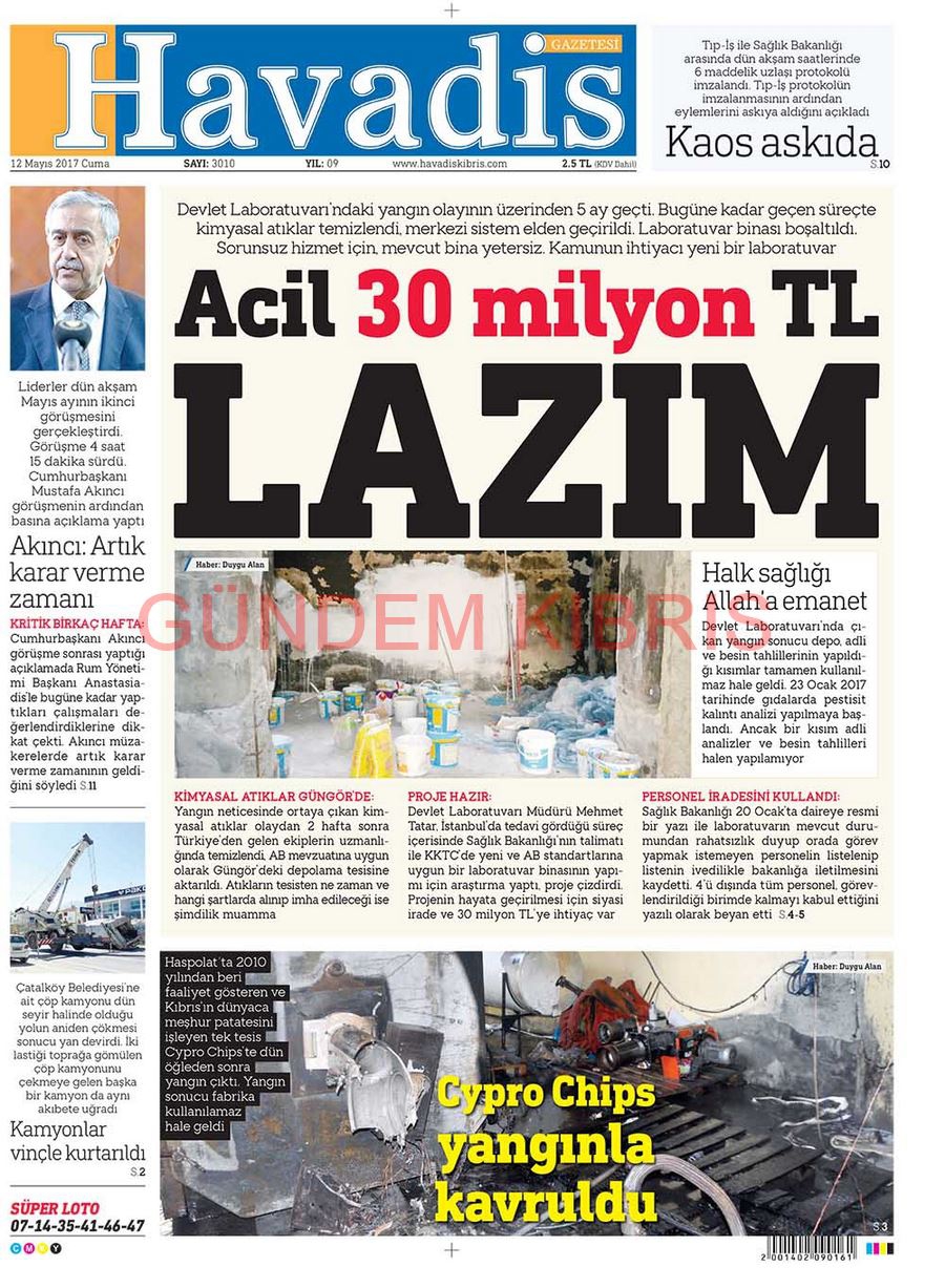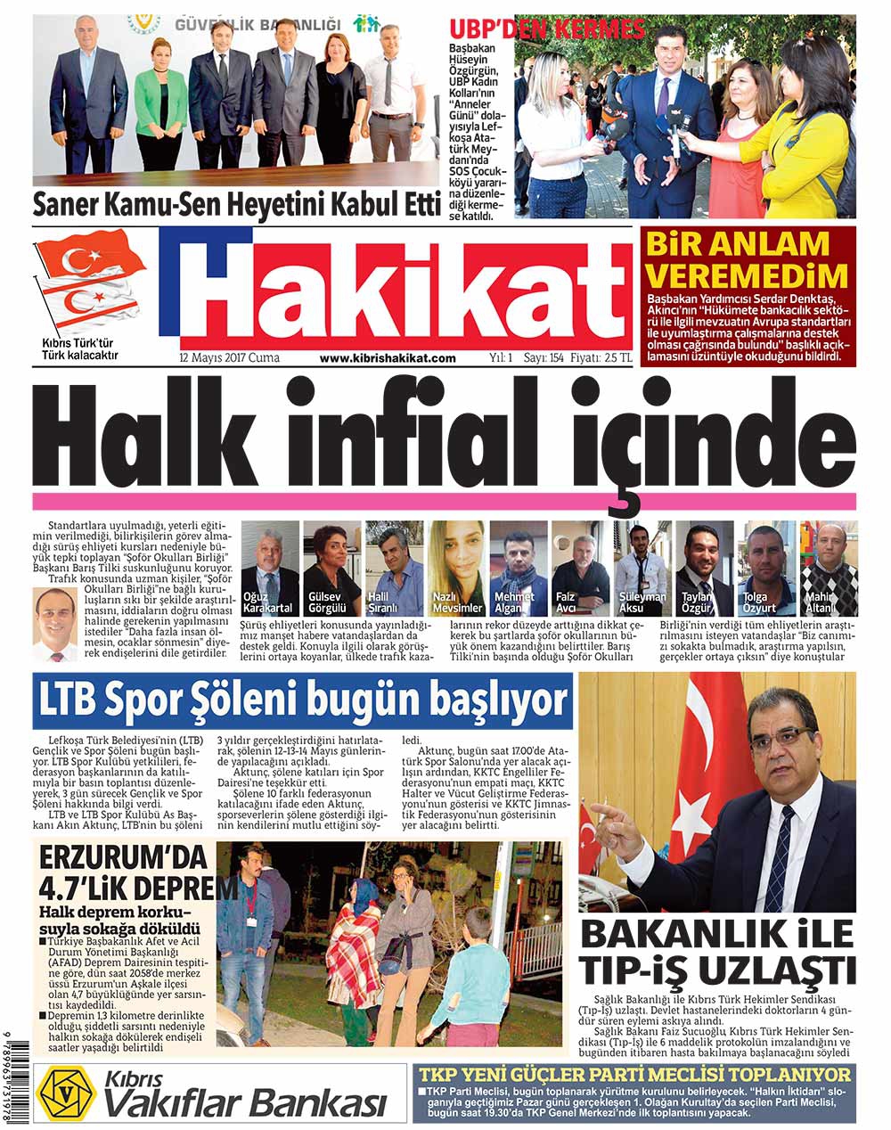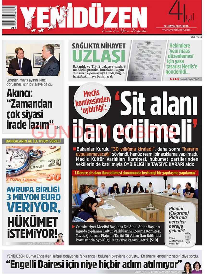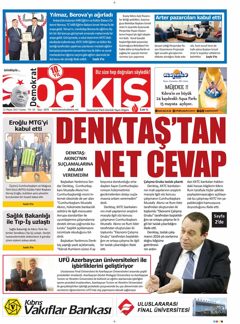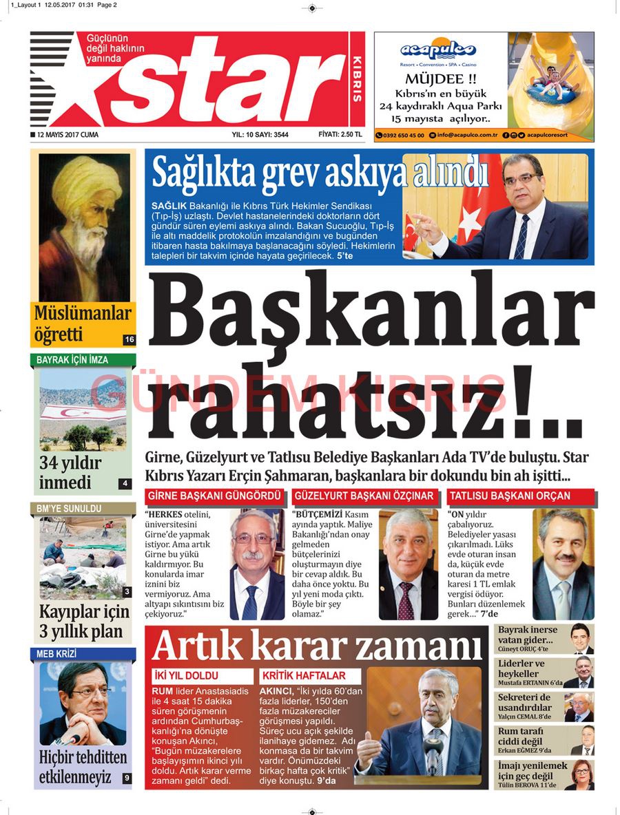 KKTC Gazete Manşetleri 12 Mayıs 2017