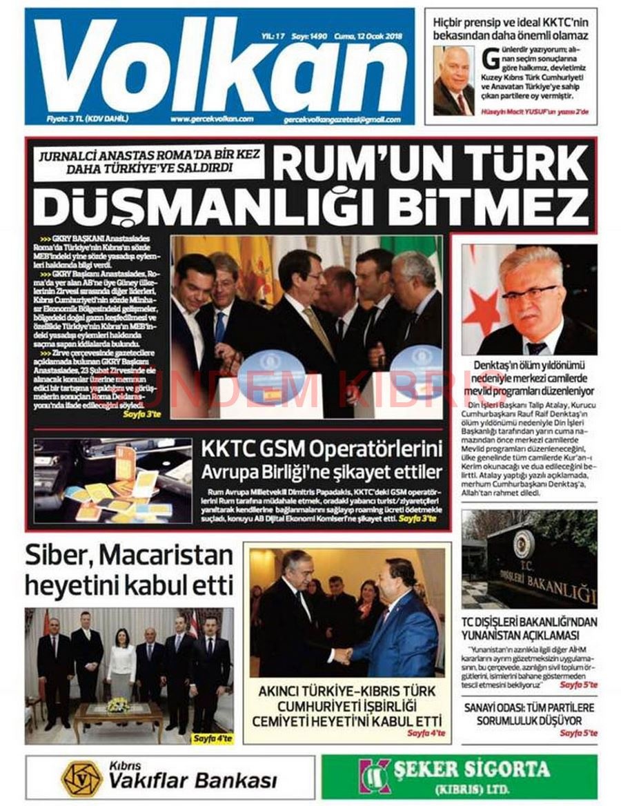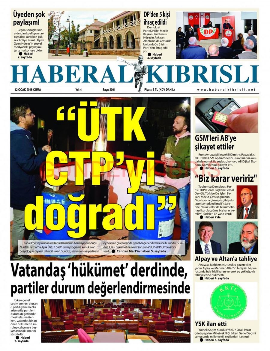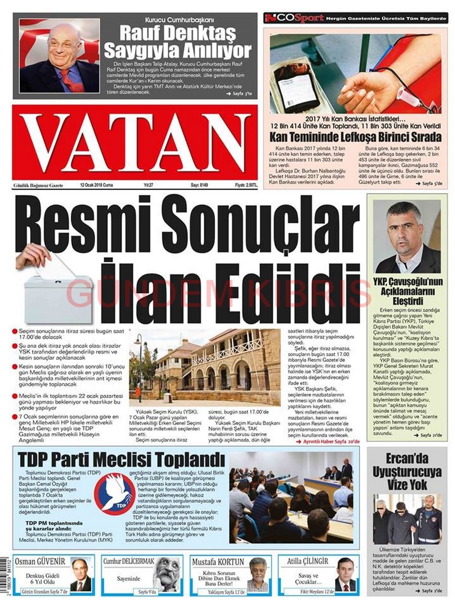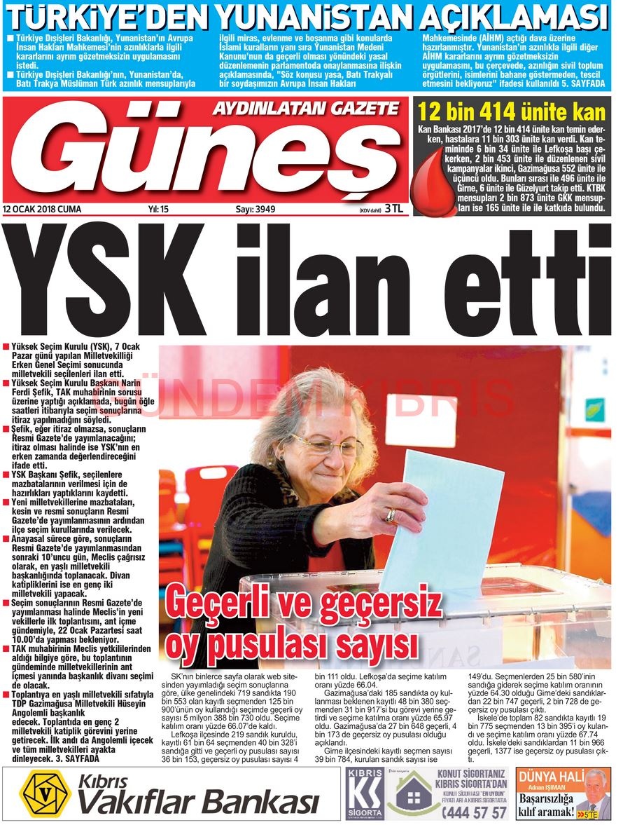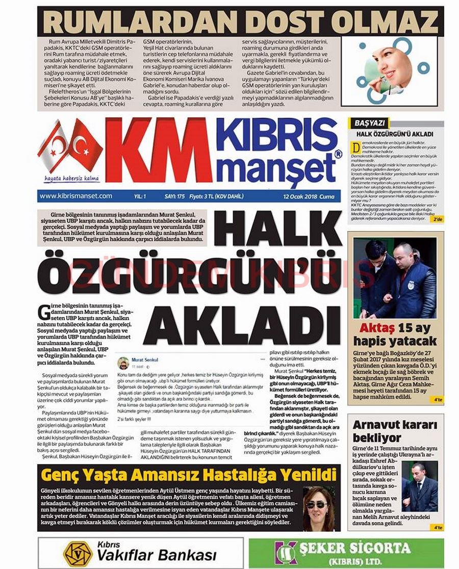 KKTC Gazete Manşetleri 12 Ocak 2018