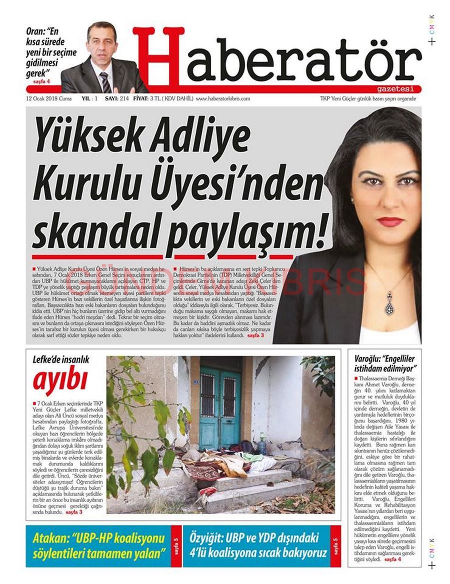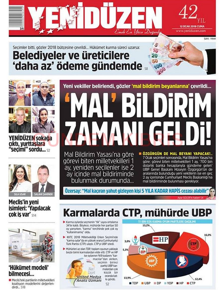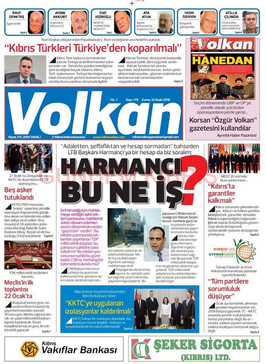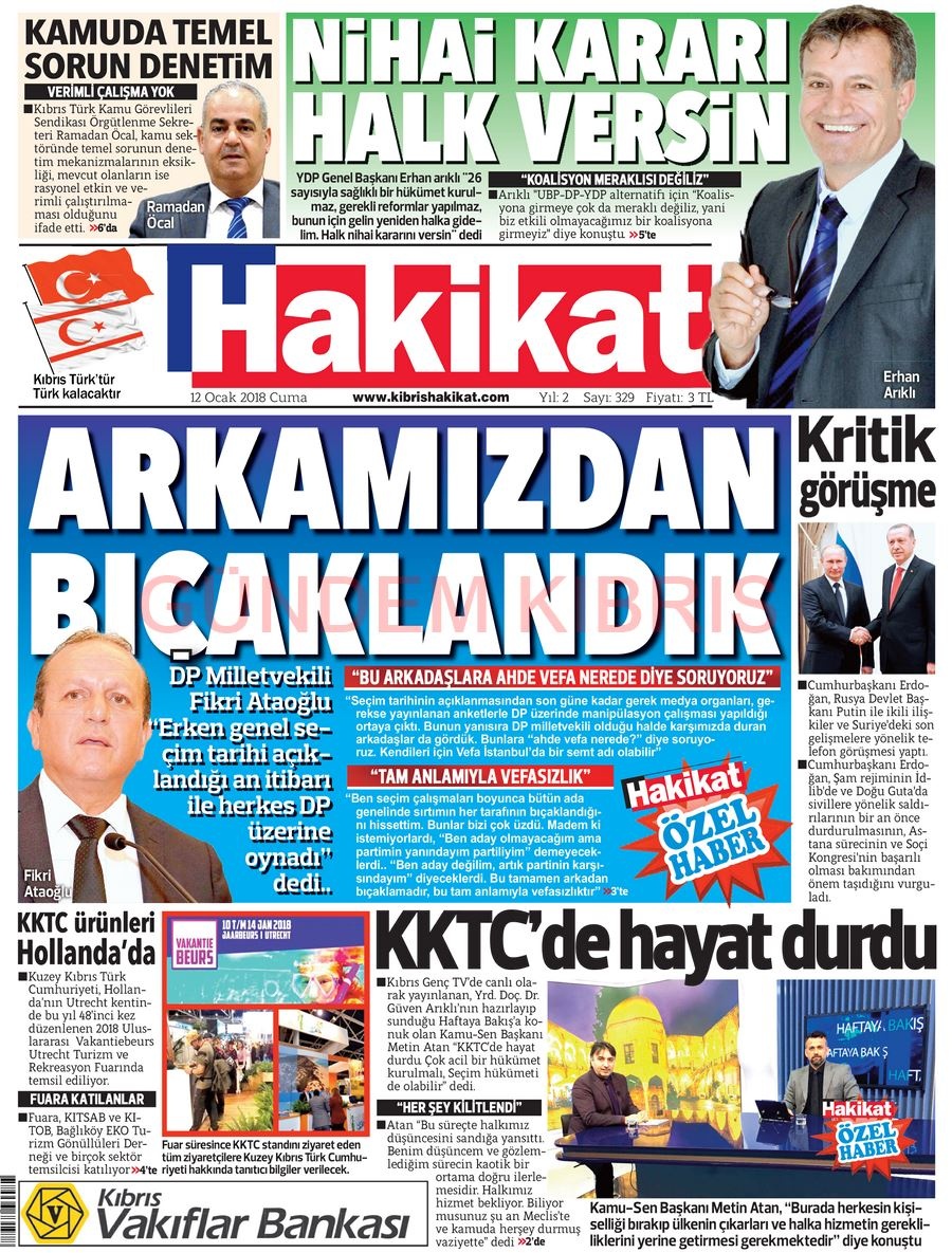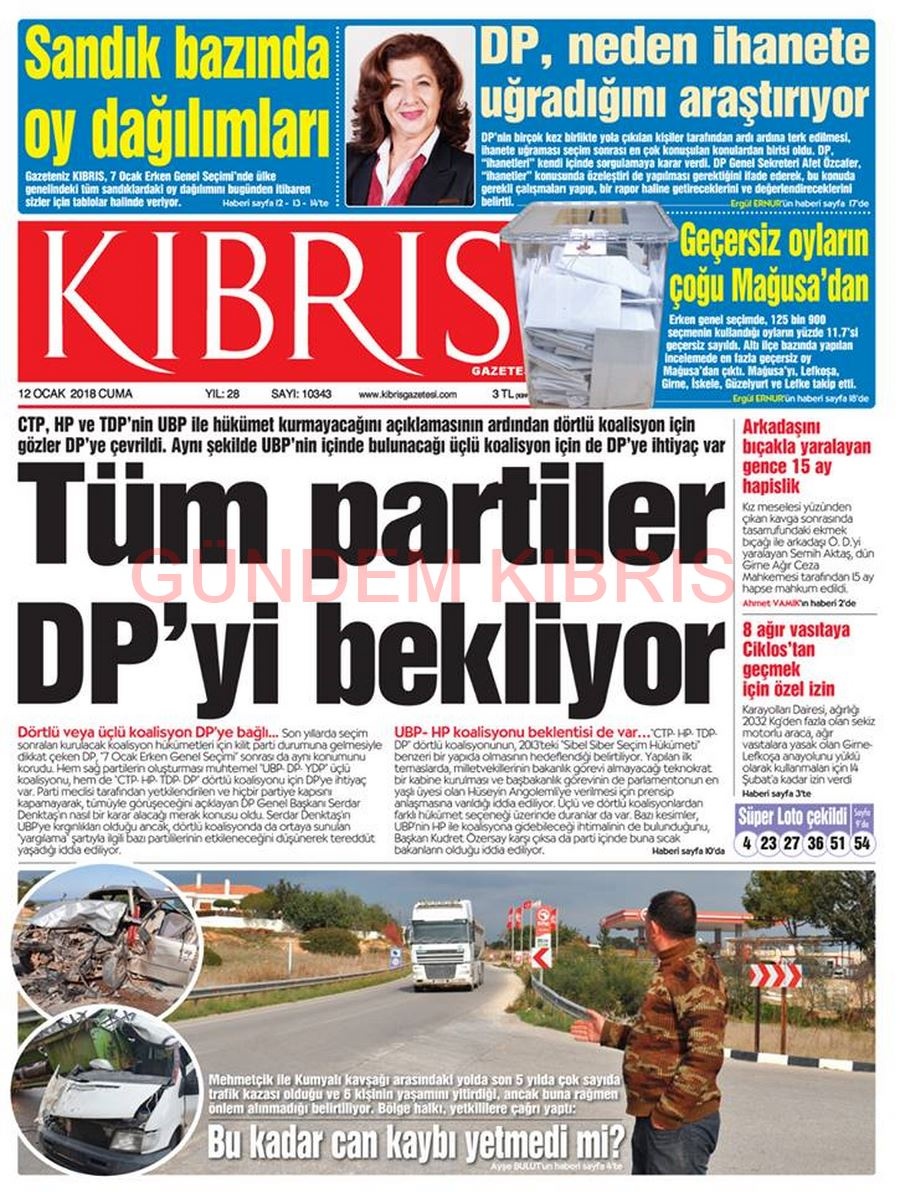 KKTC Gazete Manşetleri 12 Ocak 2018