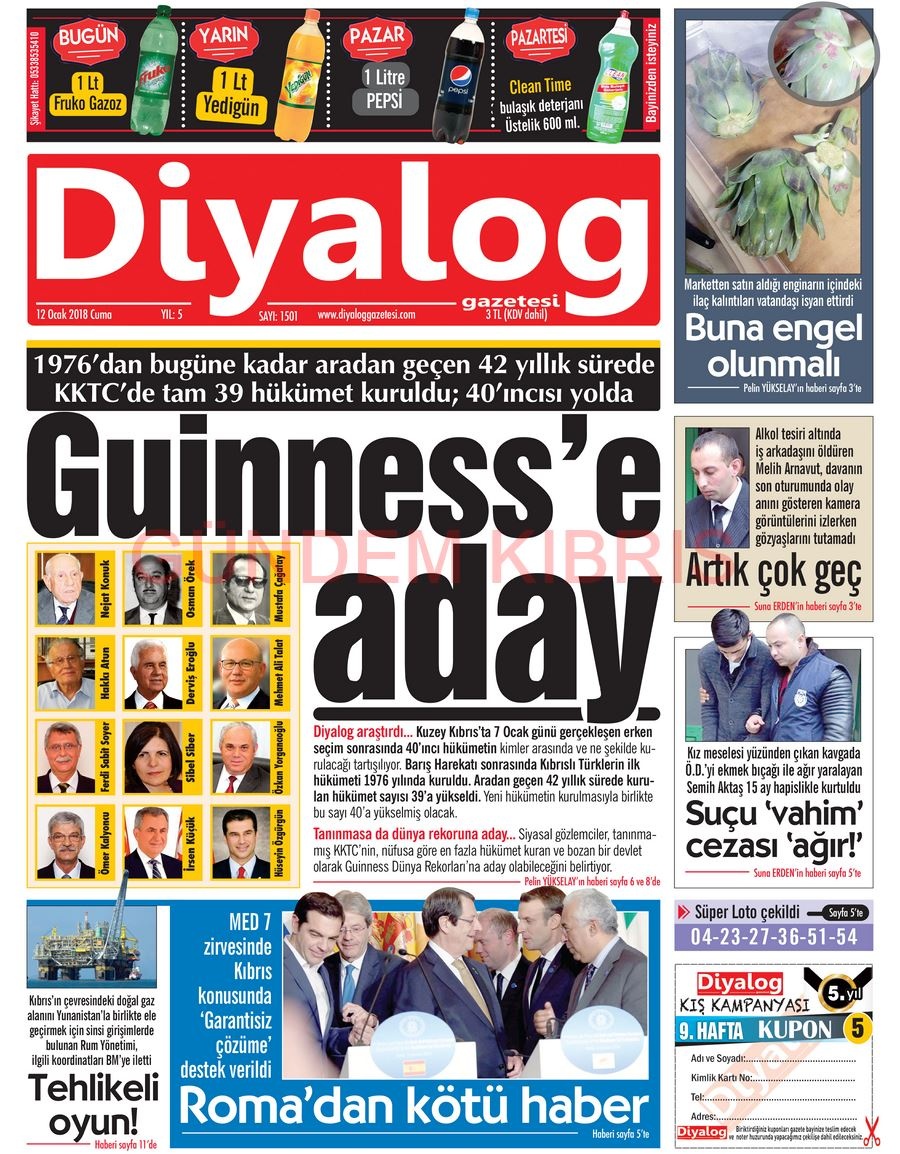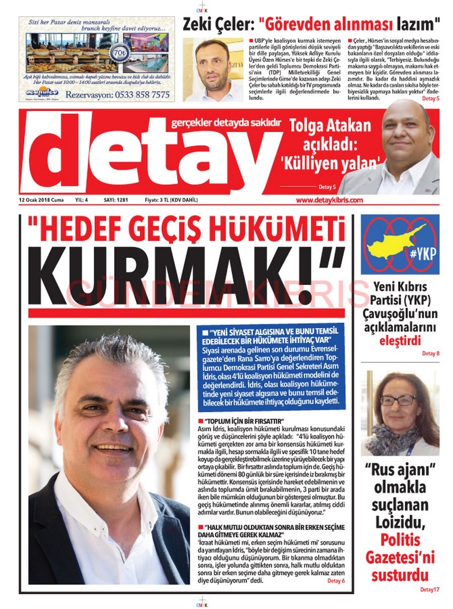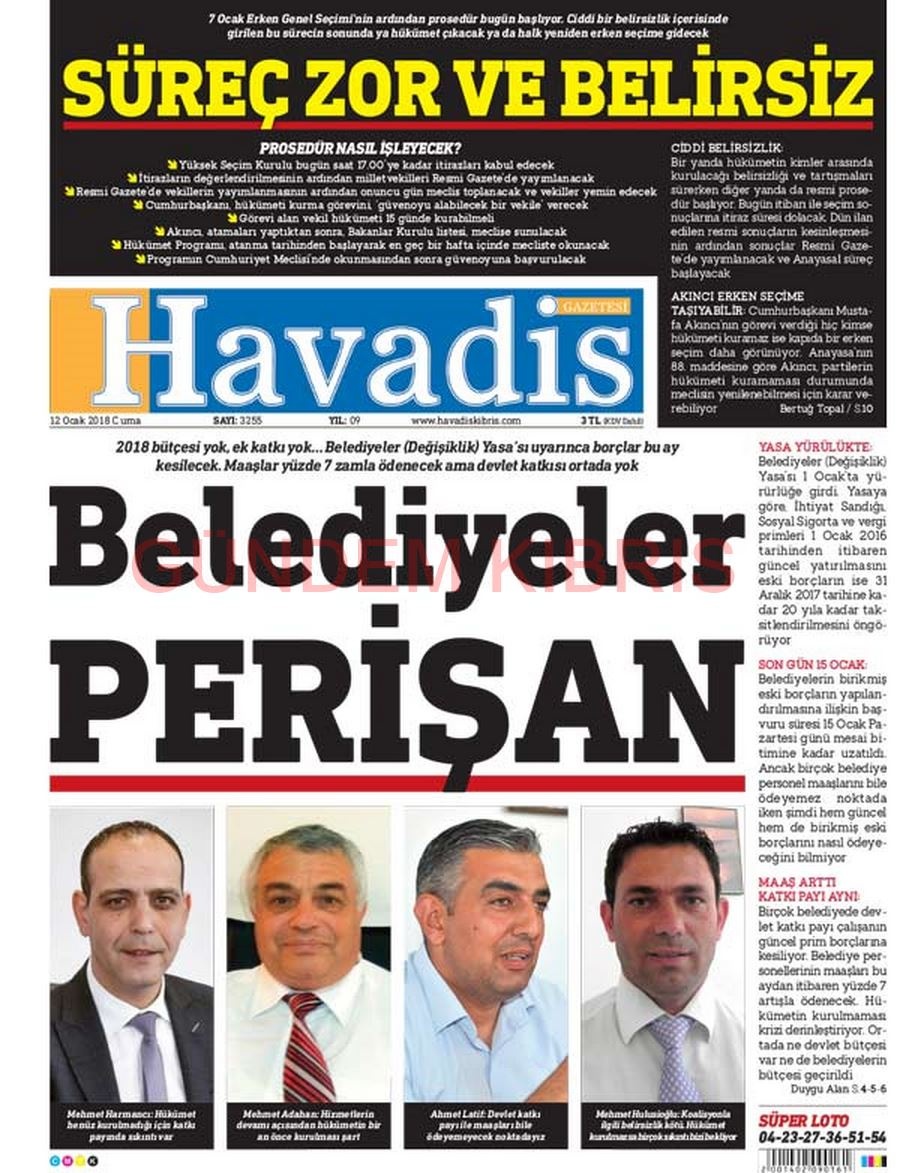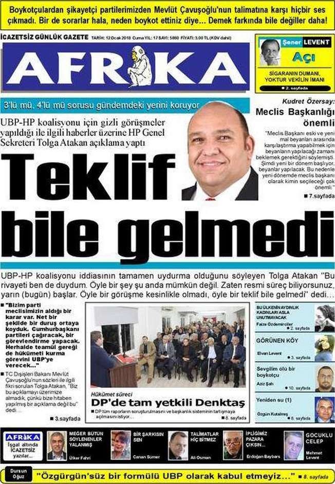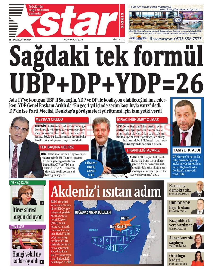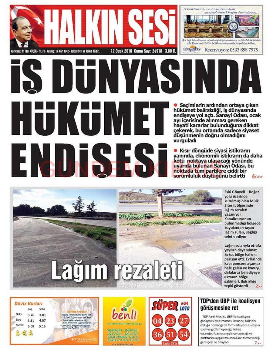 KKTC Gazete Manşetleri 12 Ocak 2018
